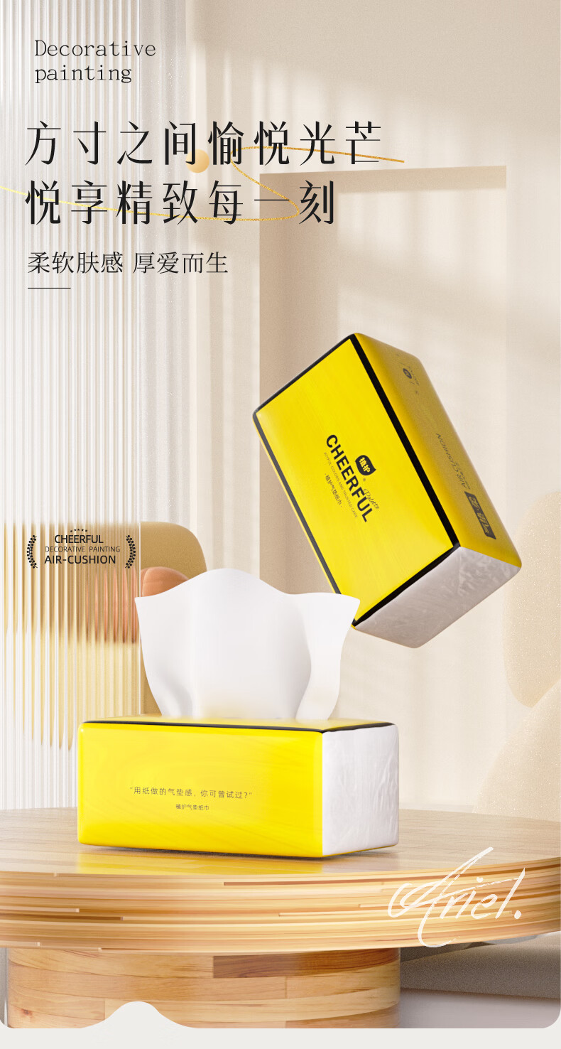 植护气垫抽纸4层400张*48大包纸抽整箱批发悦色黄餐巾纸卫生纸面巾纸