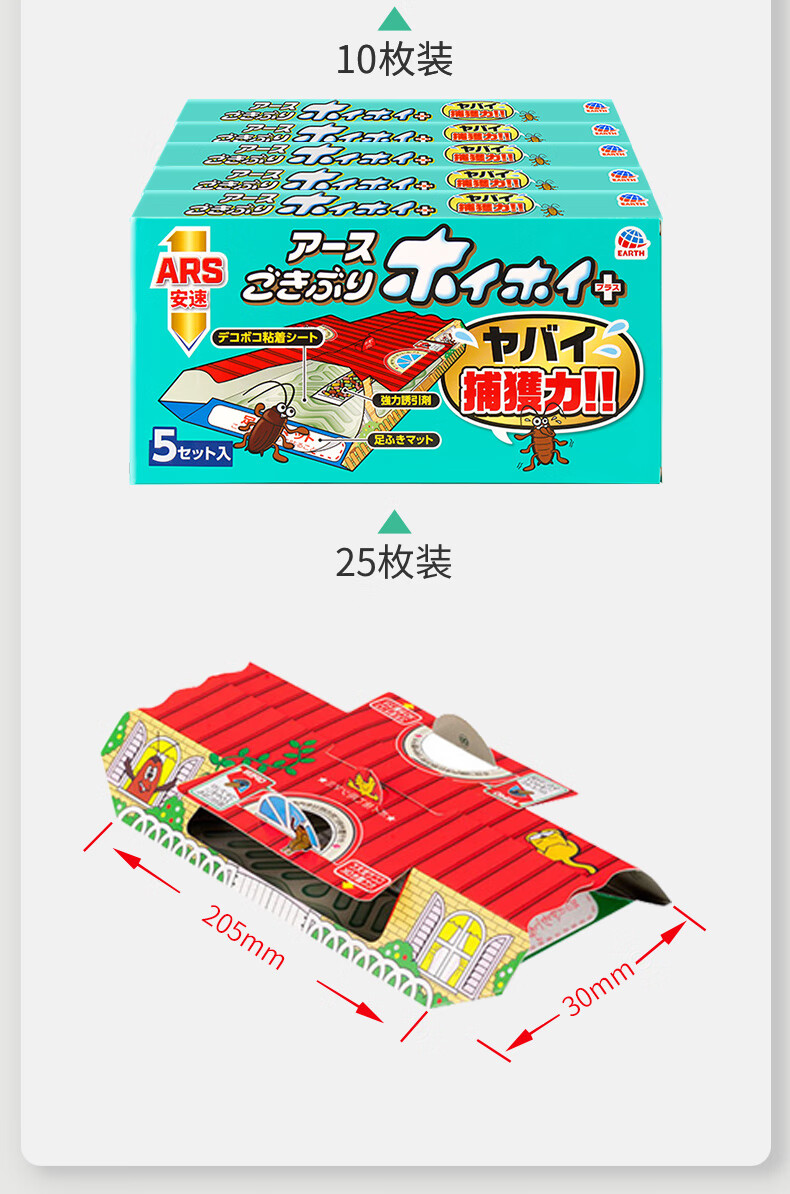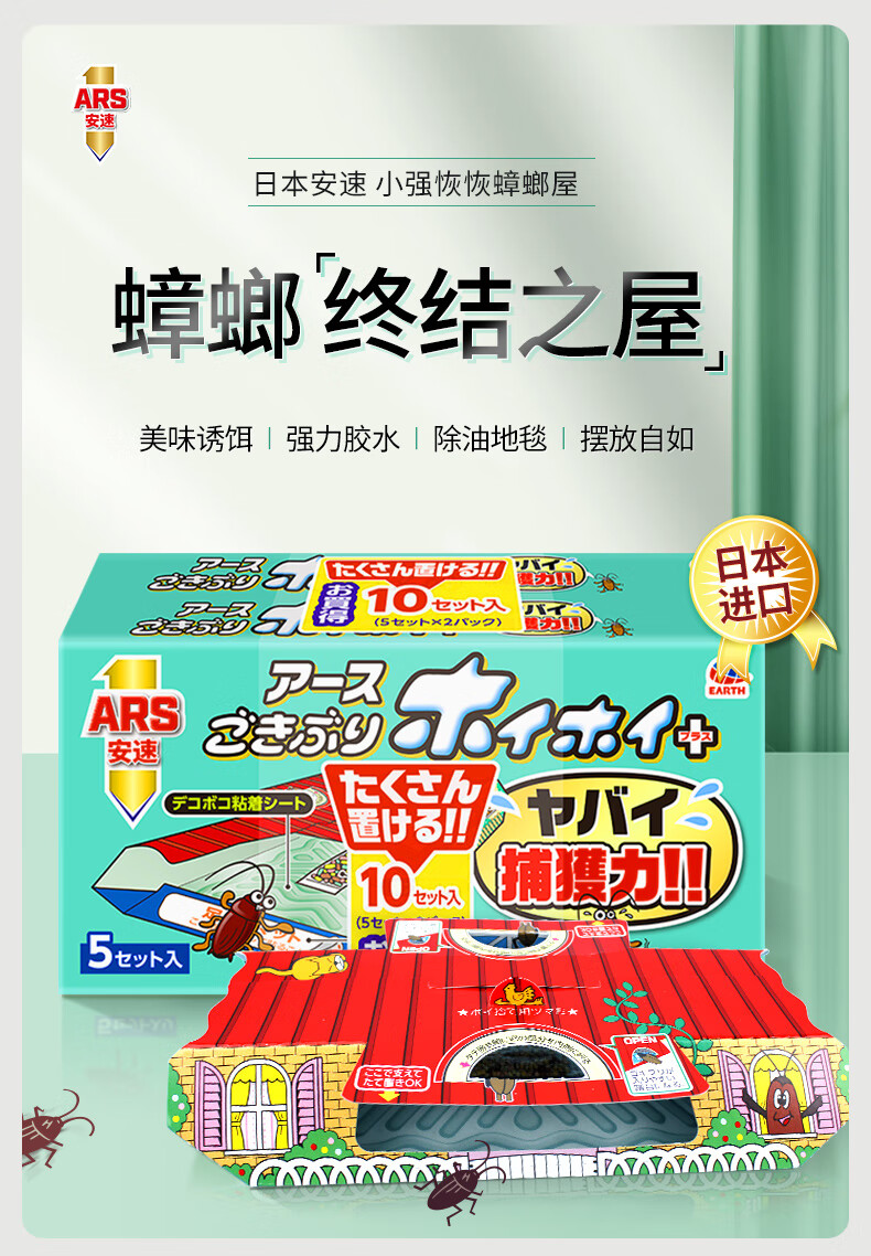 安速日本进口蟑螂屋10枚蟑螂药蟑螂粘蟑螂盒灭蟑厨房室内 春节大扫除