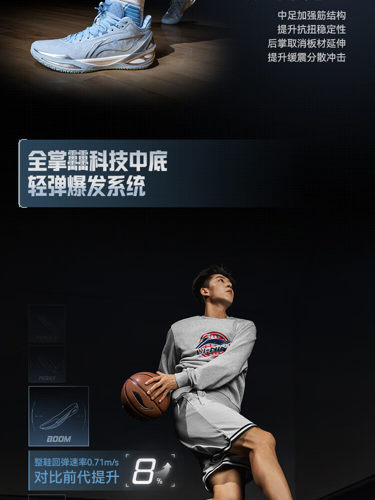 李宁利刃6丨篮球鞋男鞋低帮耐磨春夏季专业比赛运动鞋 云瓷蓝-12 律动 43