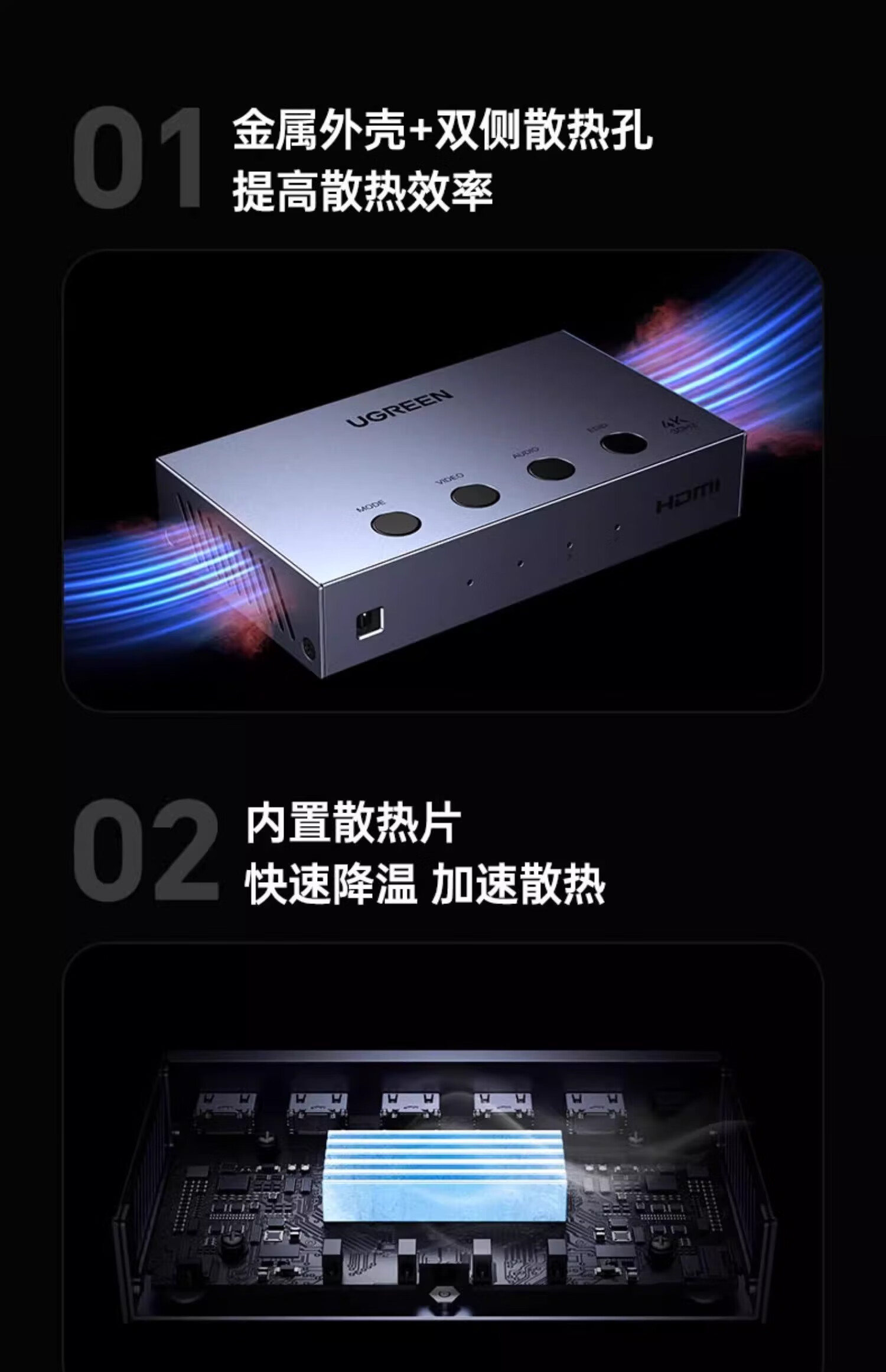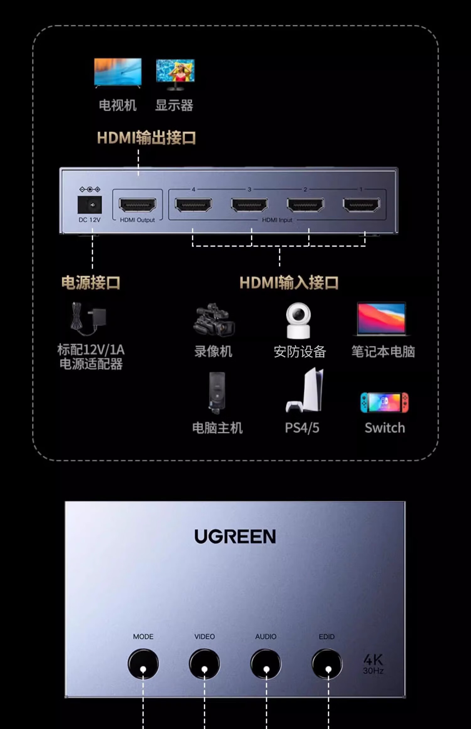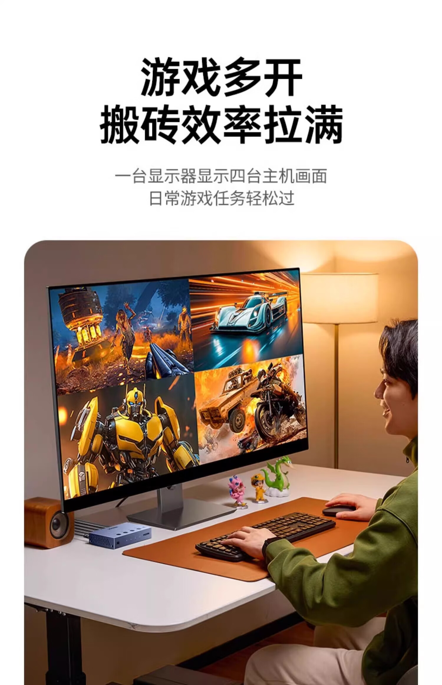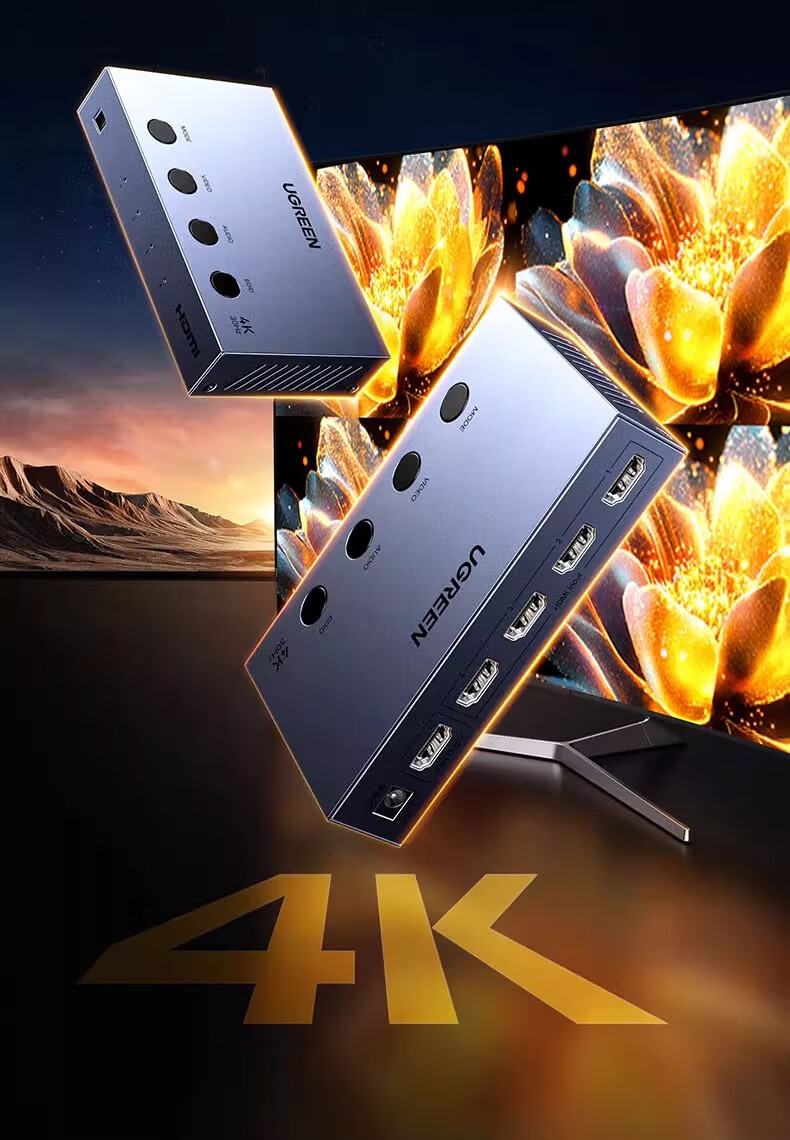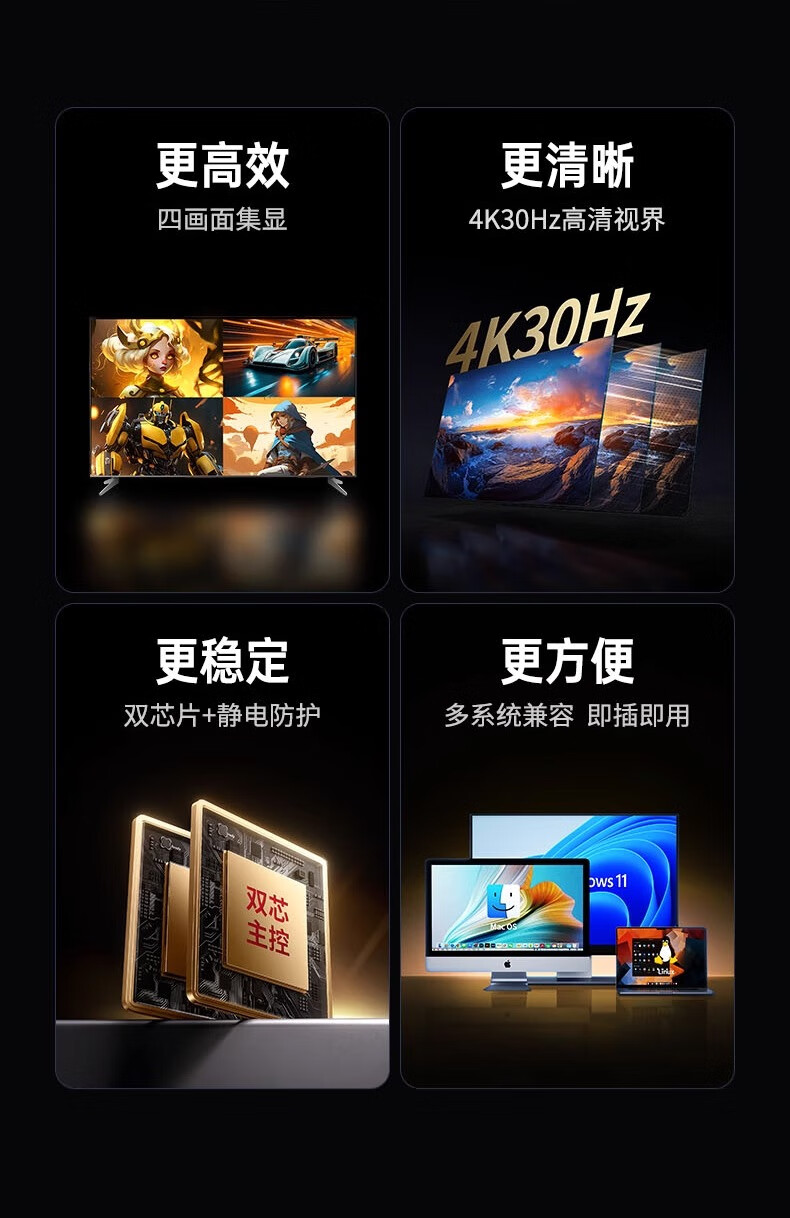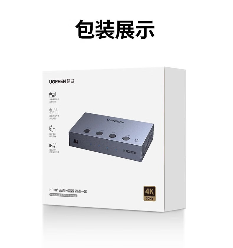 绿联HDMI画面分割器四进一出4进1出分配器支持DNF游戏搬砖电脑视频分屏器监控同步拼接器四八画面器 画面分割器4进1出【1080P款】50745