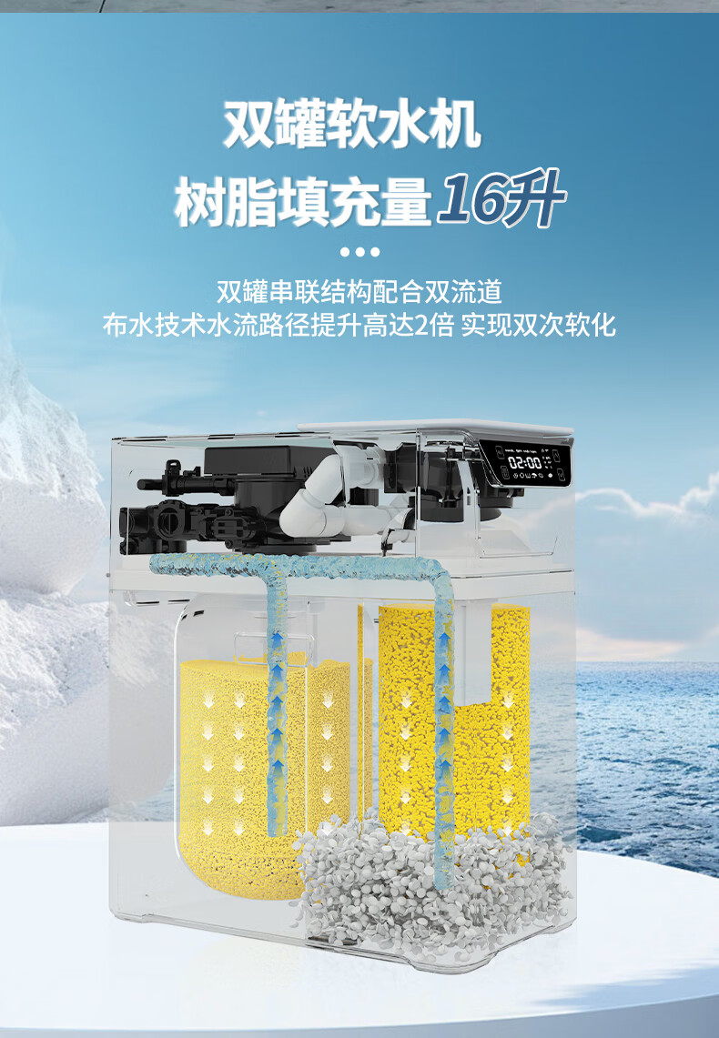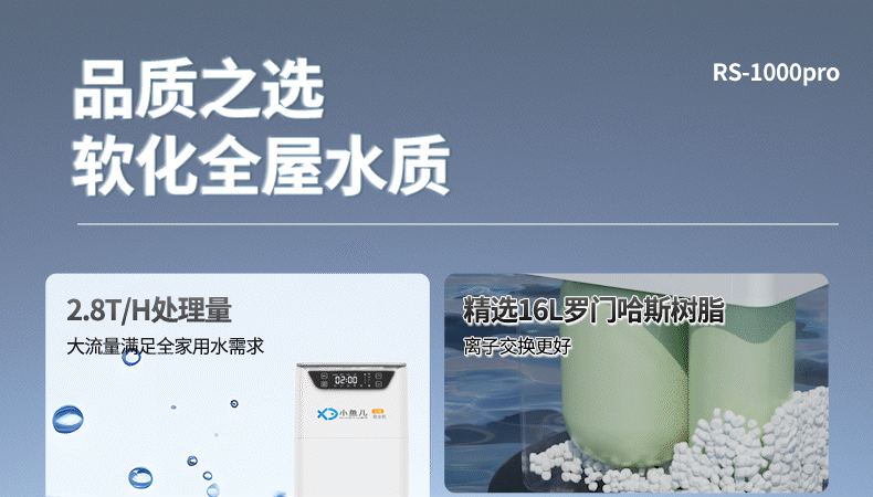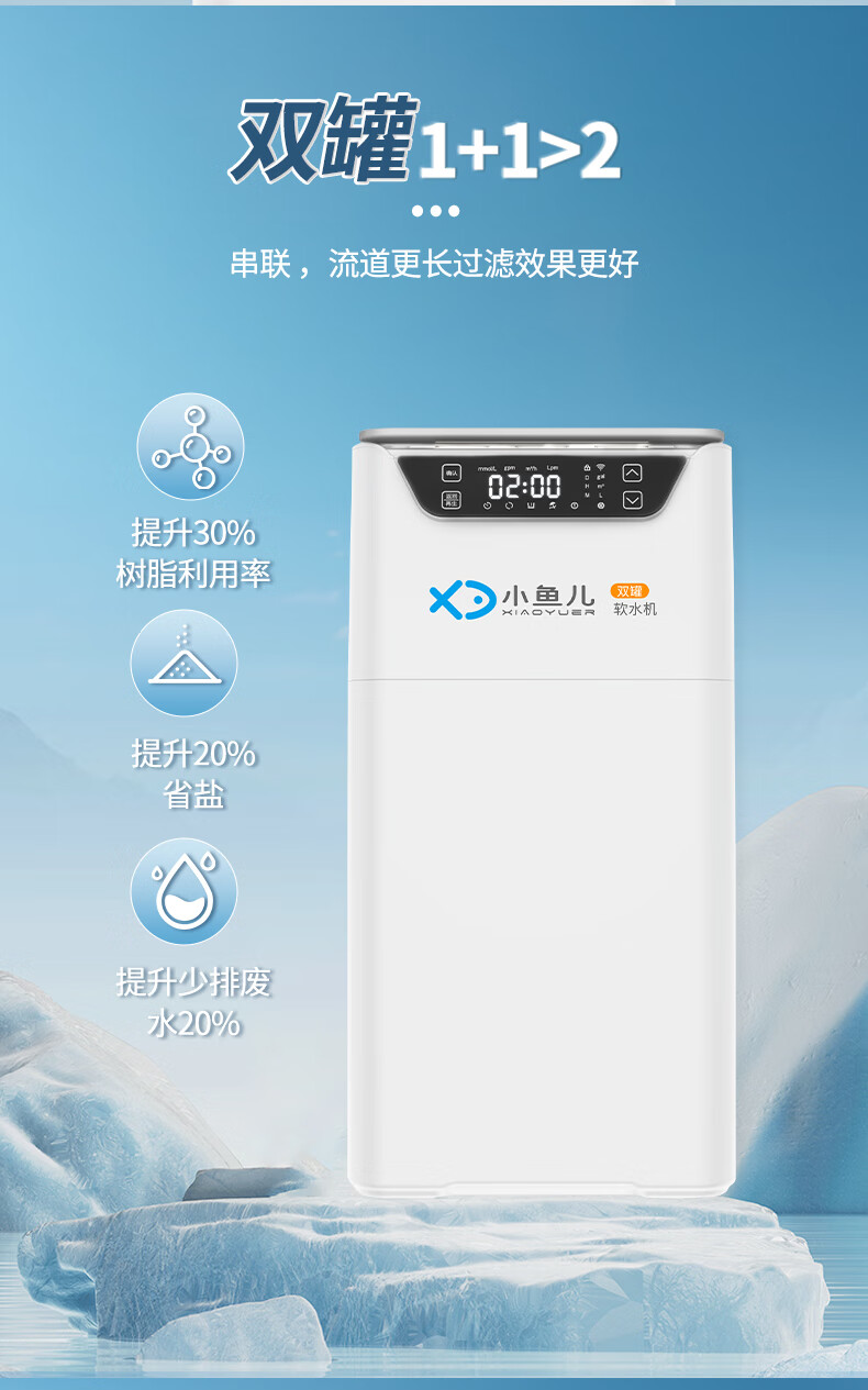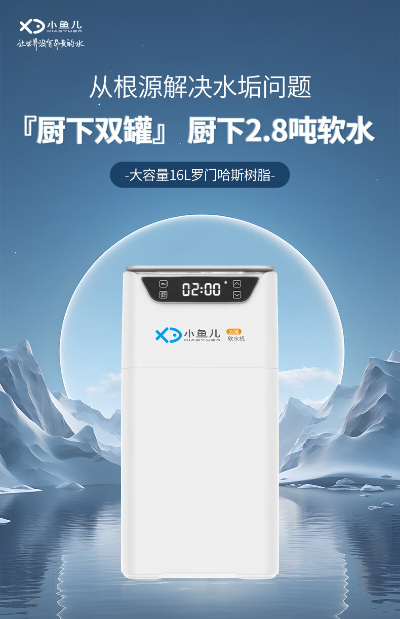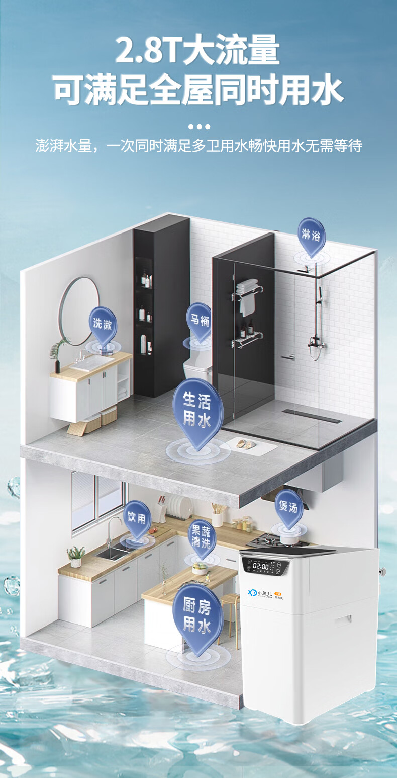 小鱼儿全屋家用软水机厨下双罐2.8吨大流量过滤器中央净水系统设备 S2000双罐净水机2.8T/h