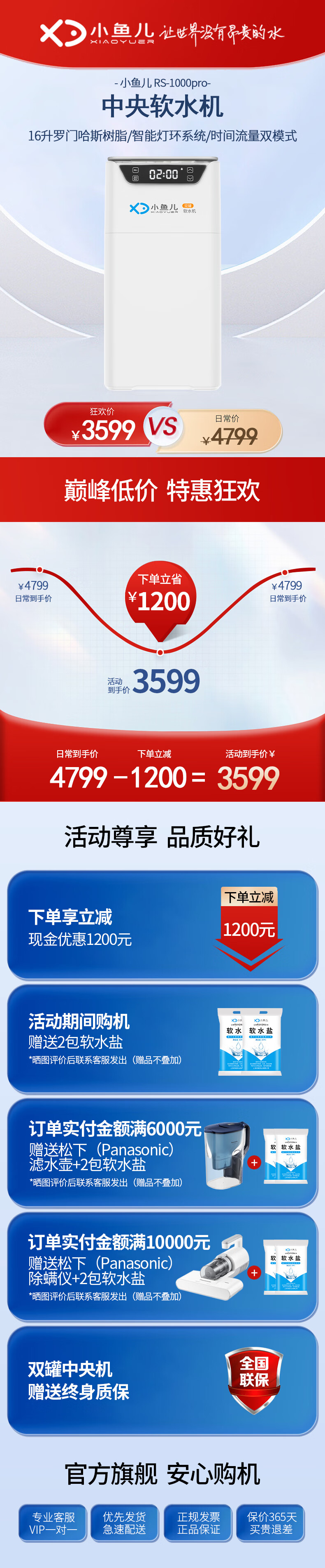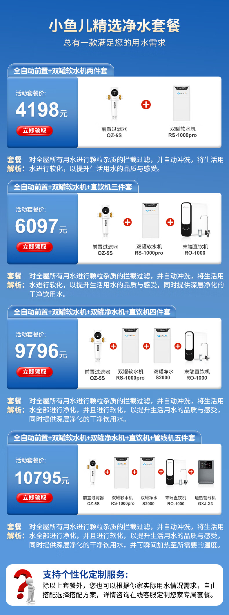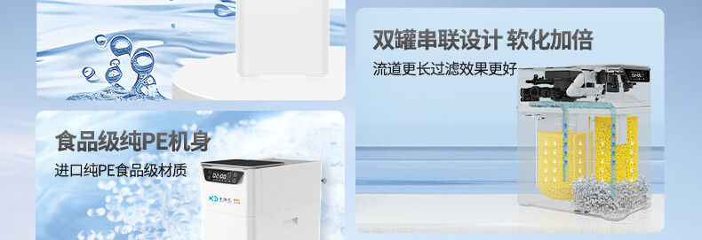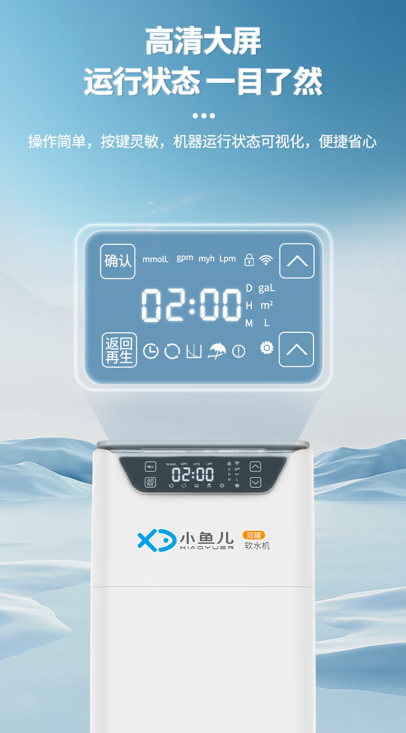 小鱼儿全屋家用软水机厨下双罐2.8吨大流量过滤器中央净水系统设备 S2000双罐净水机2.8T/h