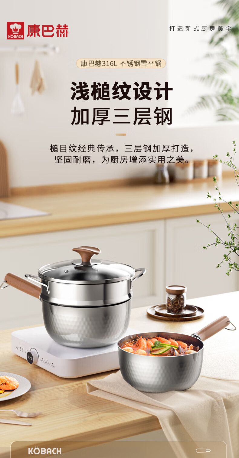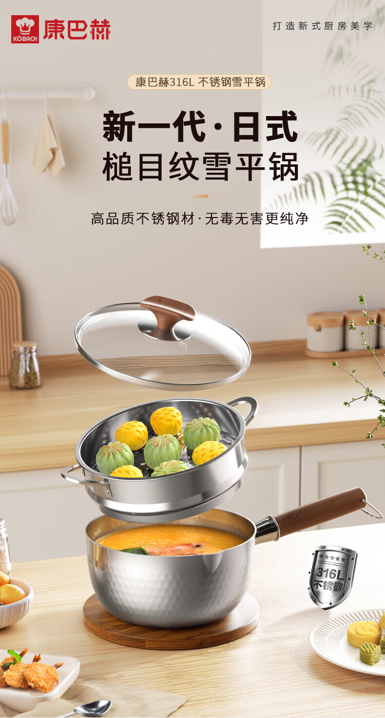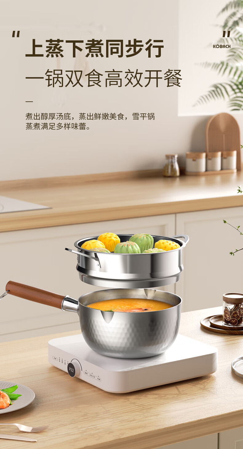 康巴赫纯钛内胆电饭煲家用不粘煮粥锅职能电饭锅多功能电锅电器+雪平锅奶锅套装 Mate 4L +雪平锅+蒸笼