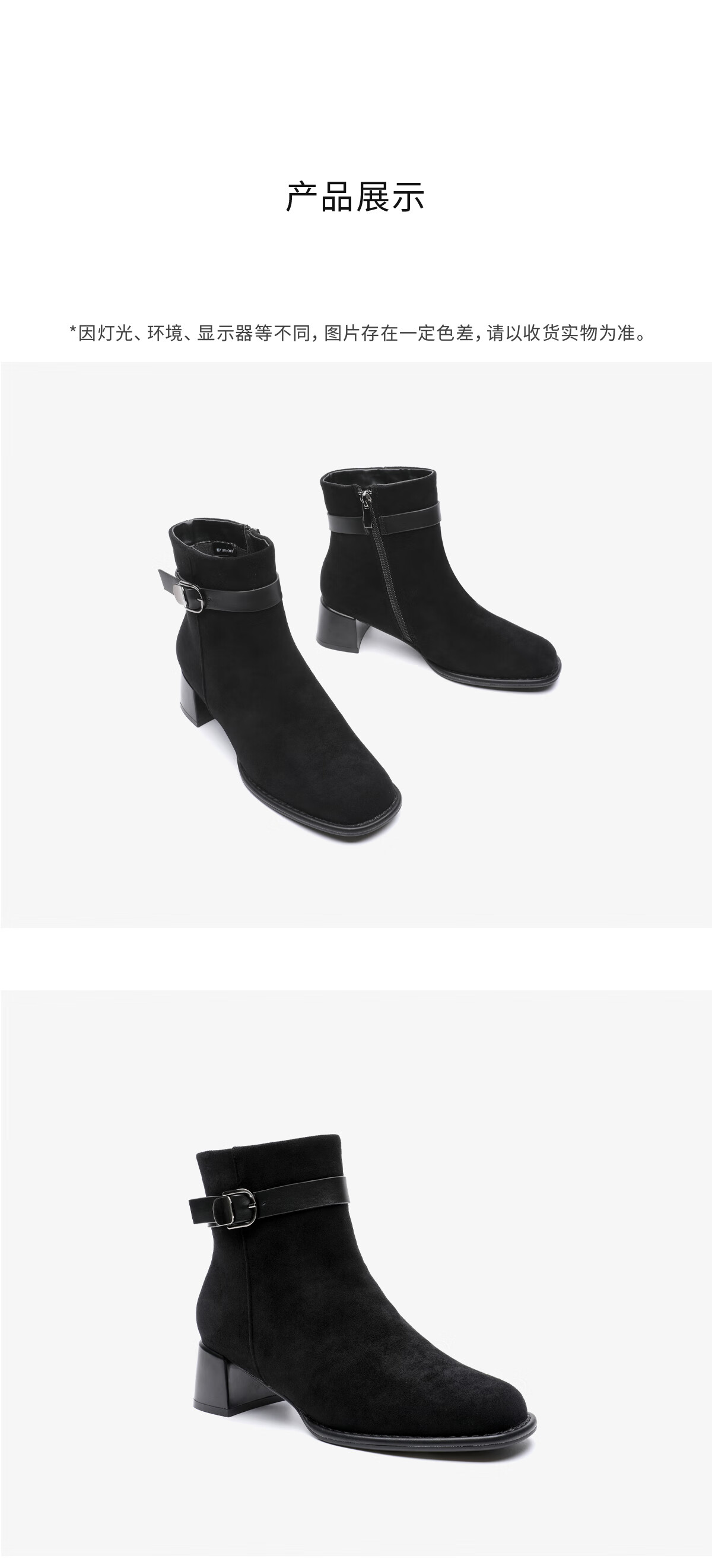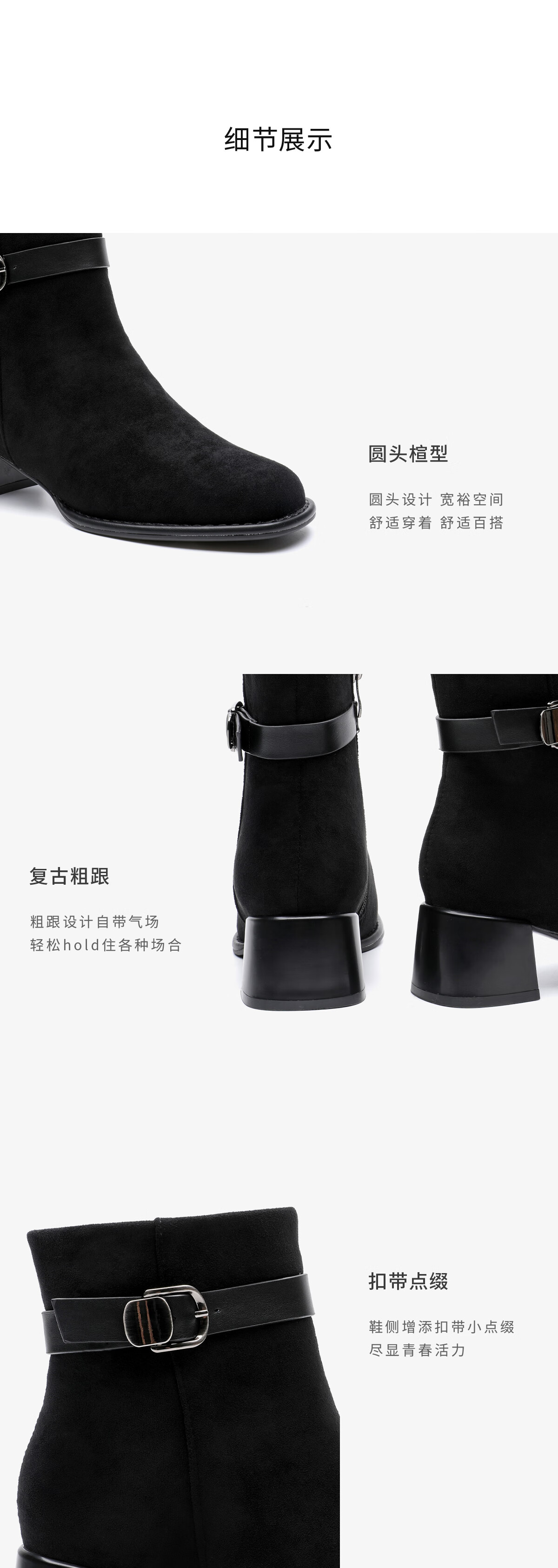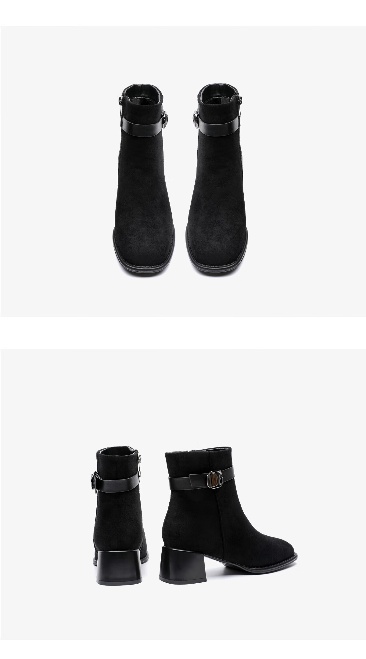 月芽儿2025冬季新款短靴女法式复古圆头通勤瘦瘦靴短筒时装靴 绒里黑色01T 34