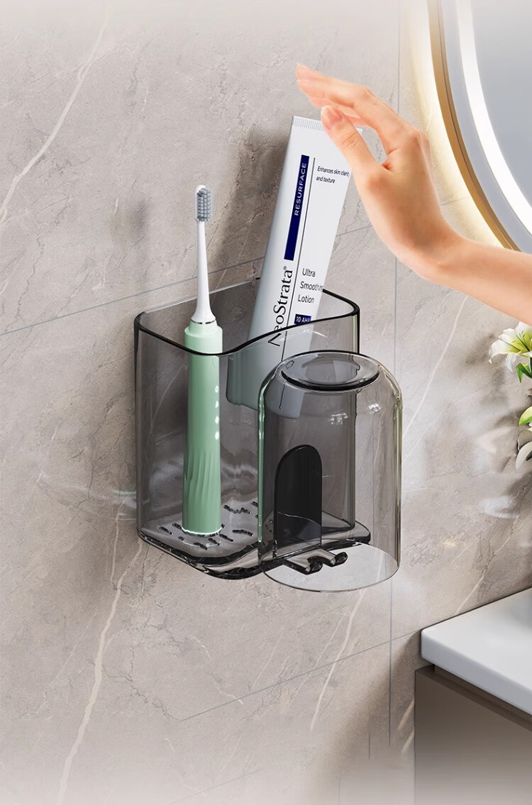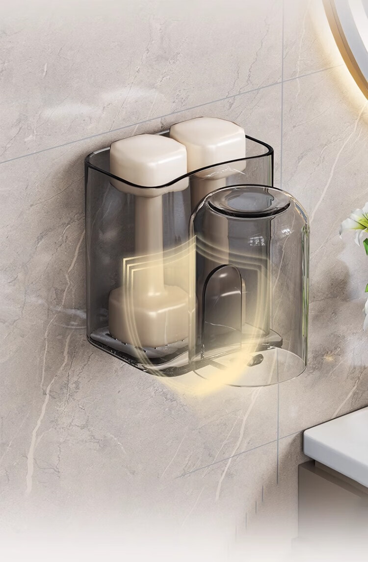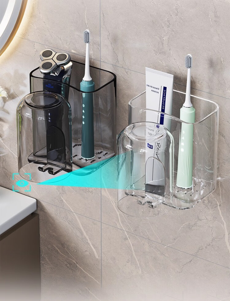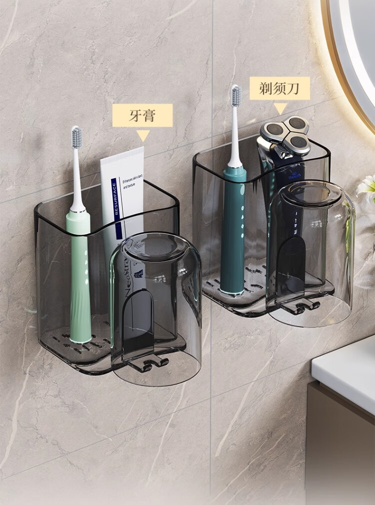 尔思家牙刷置物架免打孔刷牙杯漱口杯架子壁挂式卫生间情侣牙缸牙具挂架 透明色1个装