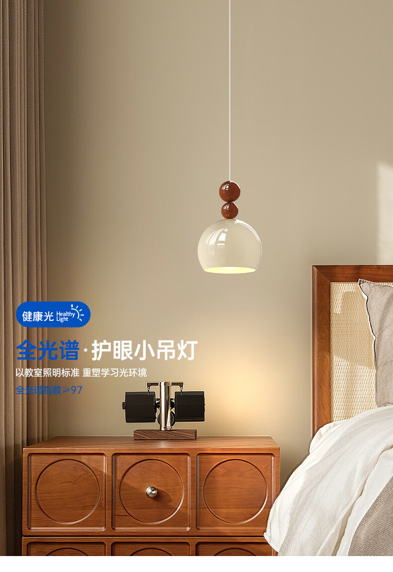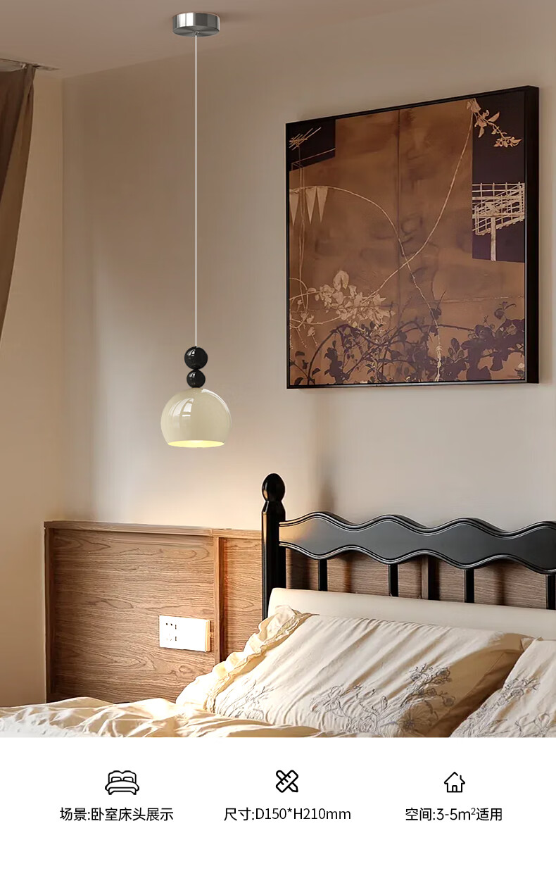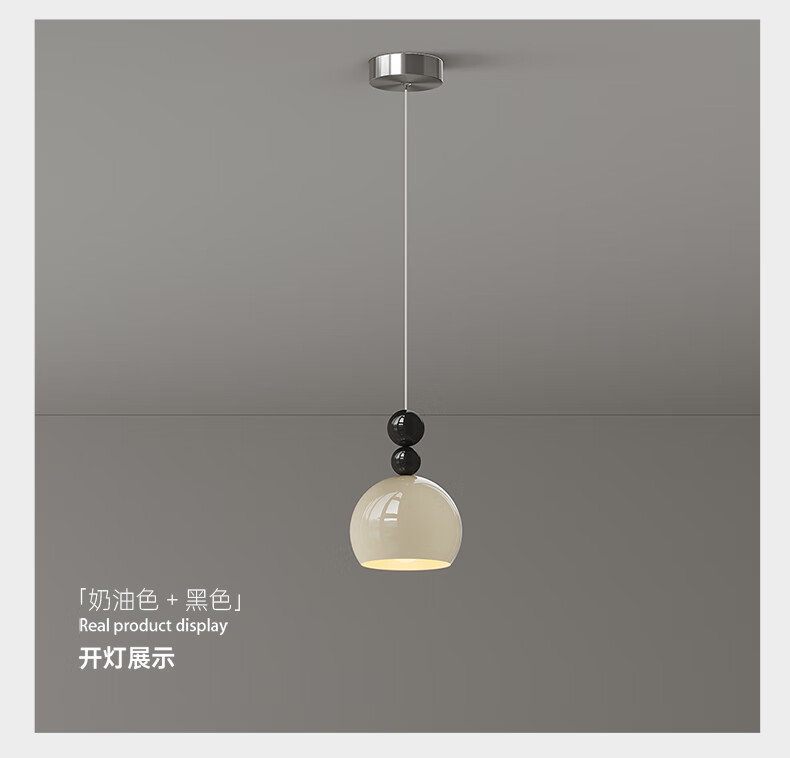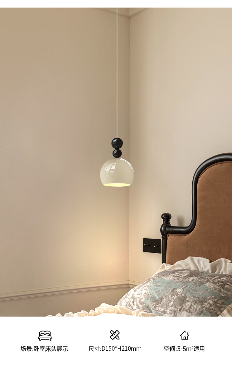 卡伯森设计师款卧室床头吊灯全光谱护眼马卡龙色客厅背景墙小吊灯奶油风 奶油色+黑色-直径15cm【三色变光】