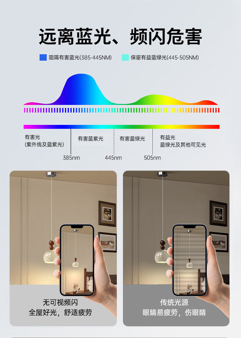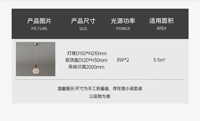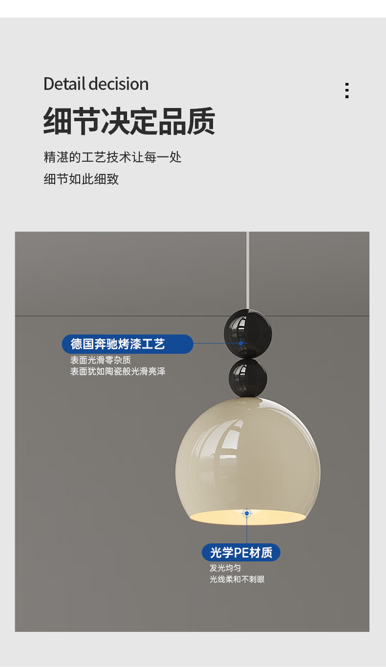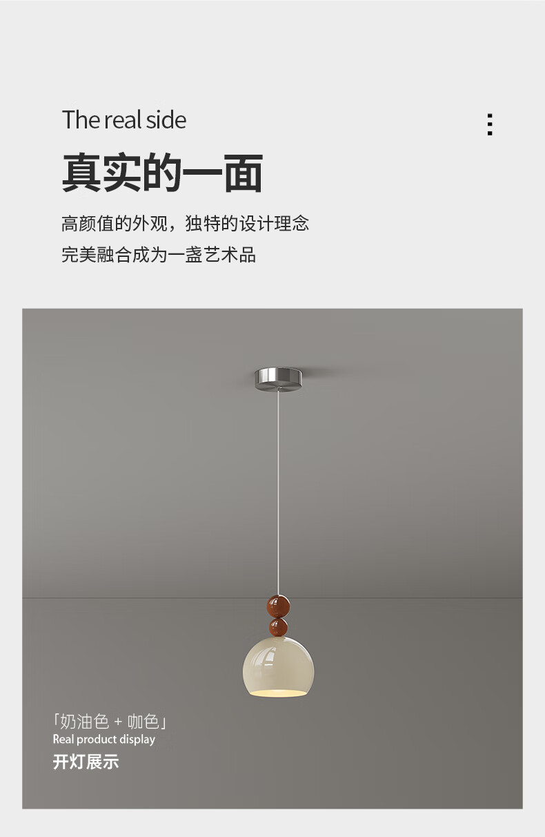 卡伯森设计师款卧室床头吊灯全光谱护眼马卡龙色客厅背景墙小吊灯奶油风 奶油色+黑色-直径15cm【三色变光】