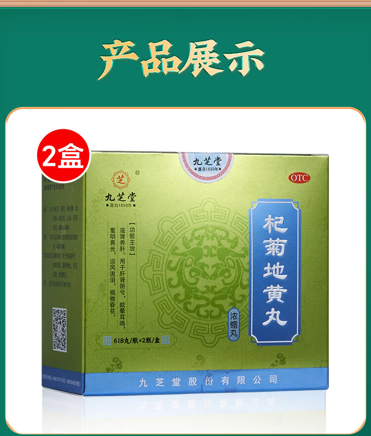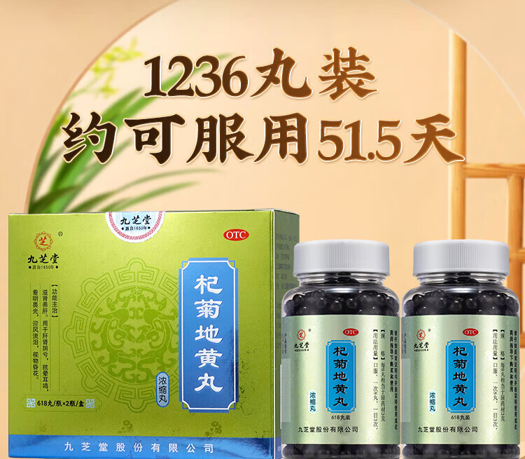 九芝堂杞菊地黄丸(浓缩丸) 618丸/瓶*2瓶/盒*2盒 京东自营杞菊地黄丸OTC补肾养肝明目肝肾阴亏耳鸣畏光流泪