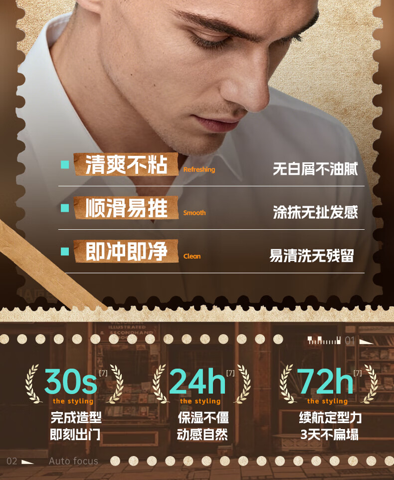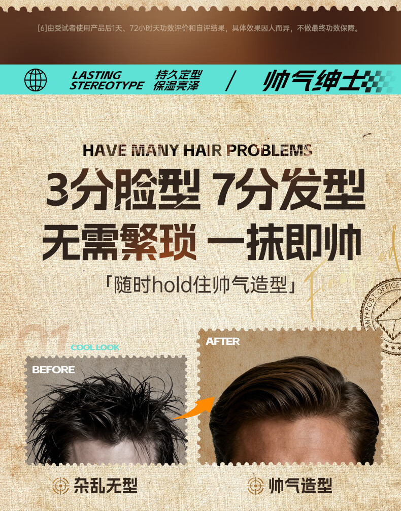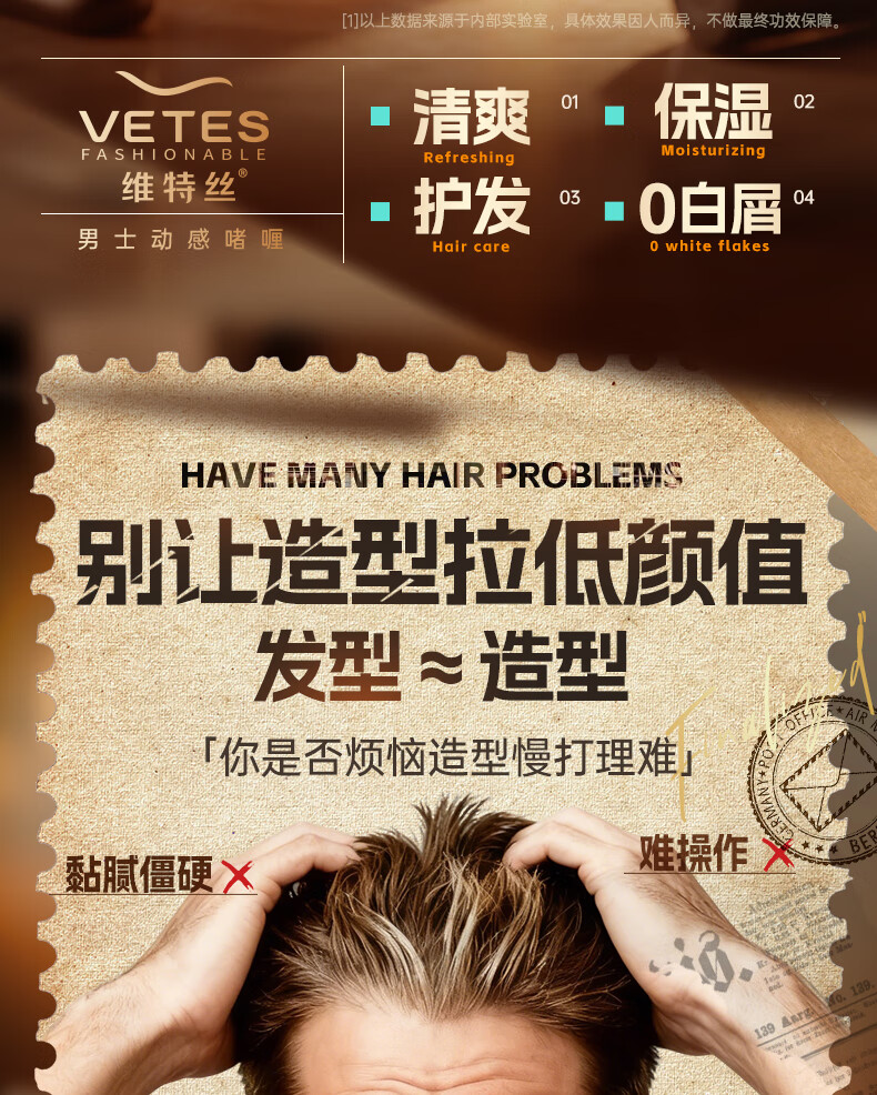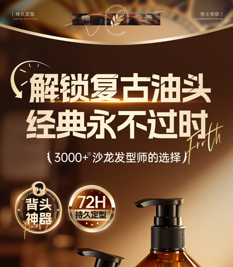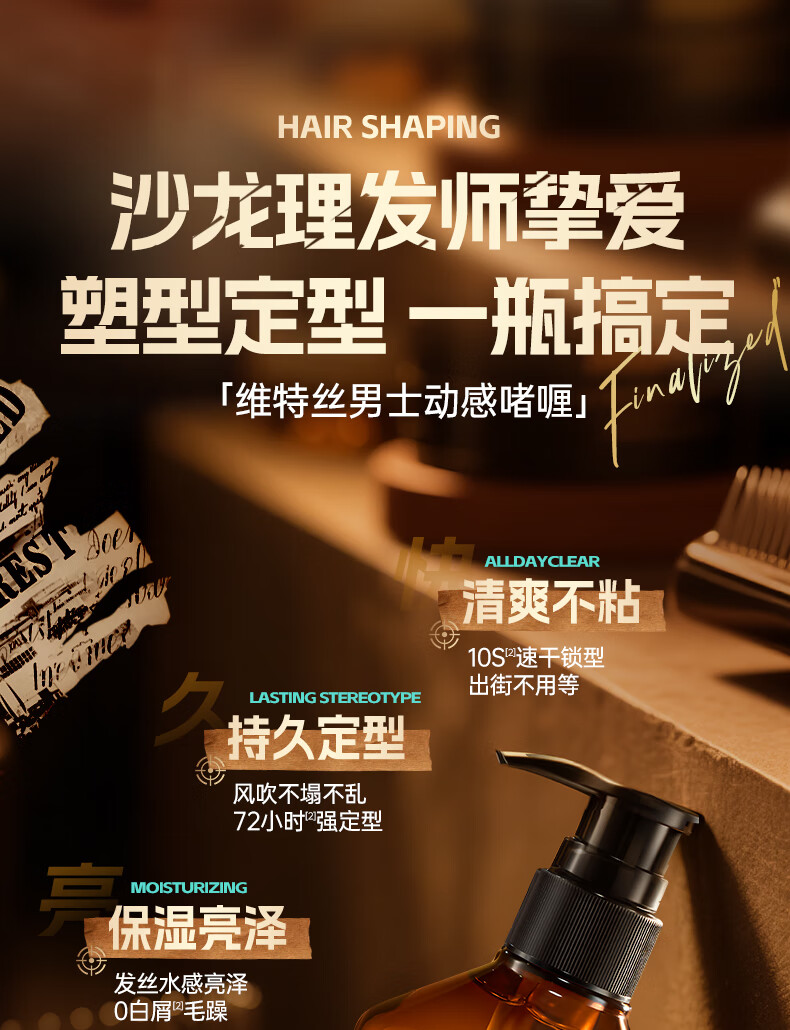 维特丝啫喱膏保湿定型男士专用啫喱水持久留香300ml湿发背头油头膏发胶