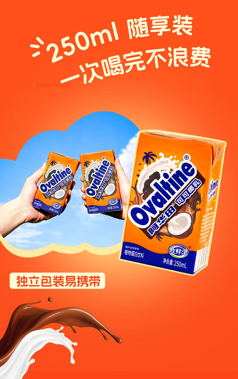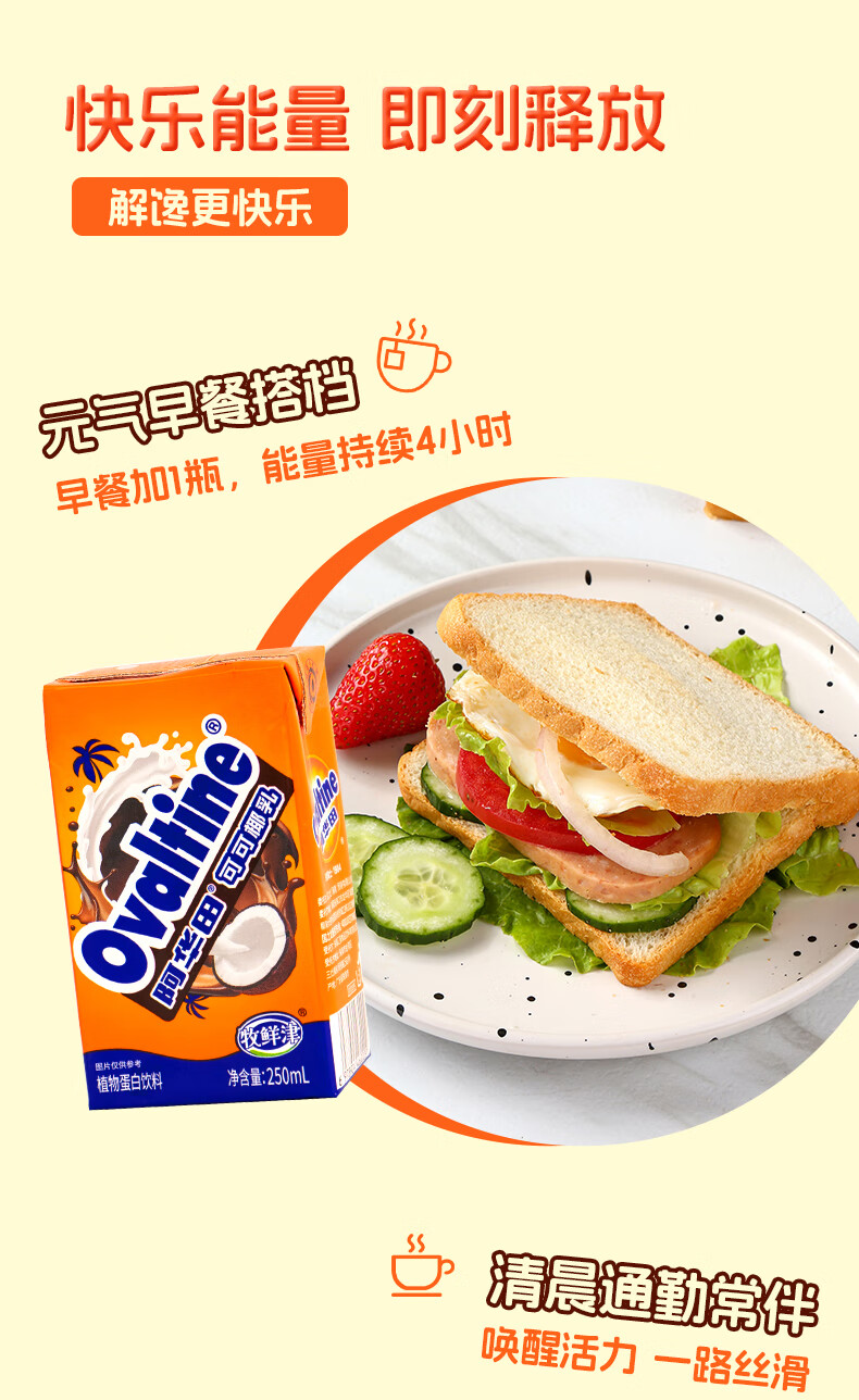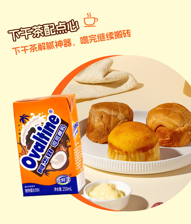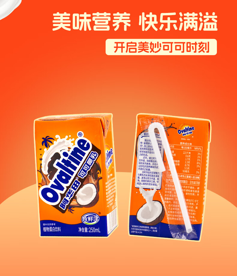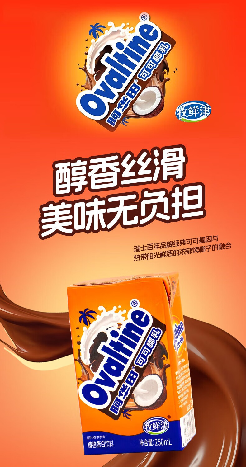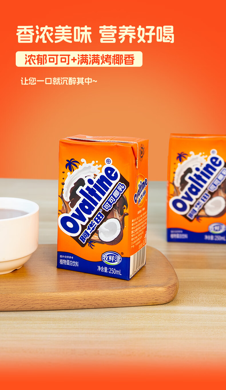 牧鲜津阿华田可可椰乳250ml盒装高植物蛋白饮料椰奶代餐早餐奶椰汁乳品 可可椰乳 250ml*6盒