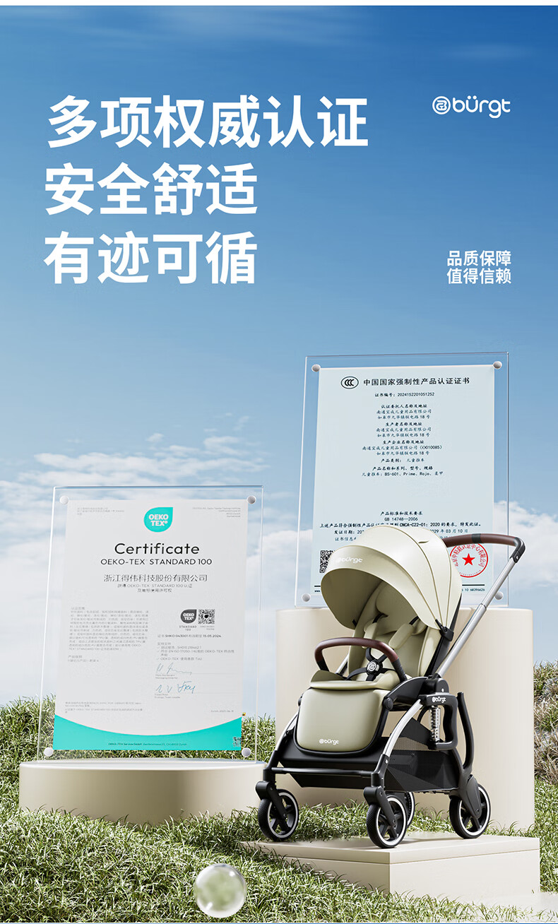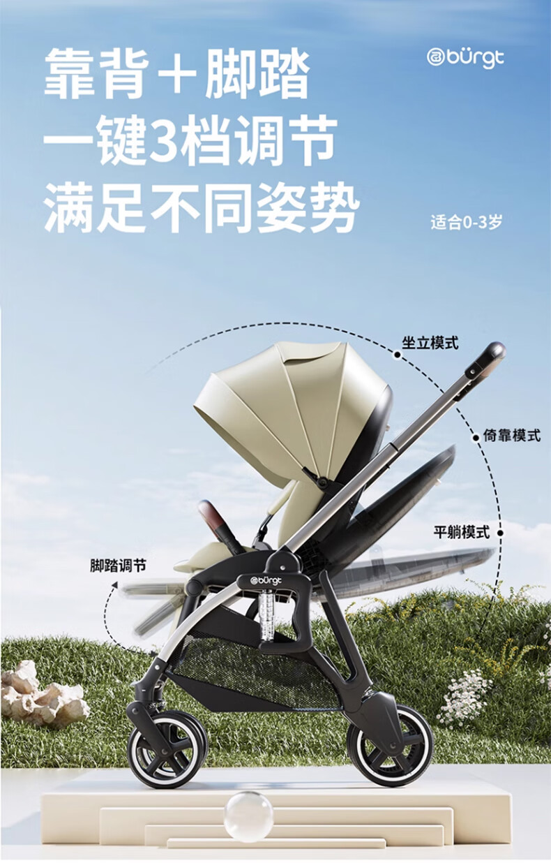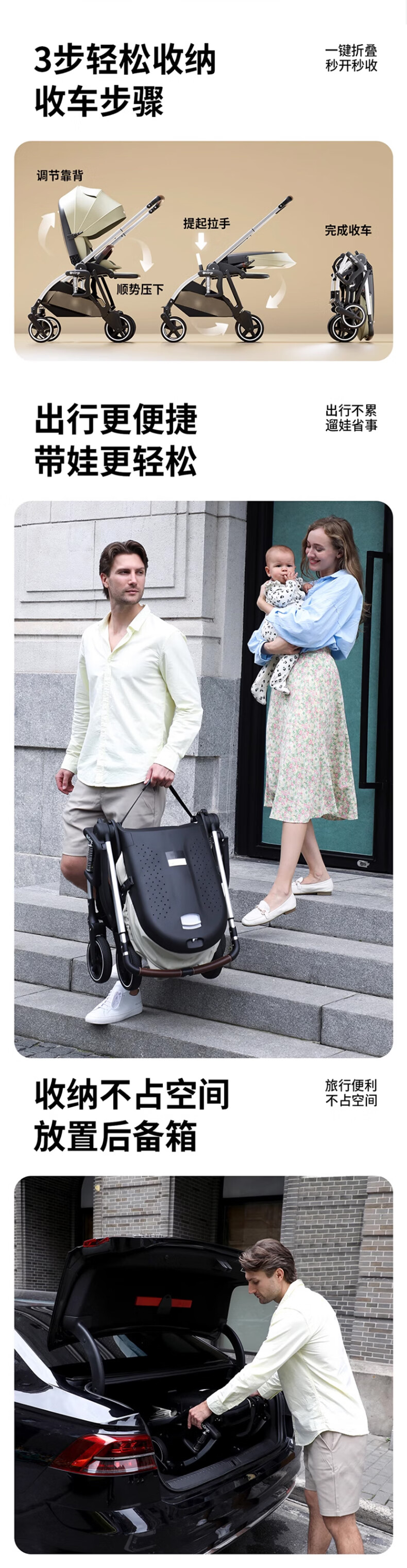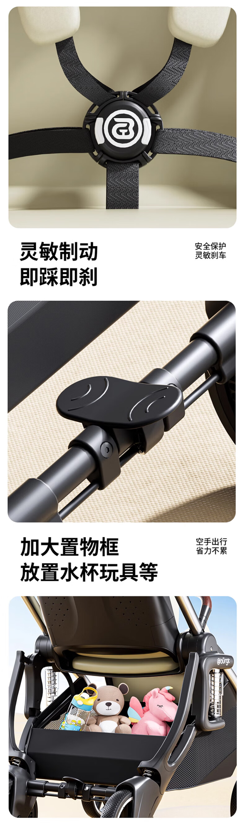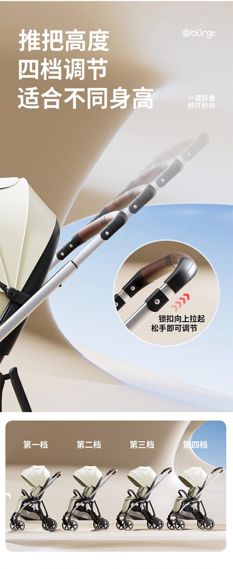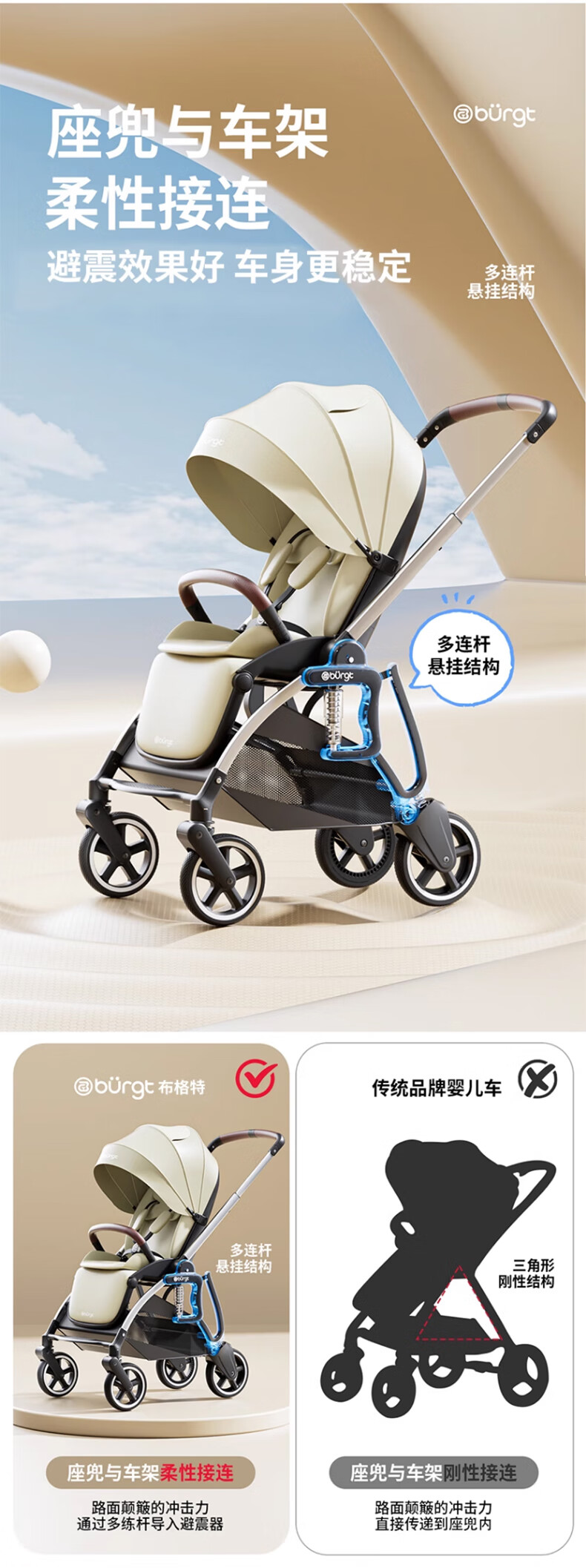 布格特婴儿推车液压避震0-3岁可坐可躺可折叠护脊新生宝宝双向手推车 浅茶绿(真避震护脊)