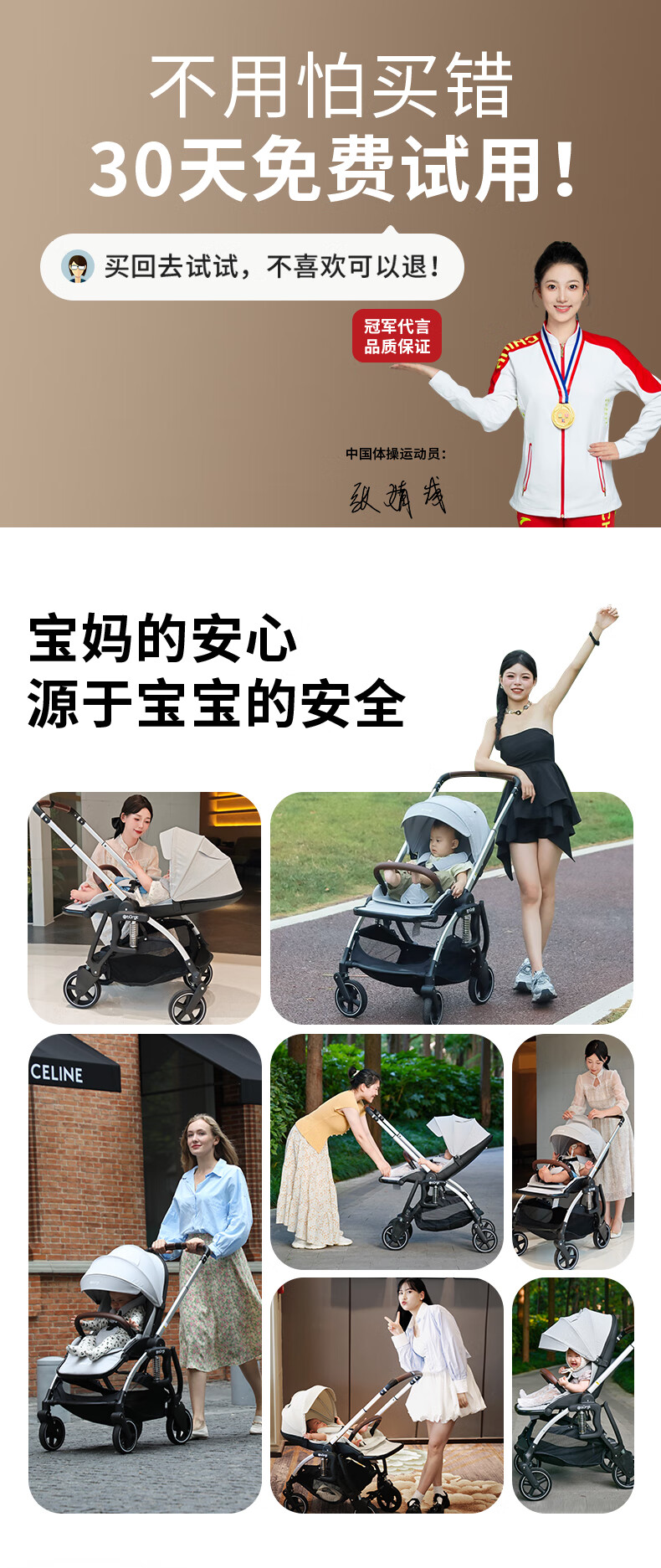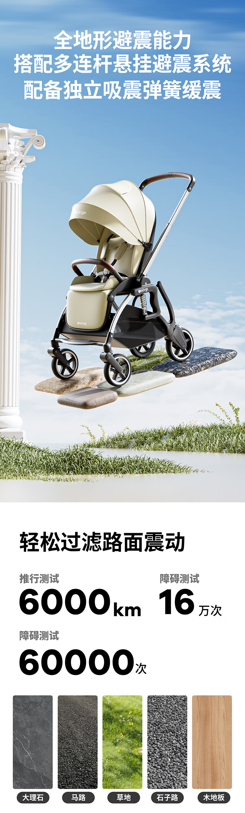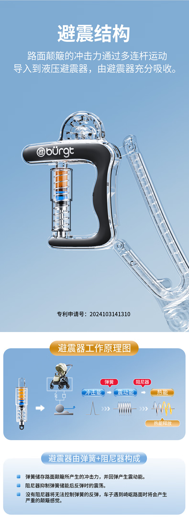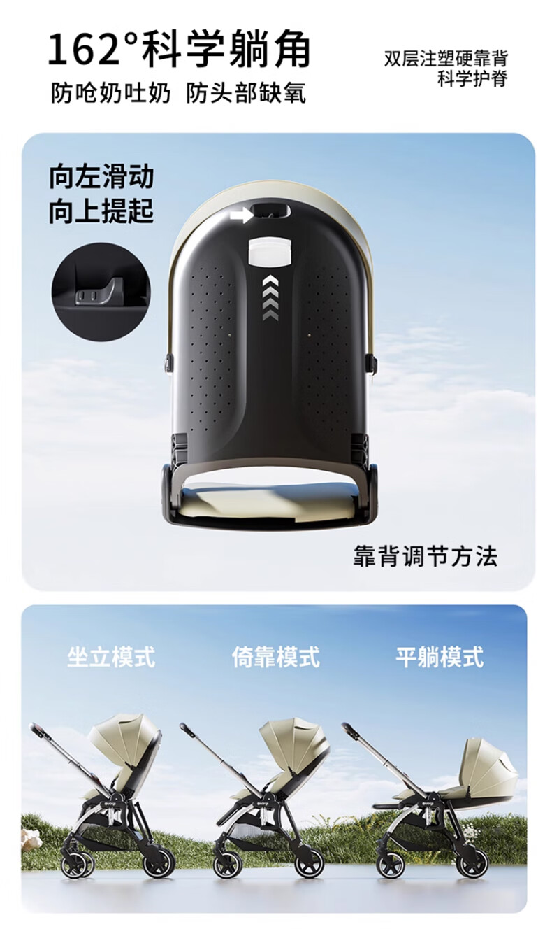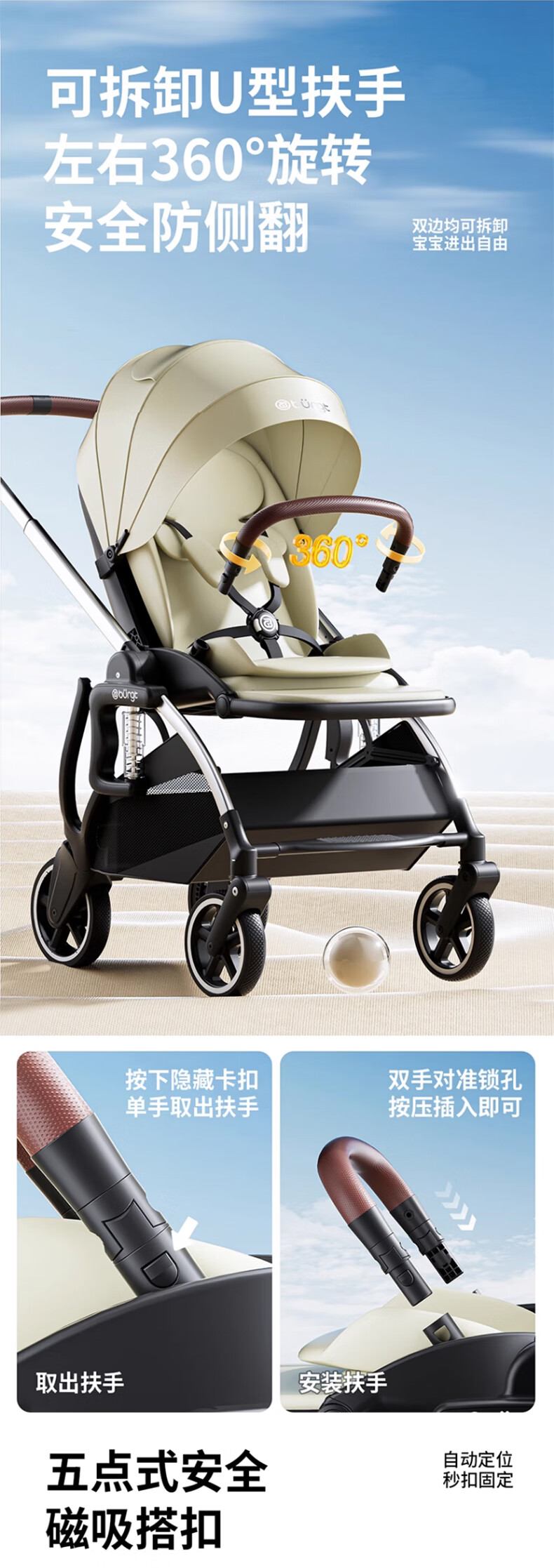 布格特婴儿推车液压避震0-3岁可坐可躺可折叠护脊新生宝宝双向手推车 浅茶绿(真避震护脊)