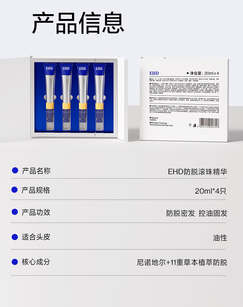 EHD净澈防脱固发液滚珠养发改善精华 【一盒】净澈防脱固发液 20ml*4支