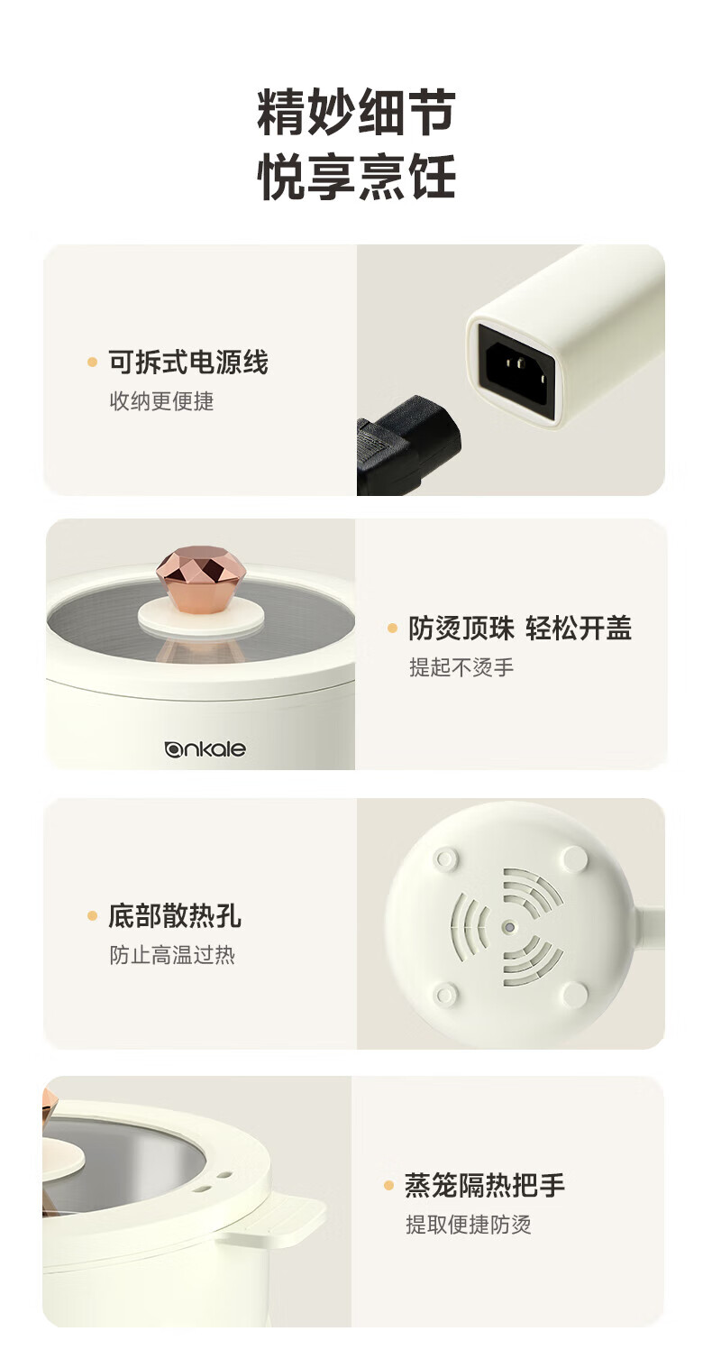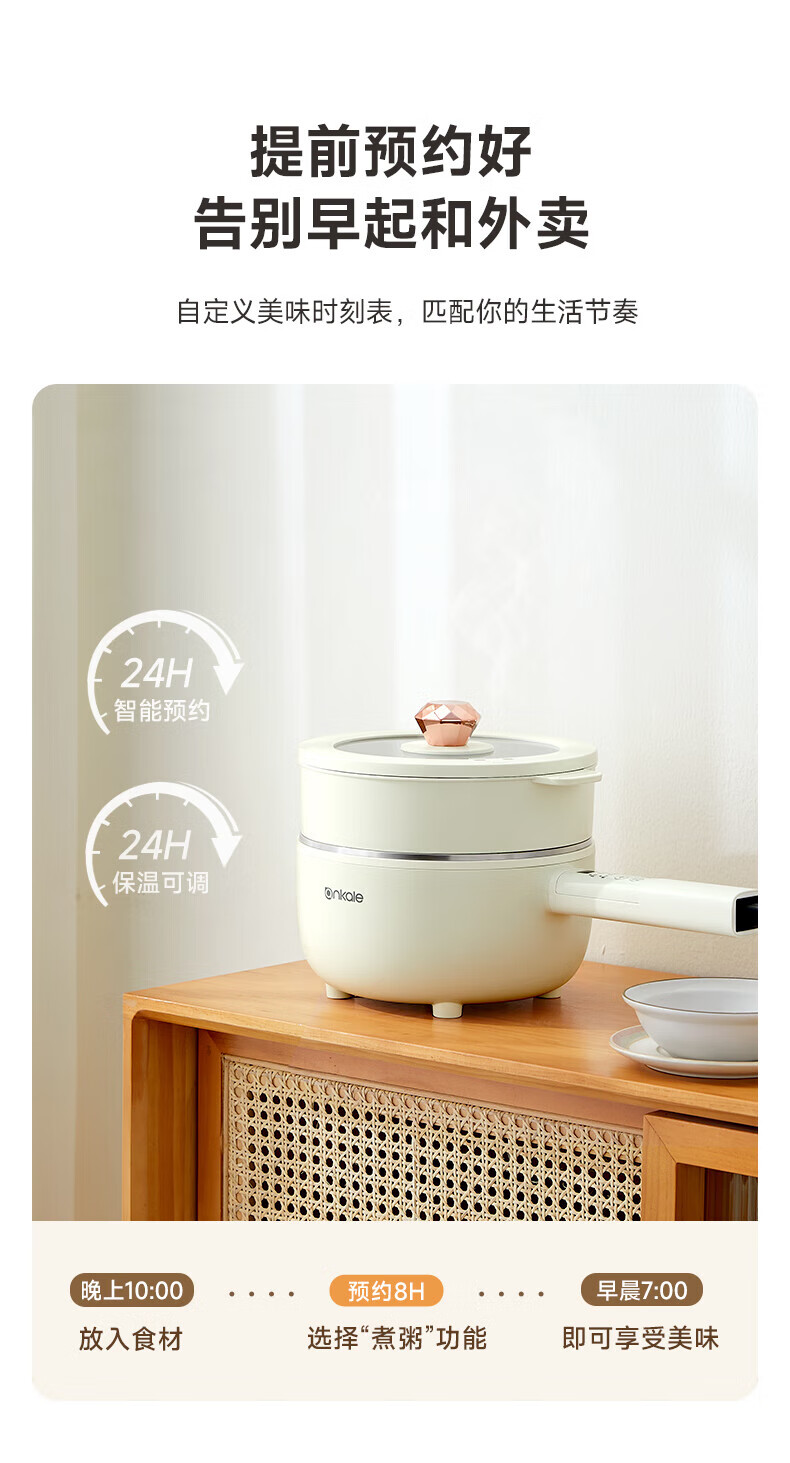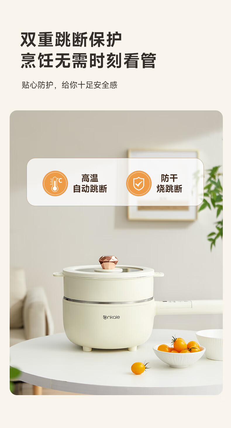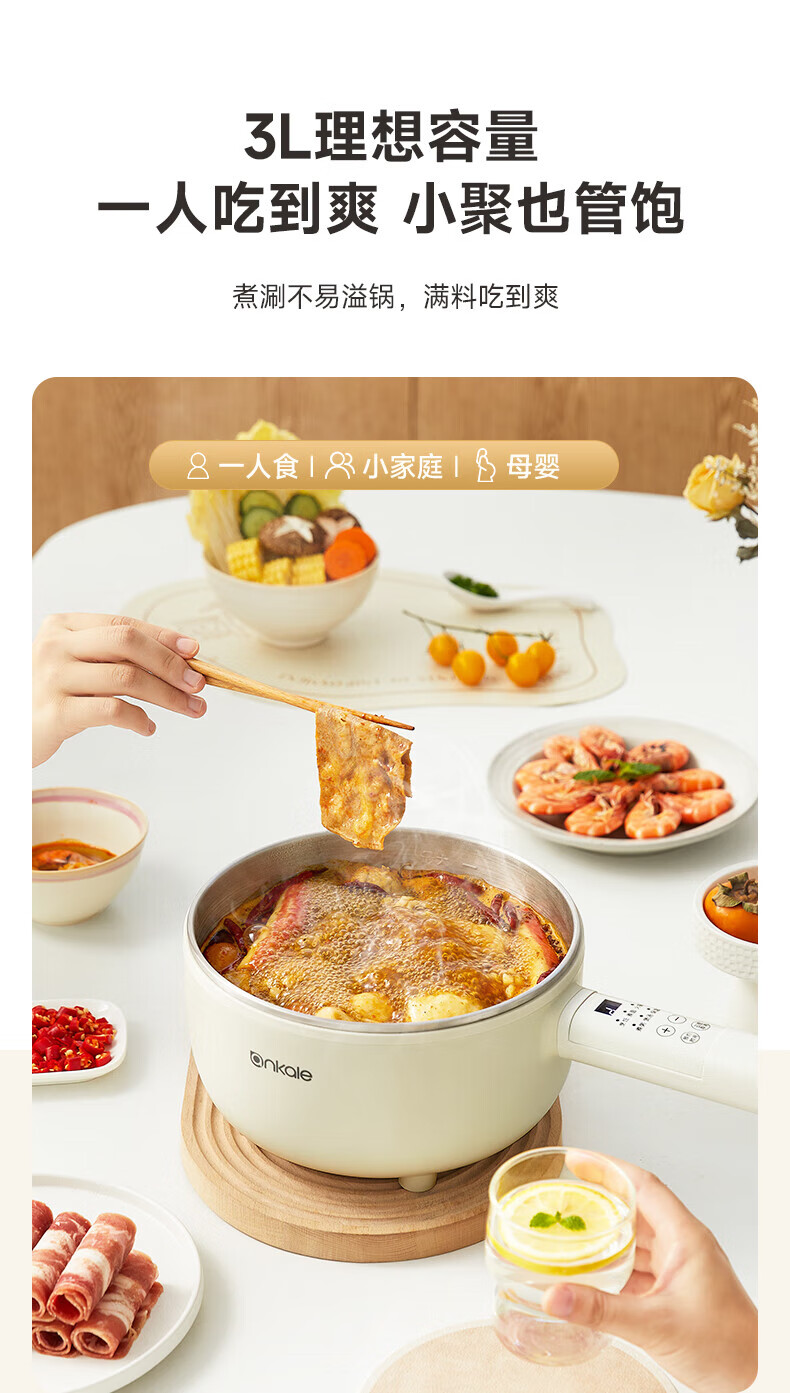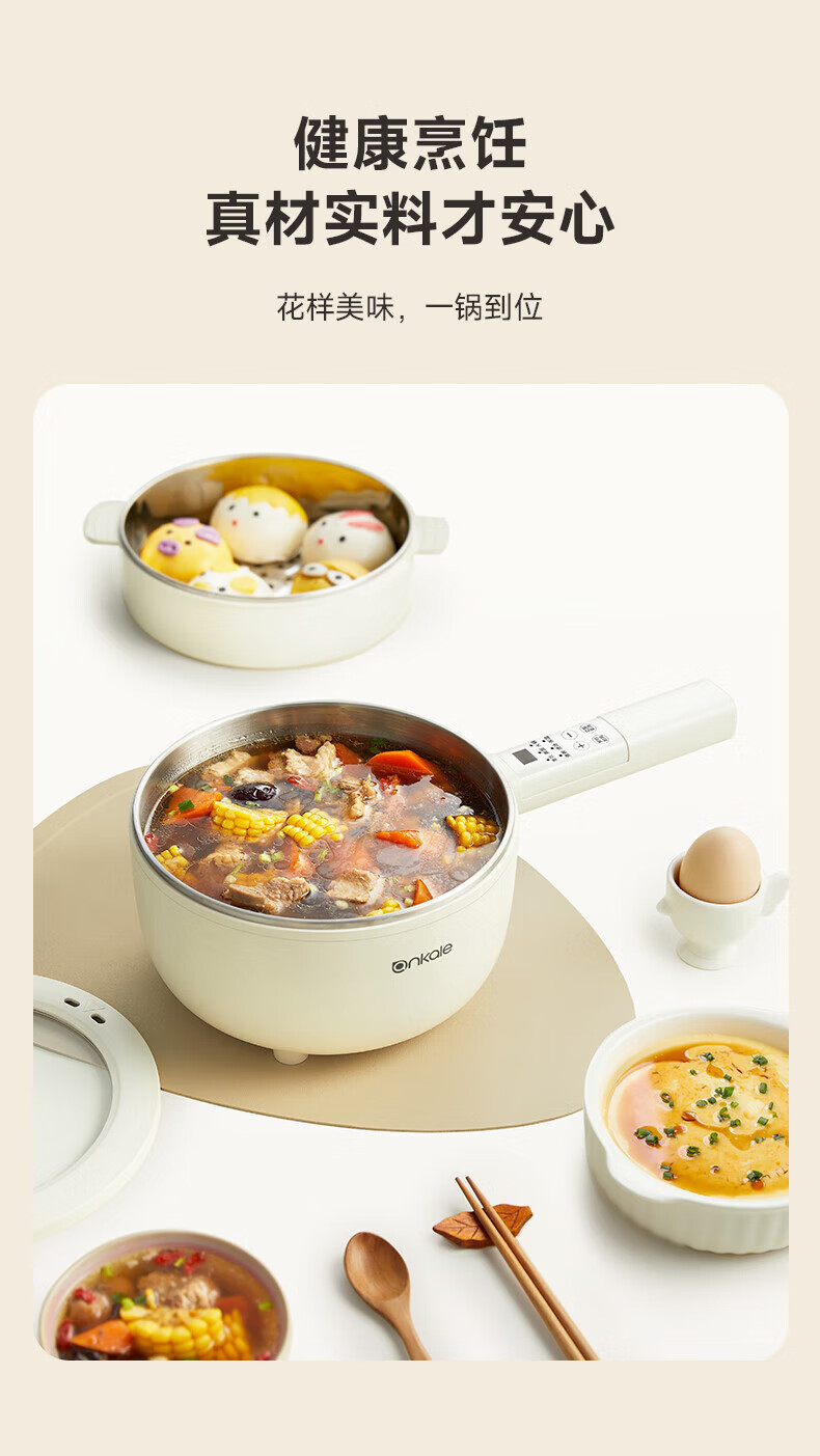 ankale不锈钢长柄电煮锅0氟0涂层 316全钢无缝一体胆+全钢蒸笼 上蒸下煮涮焖炖多功能一锅多用AJL-A3003K 3L 【长柄煮锅】316钢胆+304蒸笼