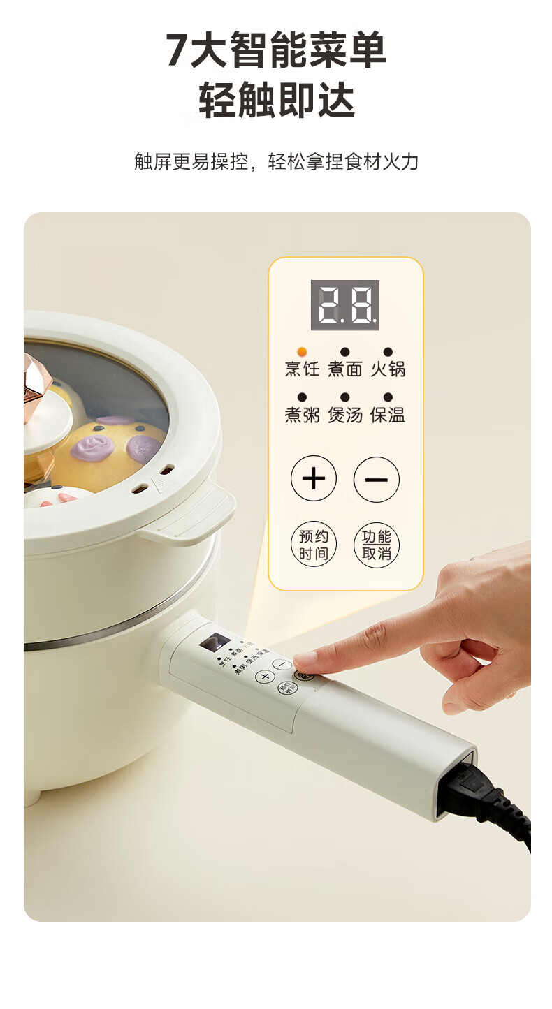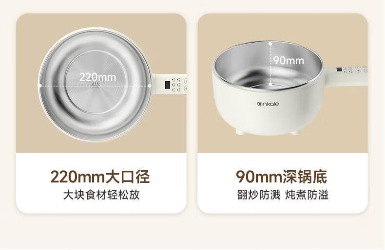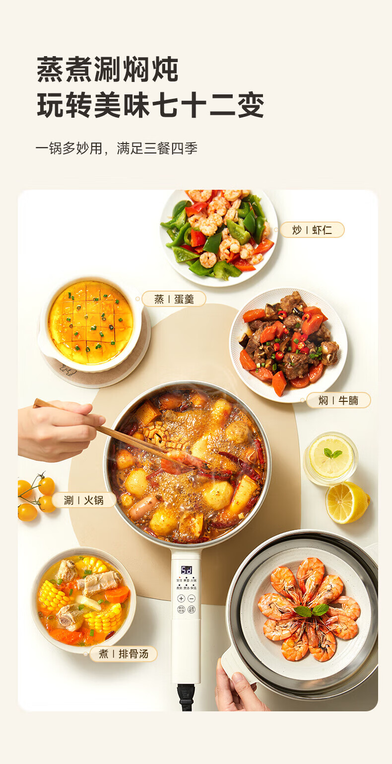 欧点多功能插电一体不粘锅电炒锅铁锅家用电火锅4L容量电热锅蒸煮炖涮煎炒电蒸锅大功率蒸笼蒸屉 【整圈加热】4L|不粘涂层内胆