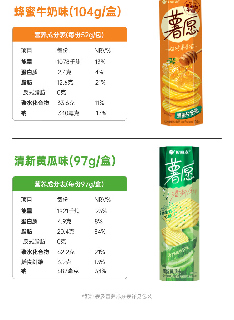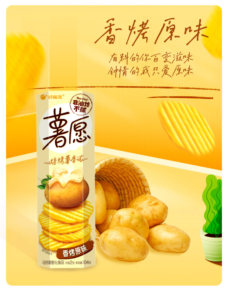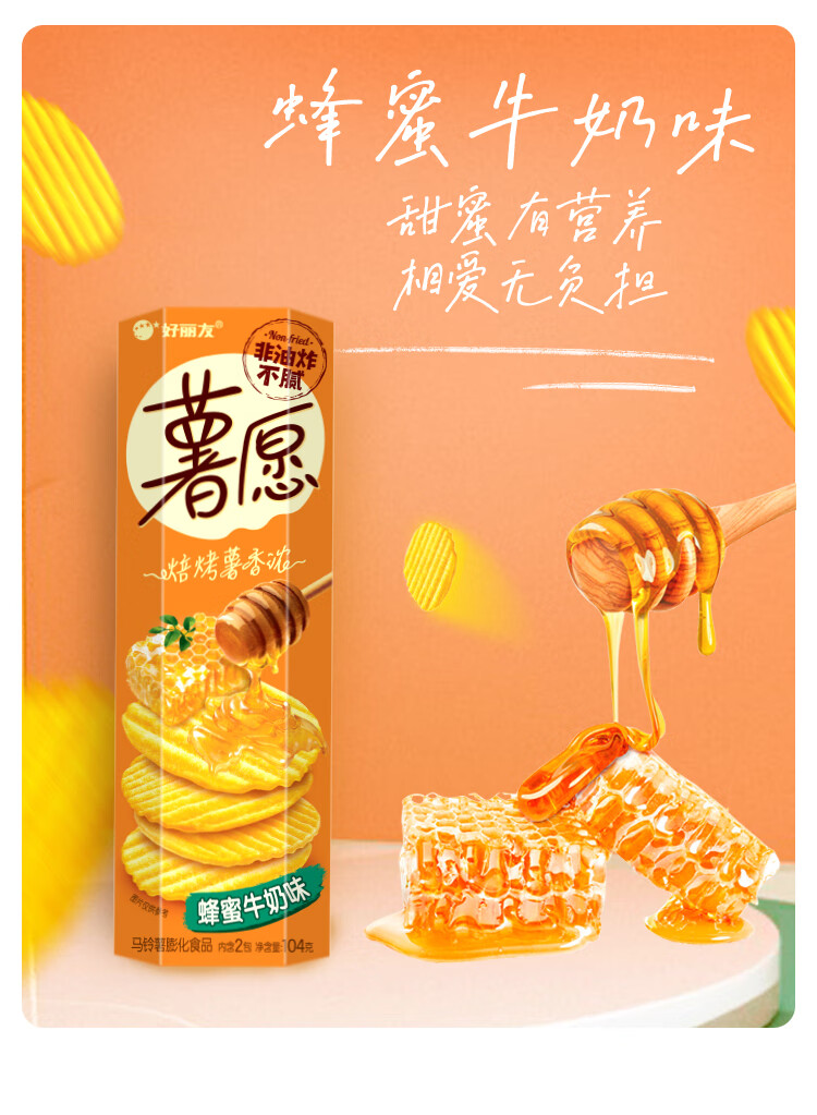 好丽友(ORION)薯愿薯片零食成人儿童休闲零食非油炸膨化食品办公室小零食 【蜂蜜牛奶味】104g