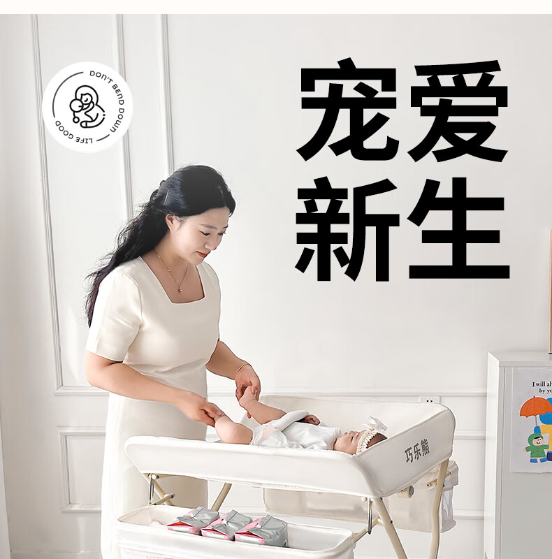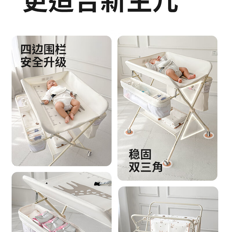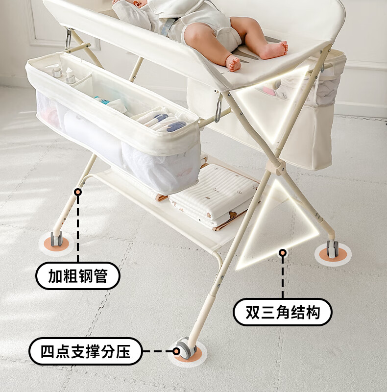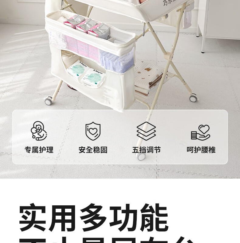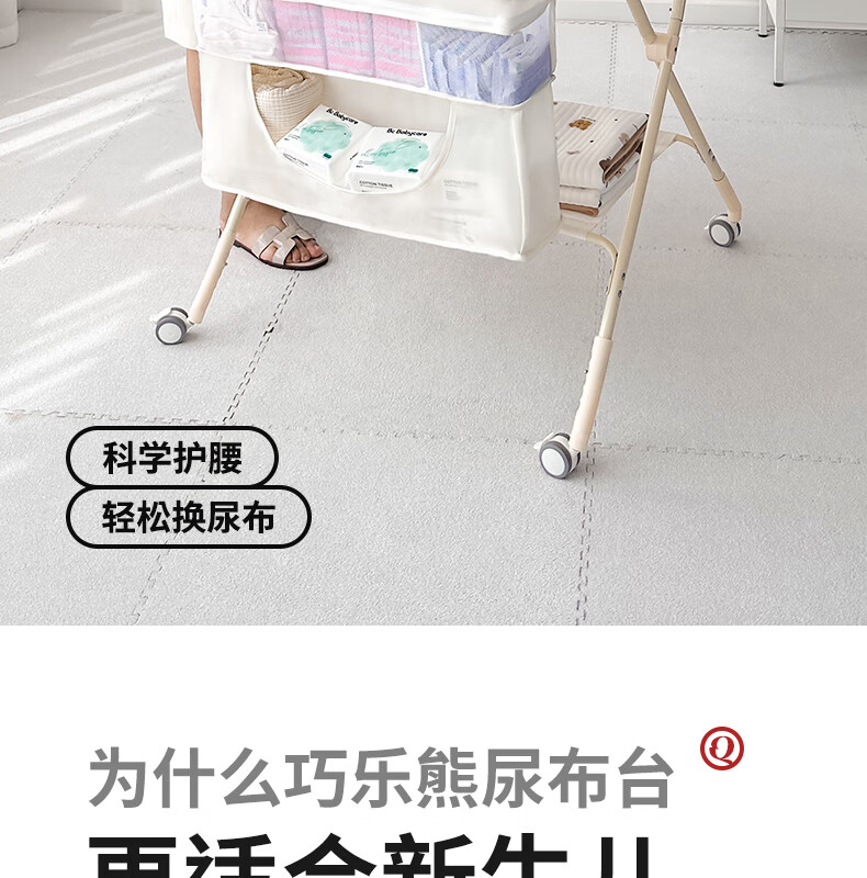 巧乐熊尿布台婴儿护理台多功能操作台新生儿抚触台宝宝洗澡换尿布台 莫里斯灰-加厚骨架【尊享款】
