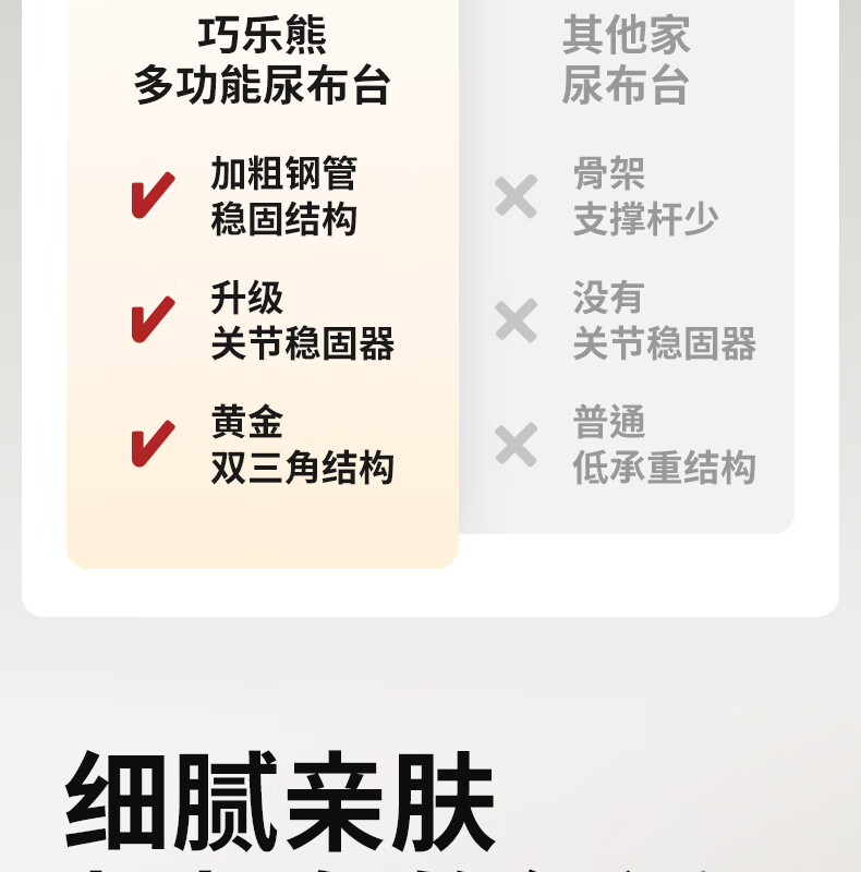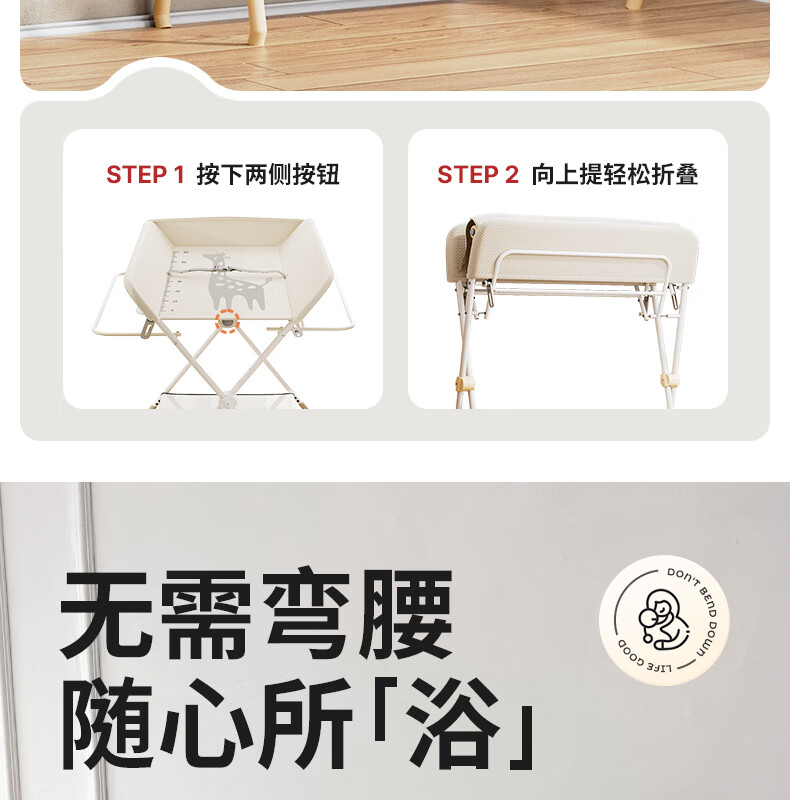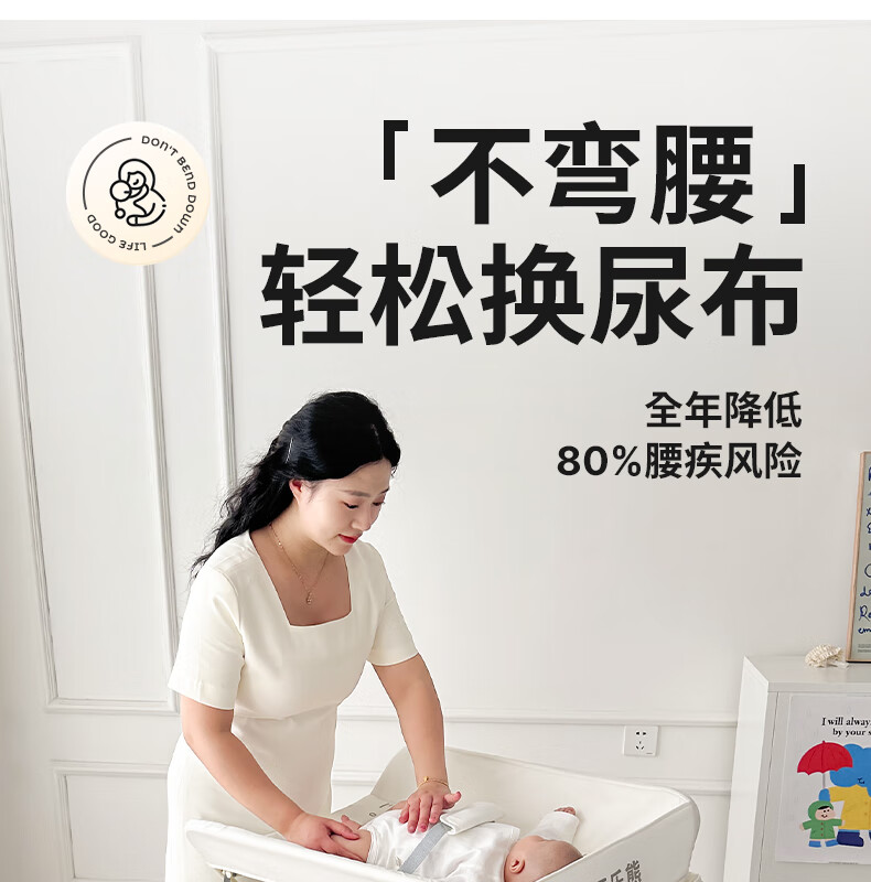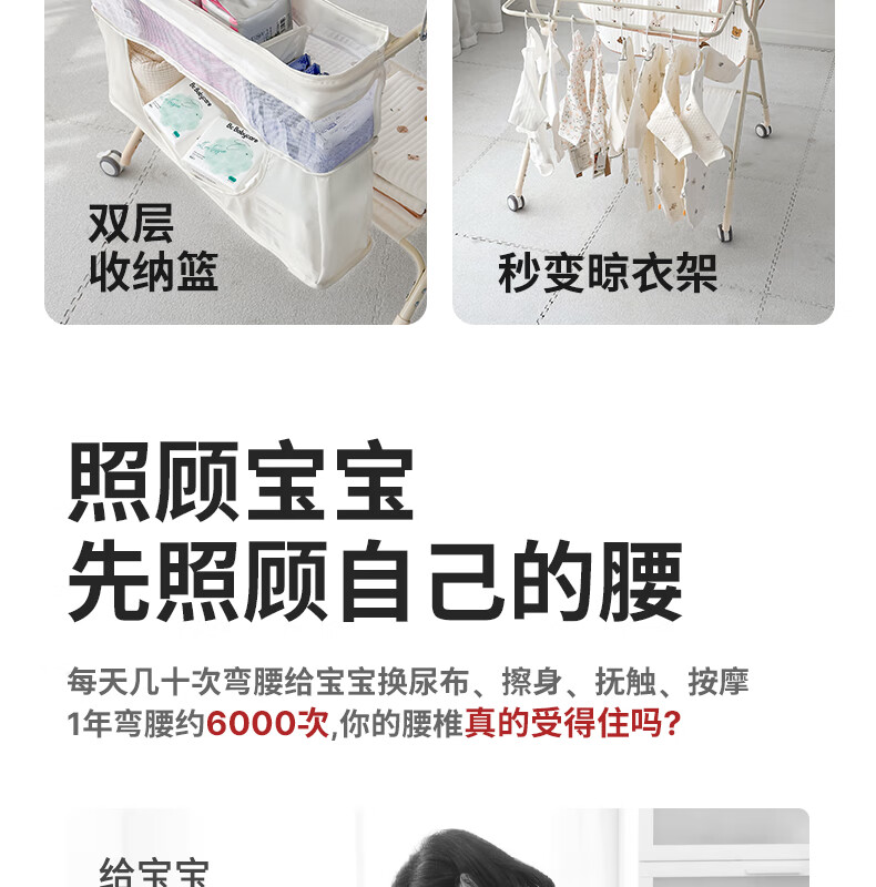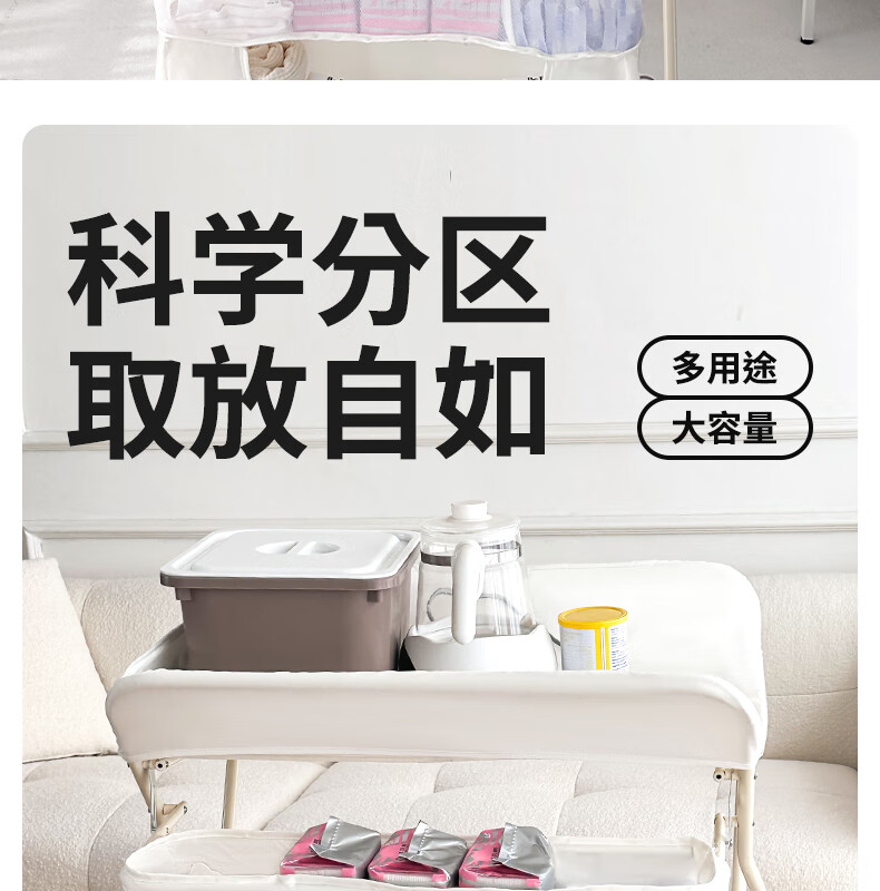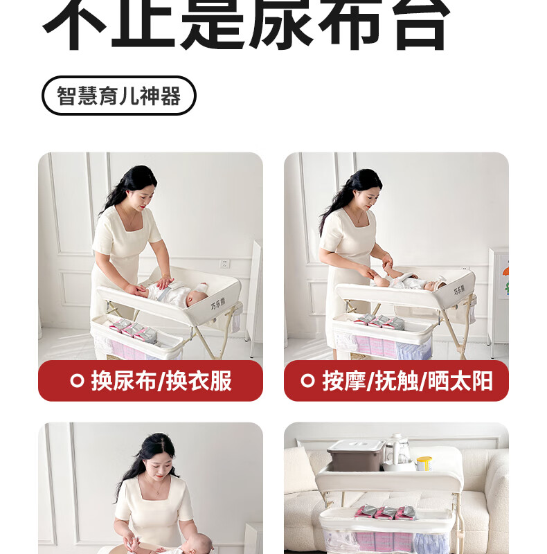 巧乐熊尿布台婴儿护理台多功能操作台新生儿抚触台宝宝洗澡换尿布台 莫里斯灰-加厚骨架【尊享款】