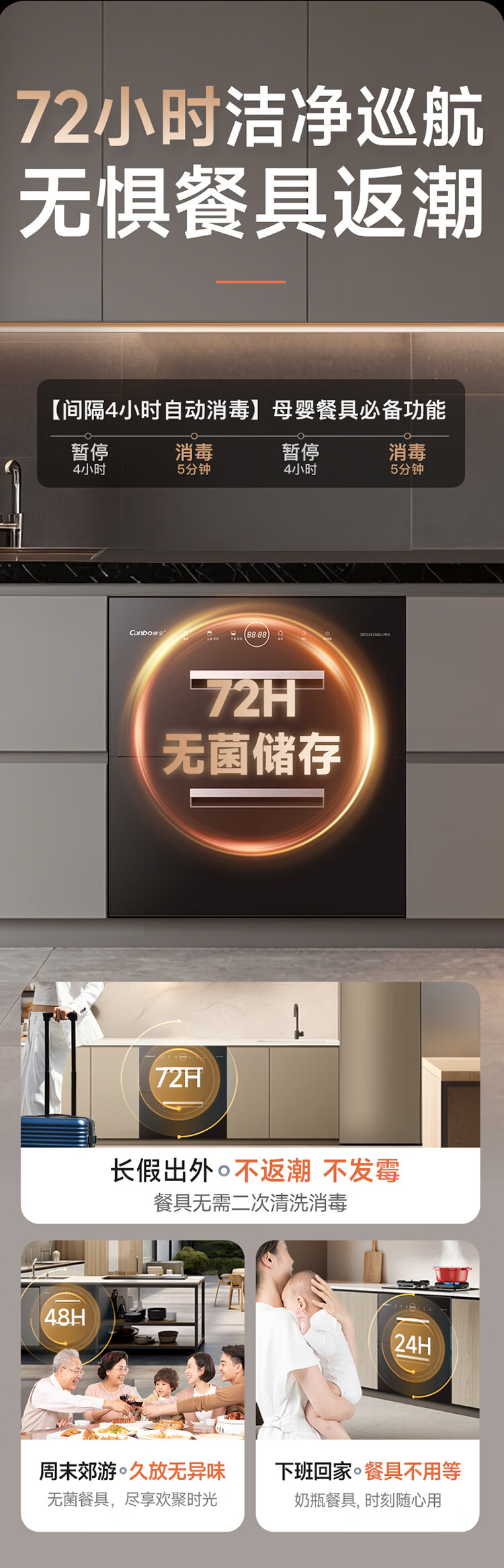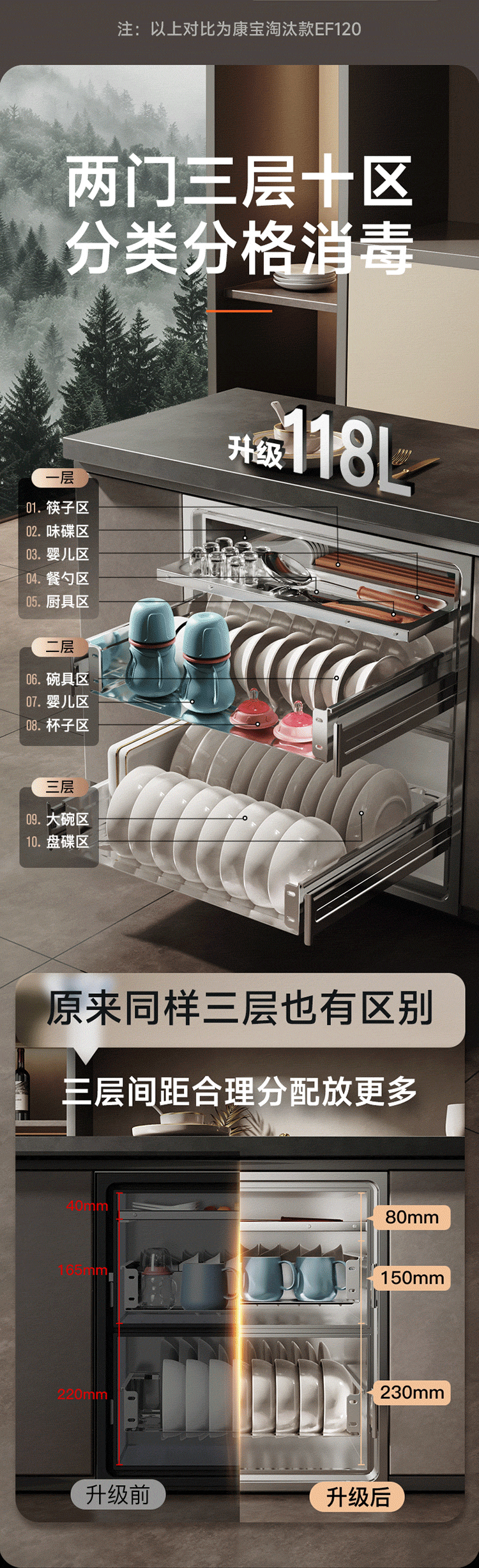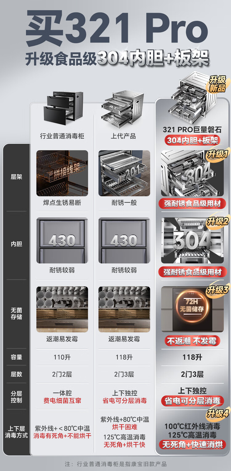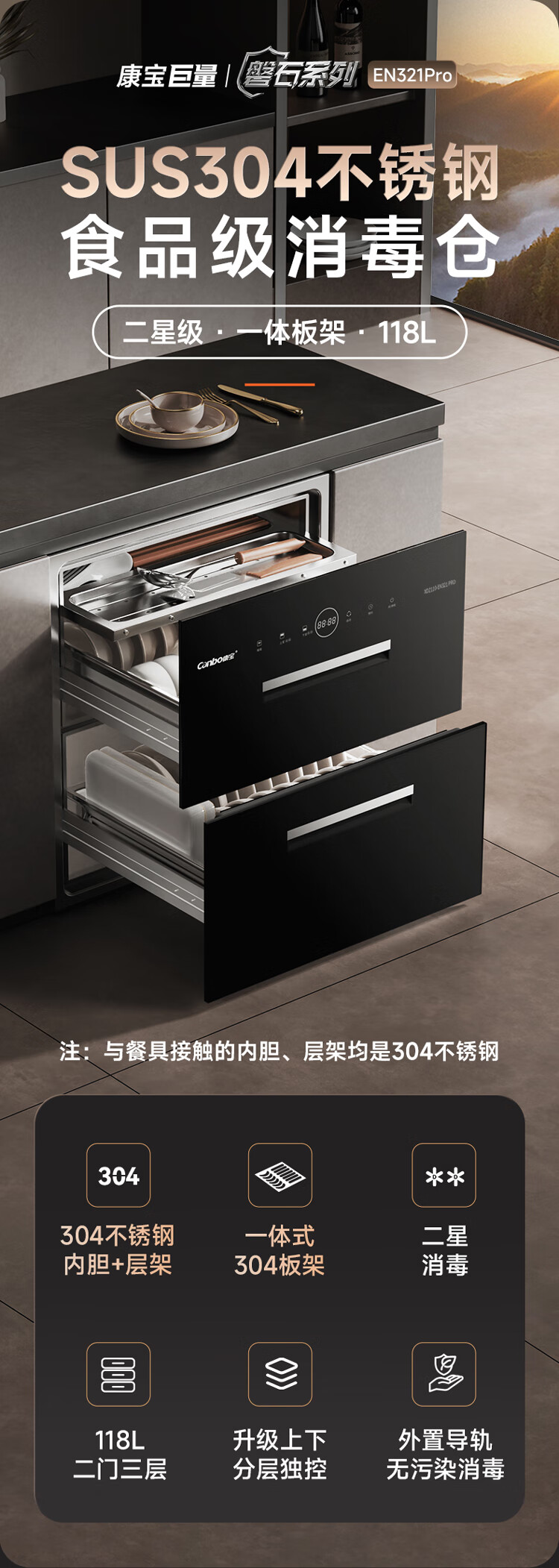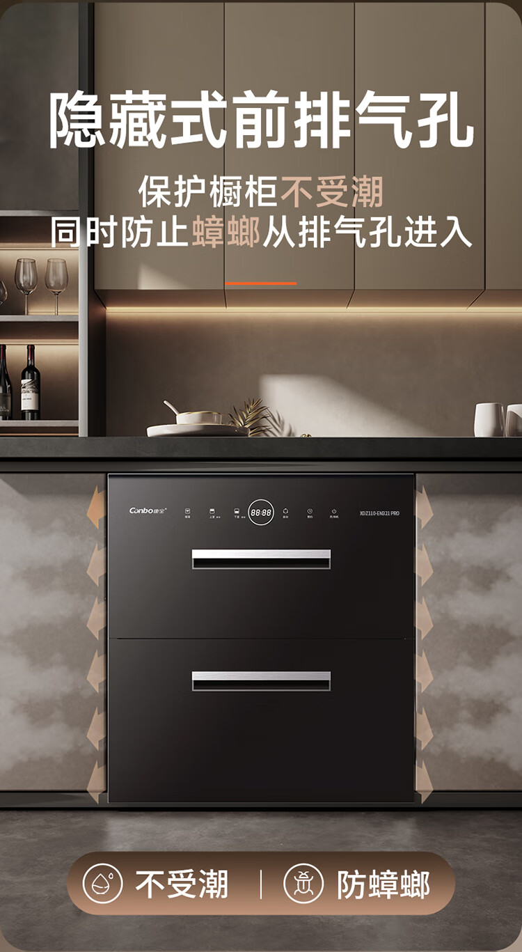 康宝(Canbo)家用大容量304不锈钢嵌入式巨量磐石三层消毒柜二星级甲流碗筷消毒碗柜以旧换新XDZ110-EN321 PRO