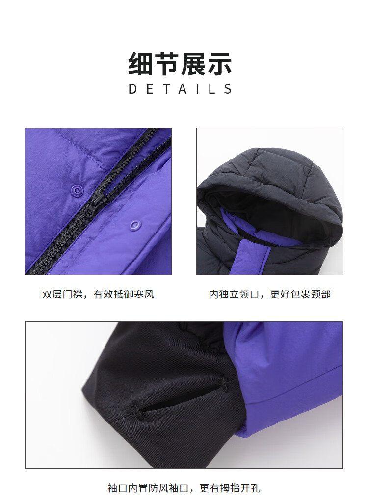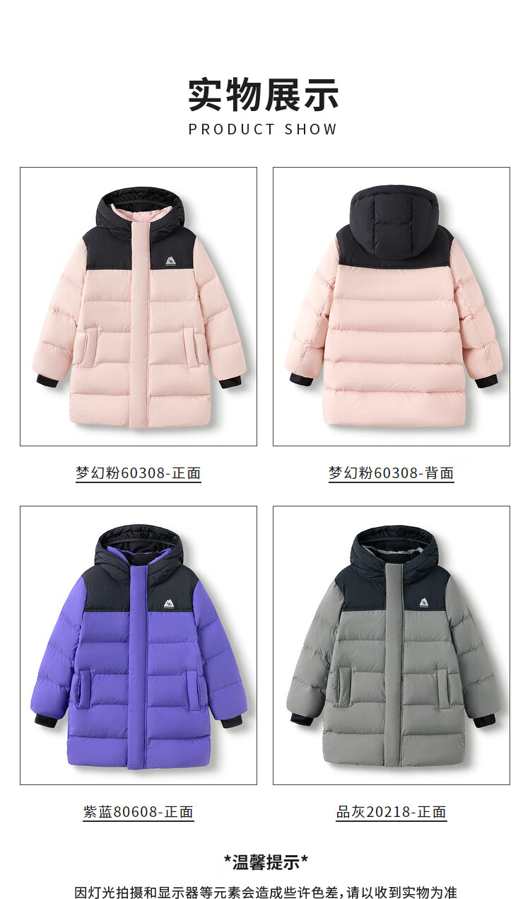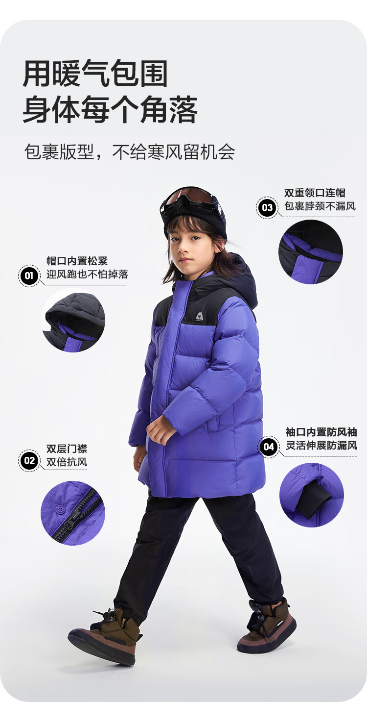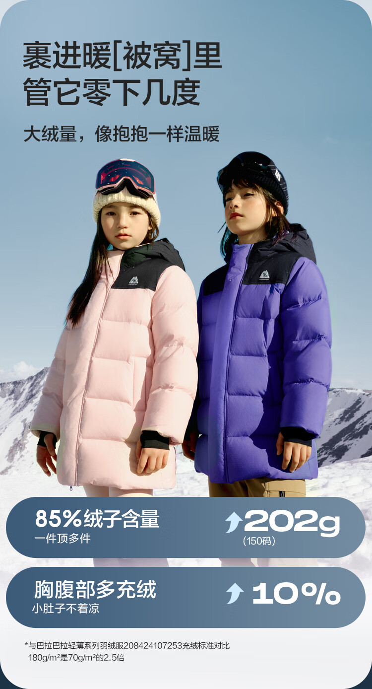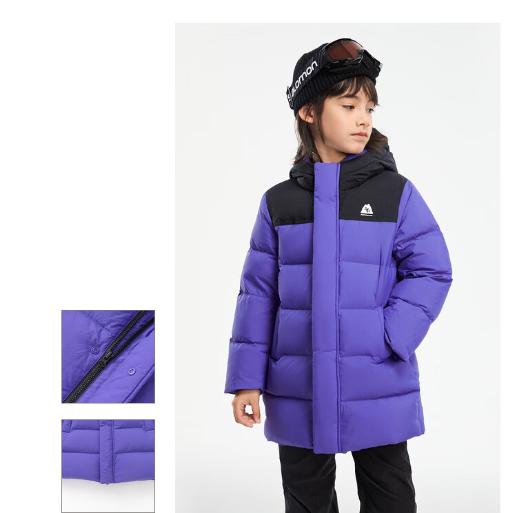 巴拉巴拉童装儿童长款羽绒服冬装男童女童极寒户外拼接撞色外套 紫蓝(灰鸭绒)80608 140 (充绒量180g)