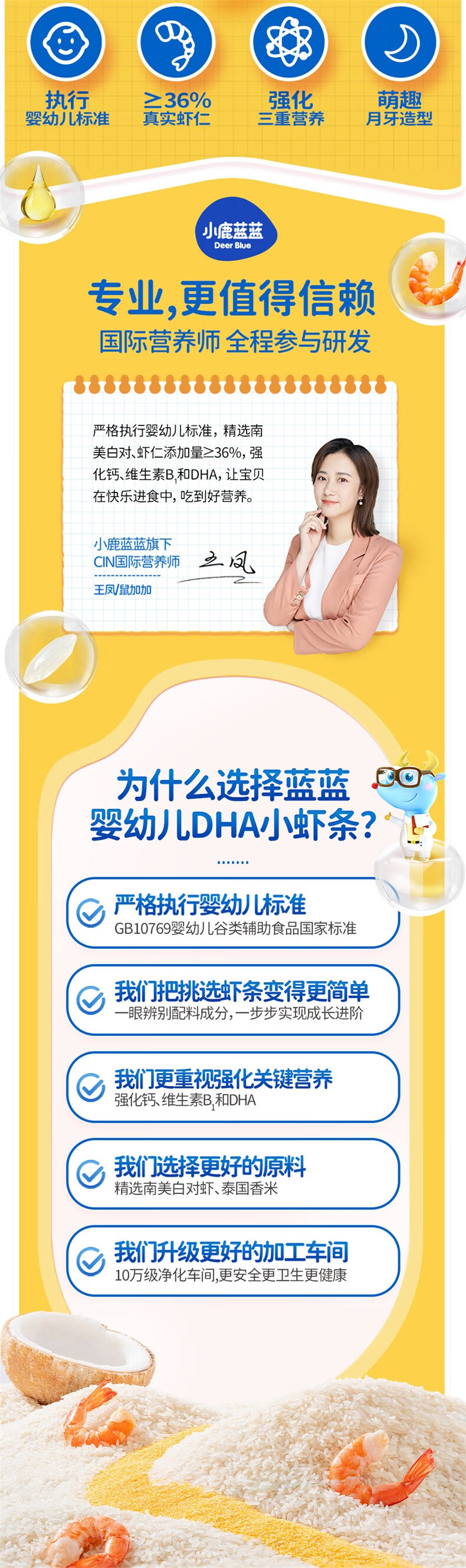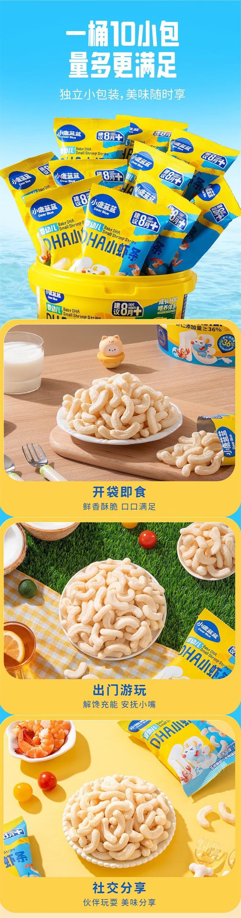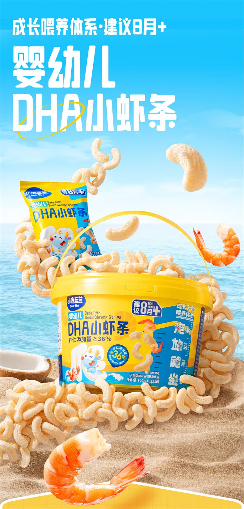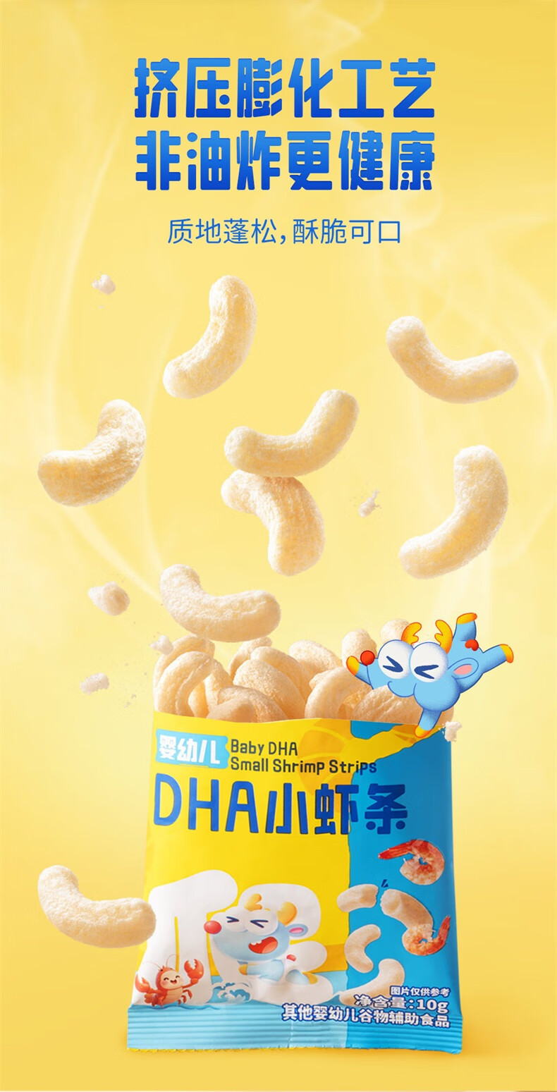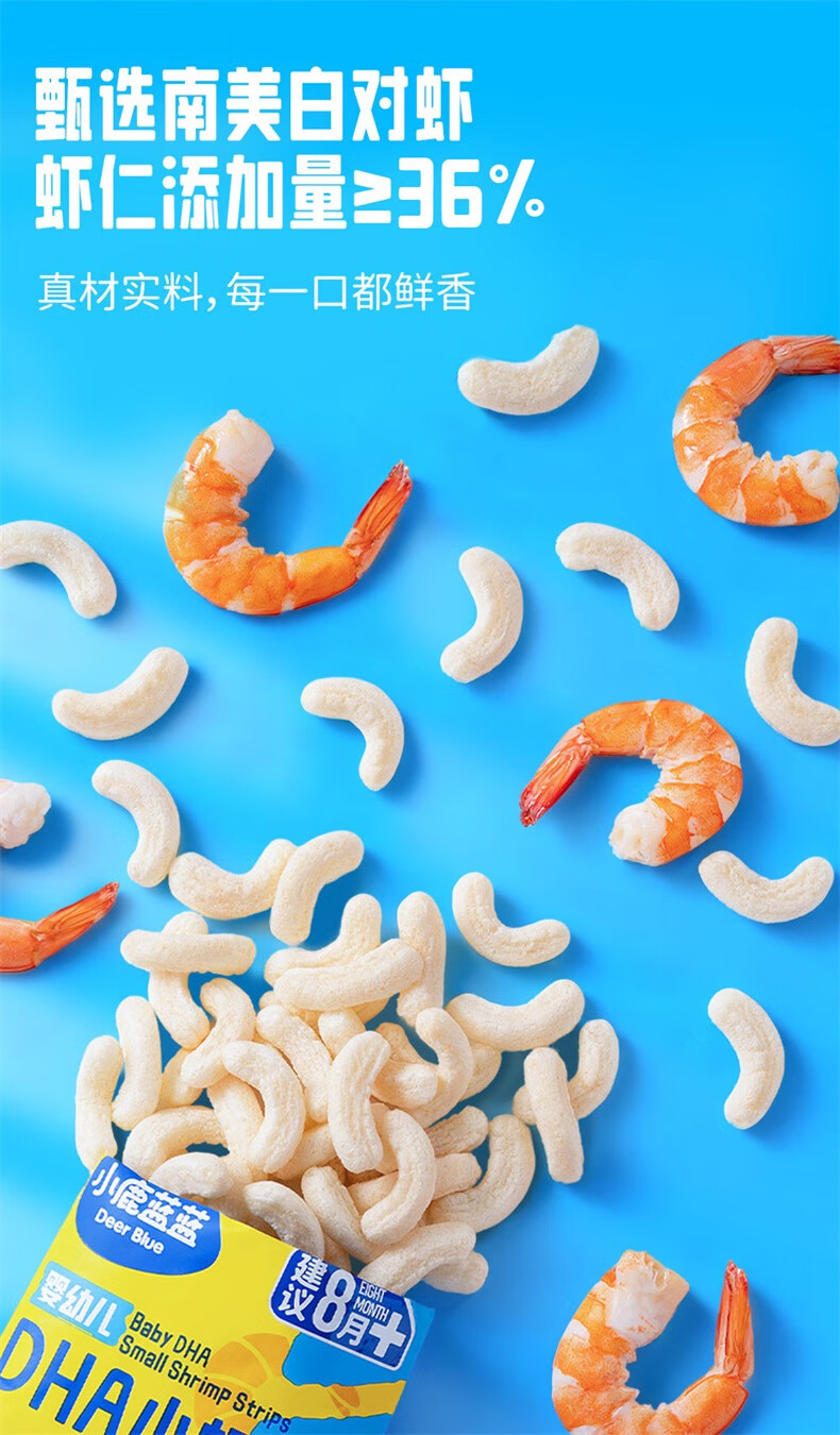 小鹿蓝蓝婴幼儿DHA小虾条泡芙条虾片婴儿宝宝零食辅食无添加盐虾条100g