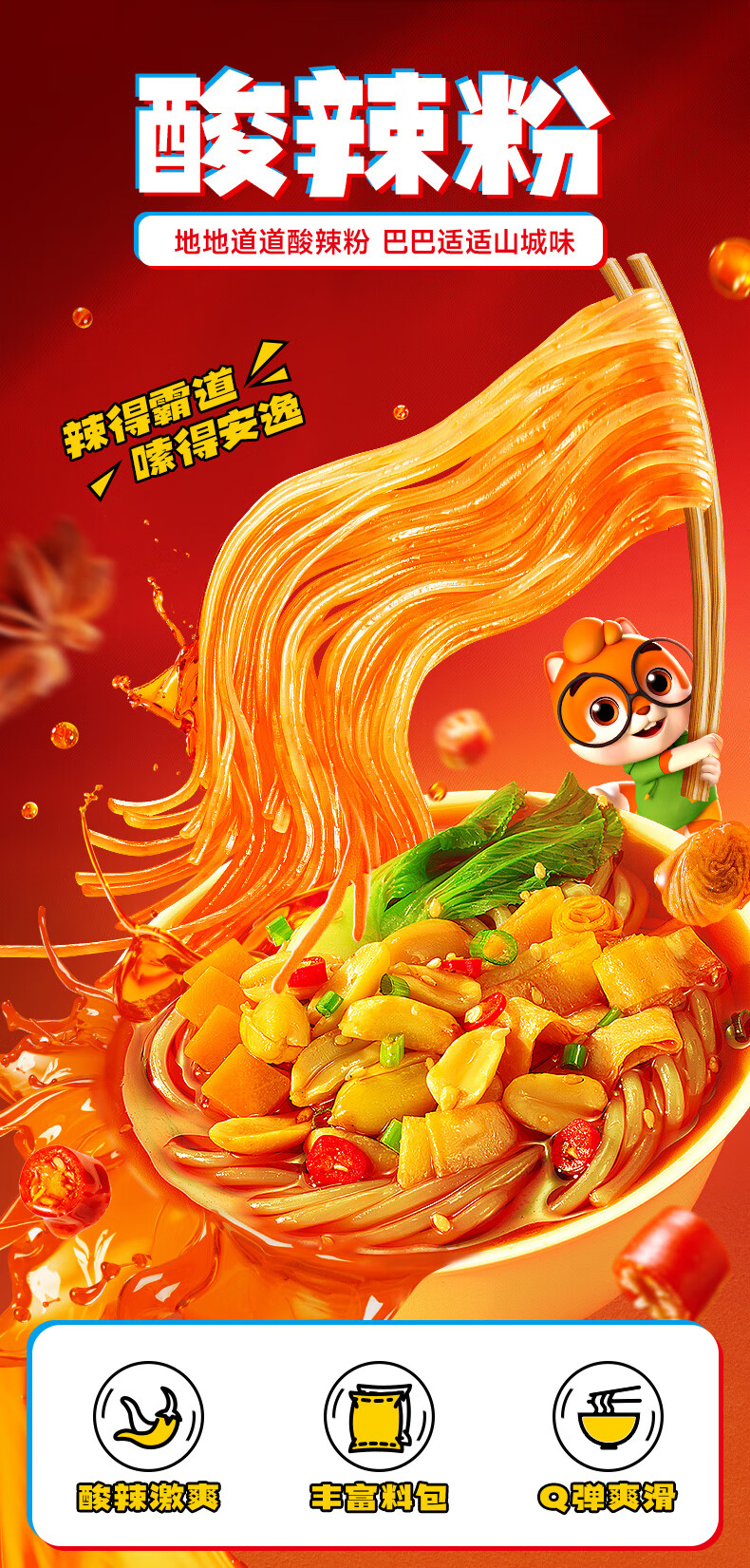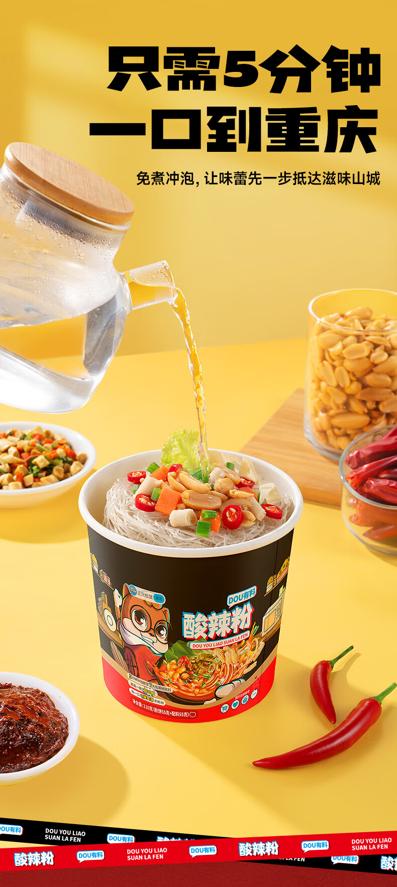 三只松鼠酸辣粉110gx6桶 方便速食泡面桶装冲泡免煮正宗重庆风味代餐