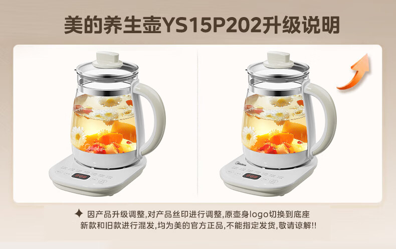 美的(Midea)家用养生壶 1.5L全自动玻璃烧水壶 多段保温电热水壶 一体恒温煮茶壶 轻音柔声炖煮智能预约 升级新品【玻璃壶盖】 1.5L