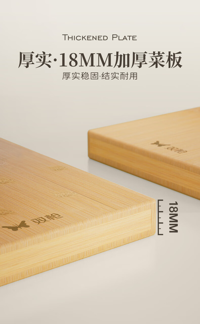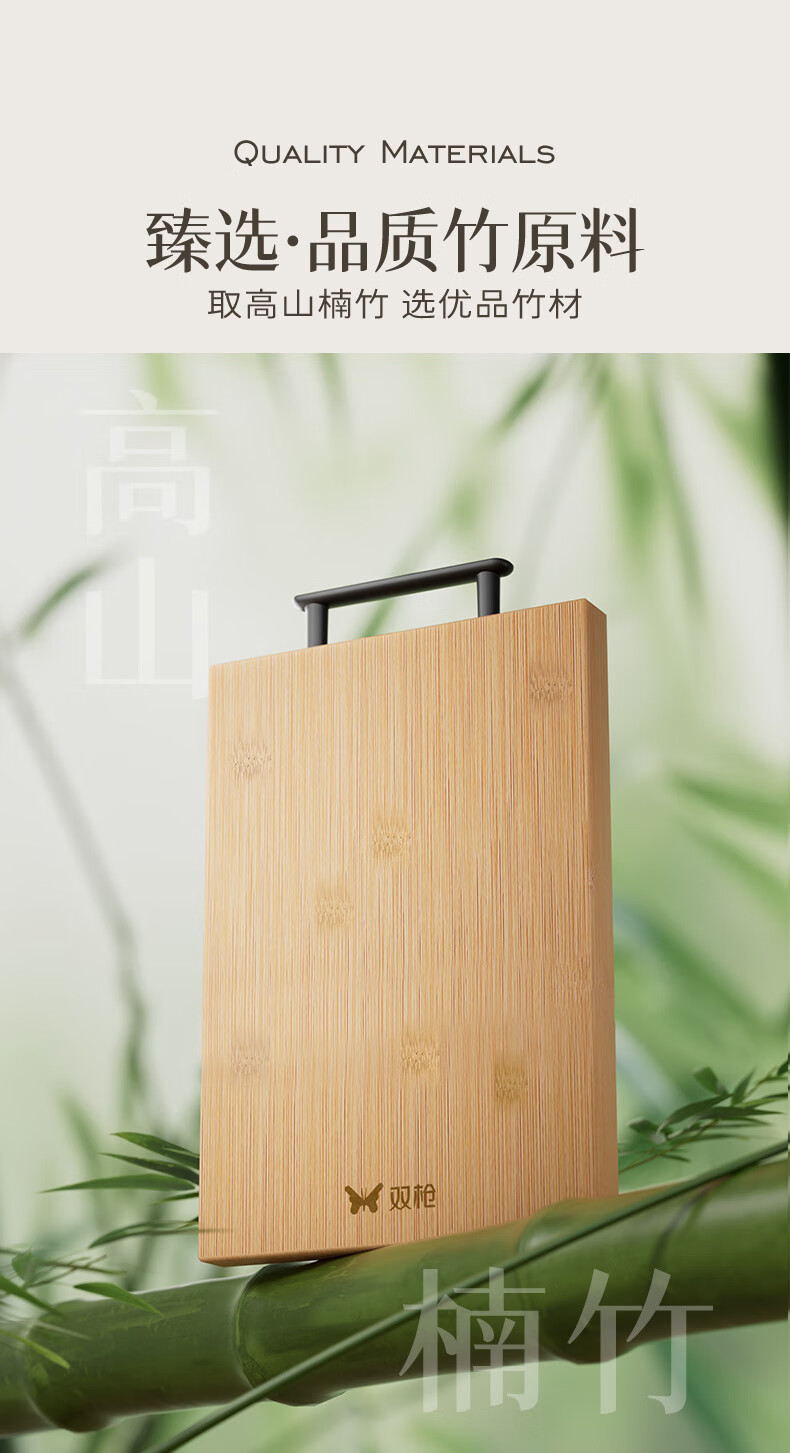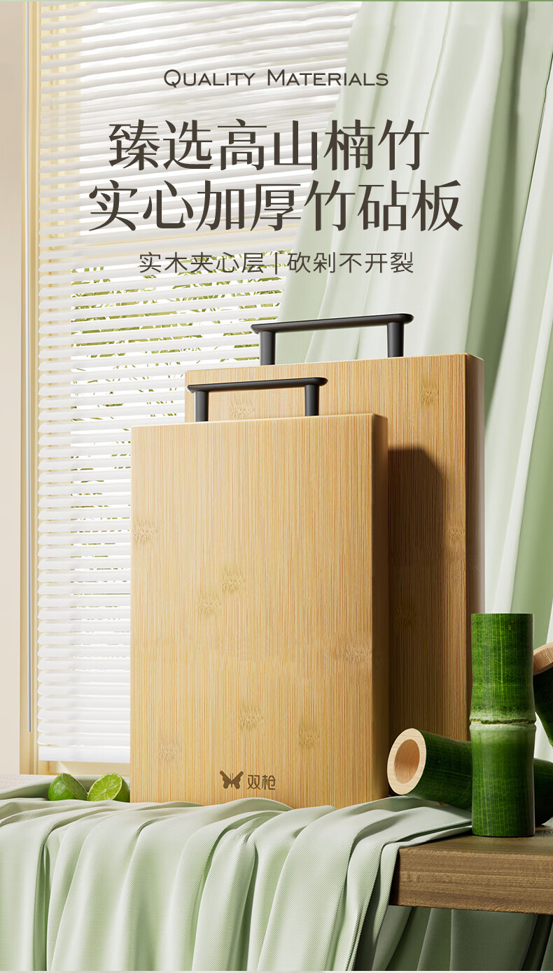 双枪高山楠竹砧板 案板切菜板加厚刀板粘板40*29.5*1.8cm