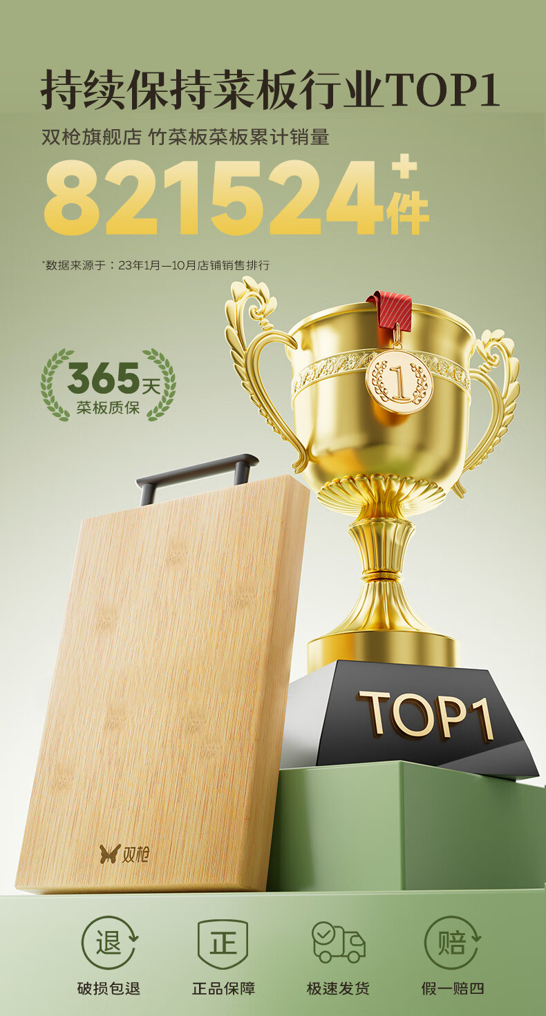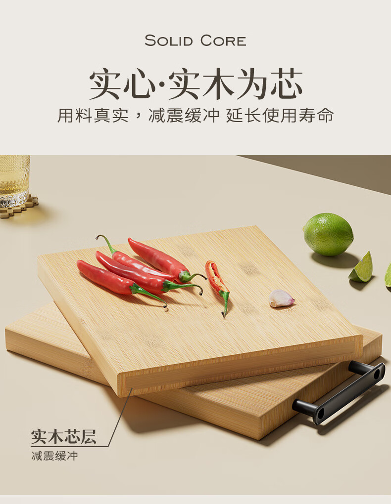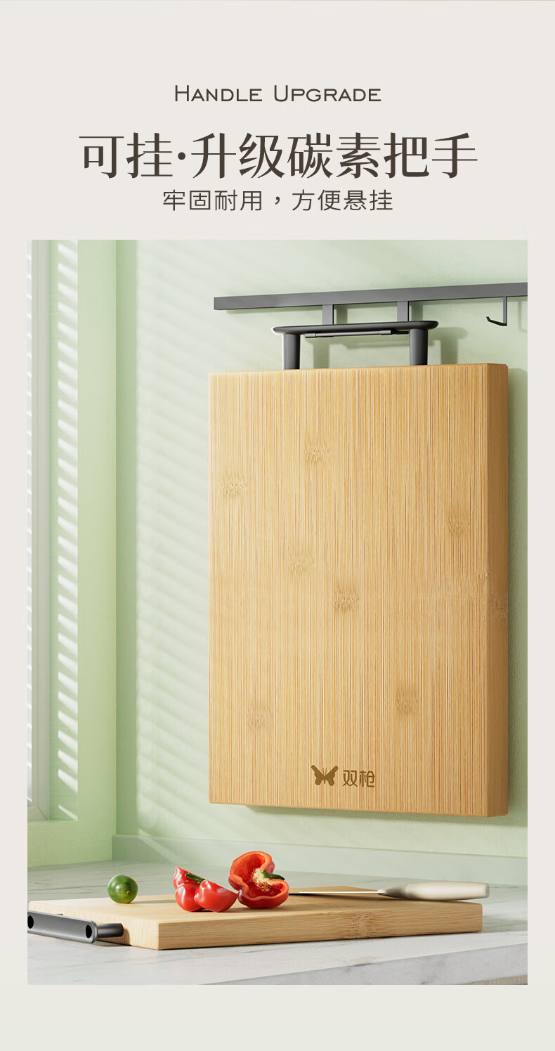 双枪高山楠竹砧板 案板切菜板加厚刀板粘板40*29.5*1.8cm