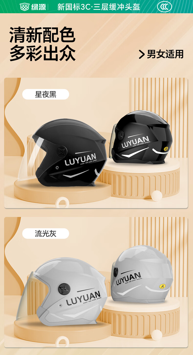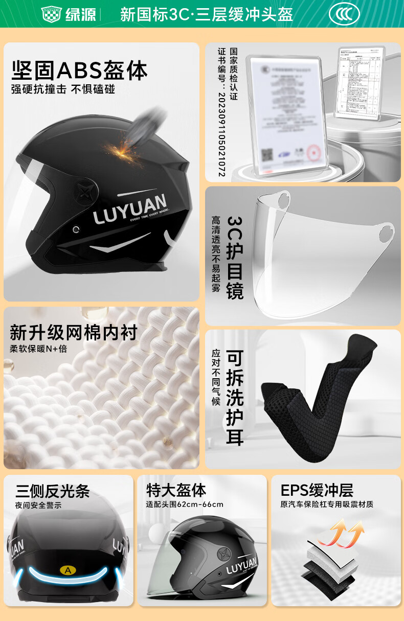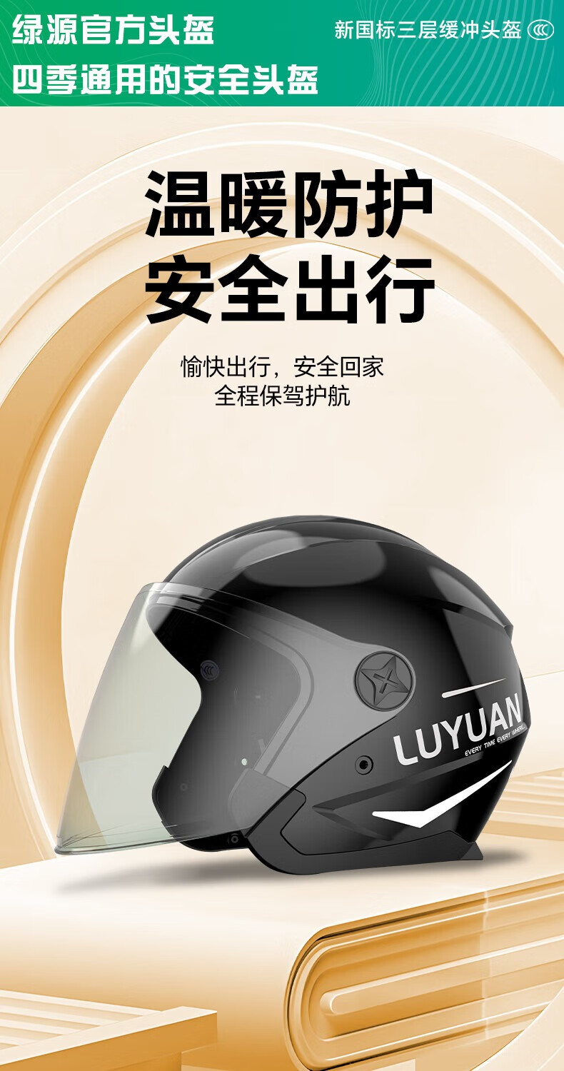 绿源(Luyuan)电动车头盔冬季A类防冻保暖防雾男女通用3C认证大号码半盔秋冬四季款电瓶车安全帽 星夜黑【3C防雾镜+可开启通风】