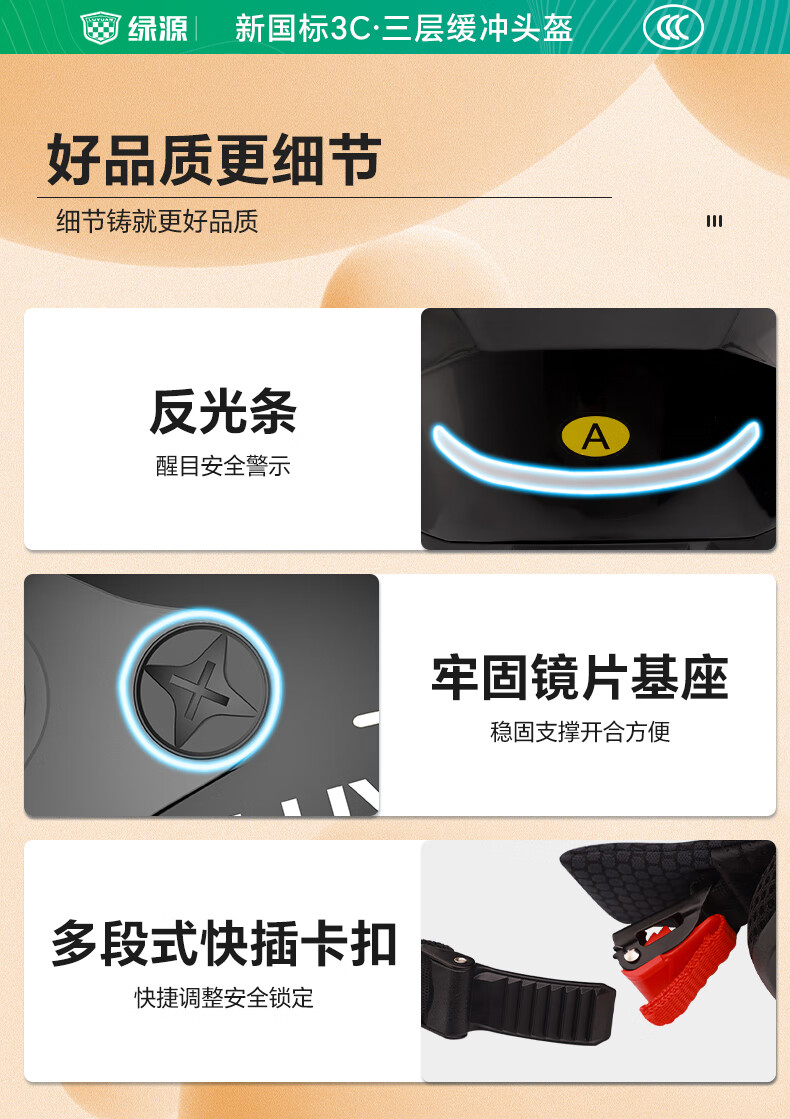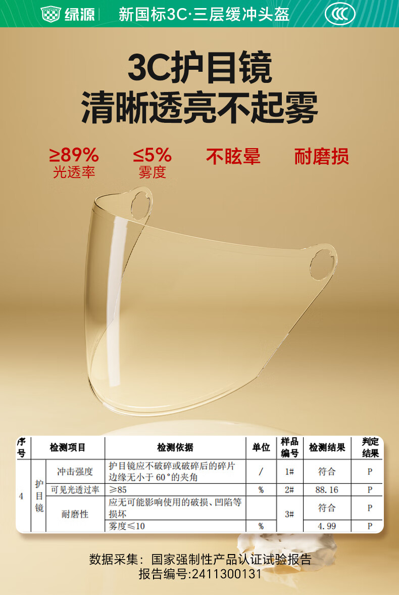 绿源(Luyuan)电动车头盔电瓶车3c认证摩托车头盔女男通用四季盔半盔防晒安全帽 卡其色-大眼精灵-透明短镜 【不带护耳】