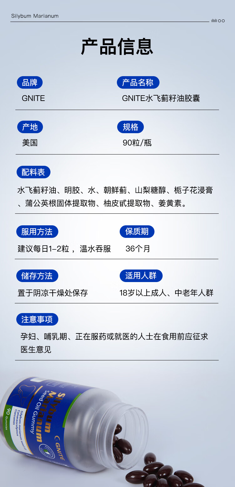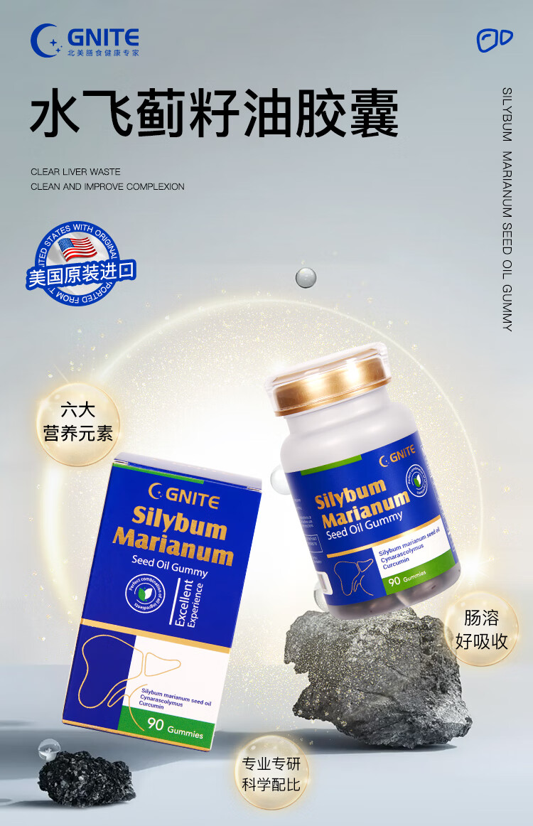 GNITE小金盾姜黄素进口美国养肝护肝水飞蓟籽油正品护肝胶囊 90粒*2瓶
