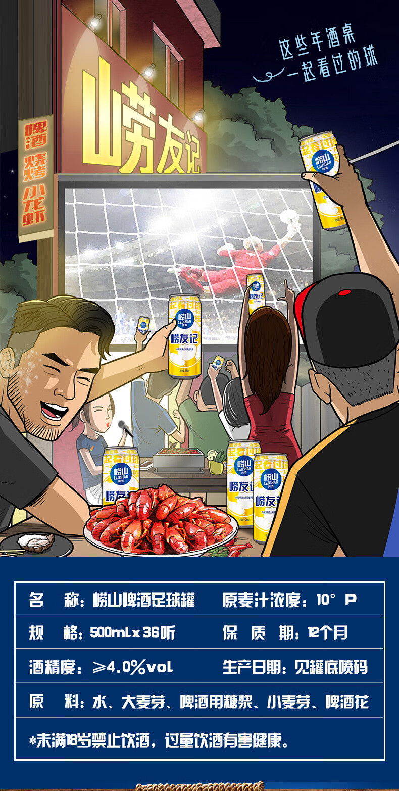 崂山啤酒(laoshan beer) 崂友记 足球罐 500ml*12听*3箱 青岛崂山啤酒 看球之选 啤酒整箱 500mL 36罐 整箱装