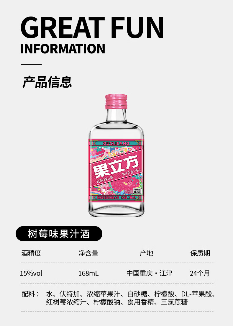 江小白果立方果汁酒15-23度果酒树莓味蜜桃味 低度微醺水果酒节日送礼 树莓味+蜜桃+葡萄 168mL 3瓶 (尝鲜组合)