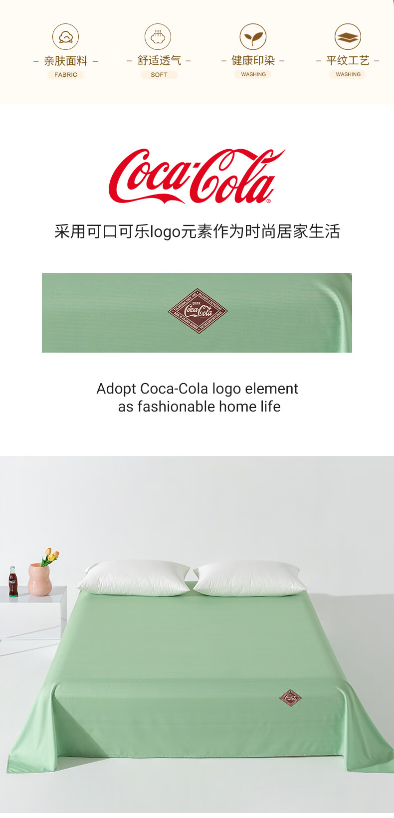 可口可乐亲肤磨毛床单单件防脏被罩 水波潋滟 160cm*230cm