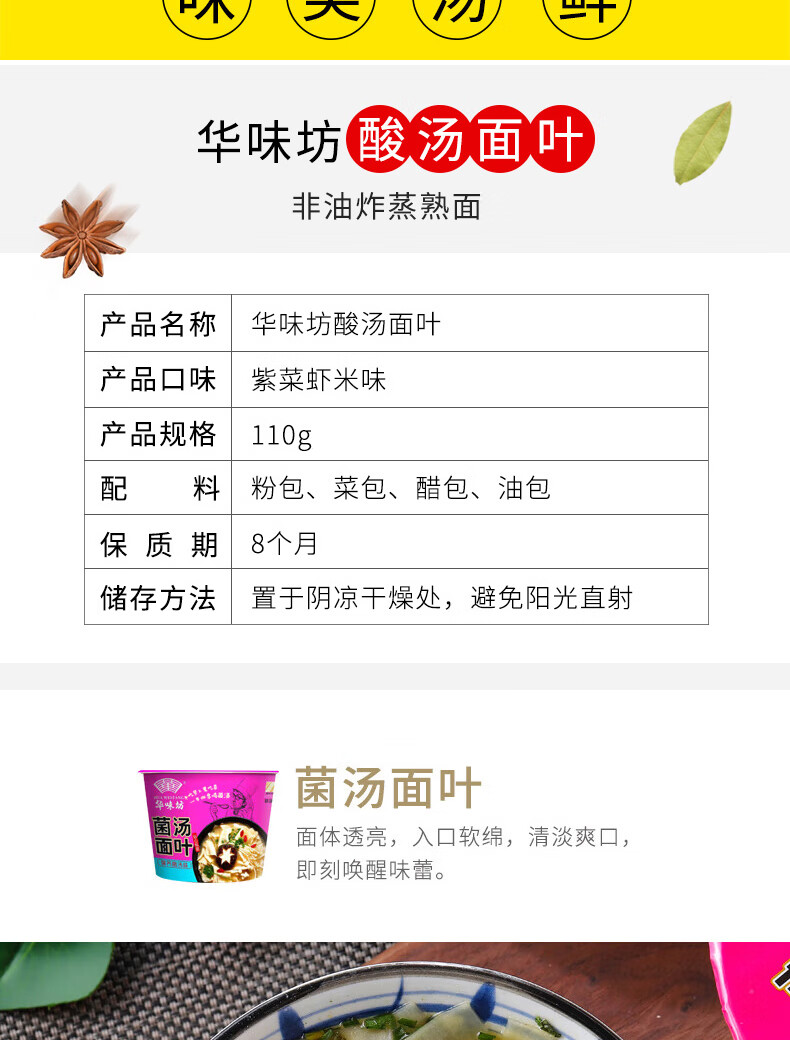 HUAWEIFANG 华味坊酸汤面叶紫菜虾米+金汤肥牛+菌汤三口味混合6桶装冲泡送礼