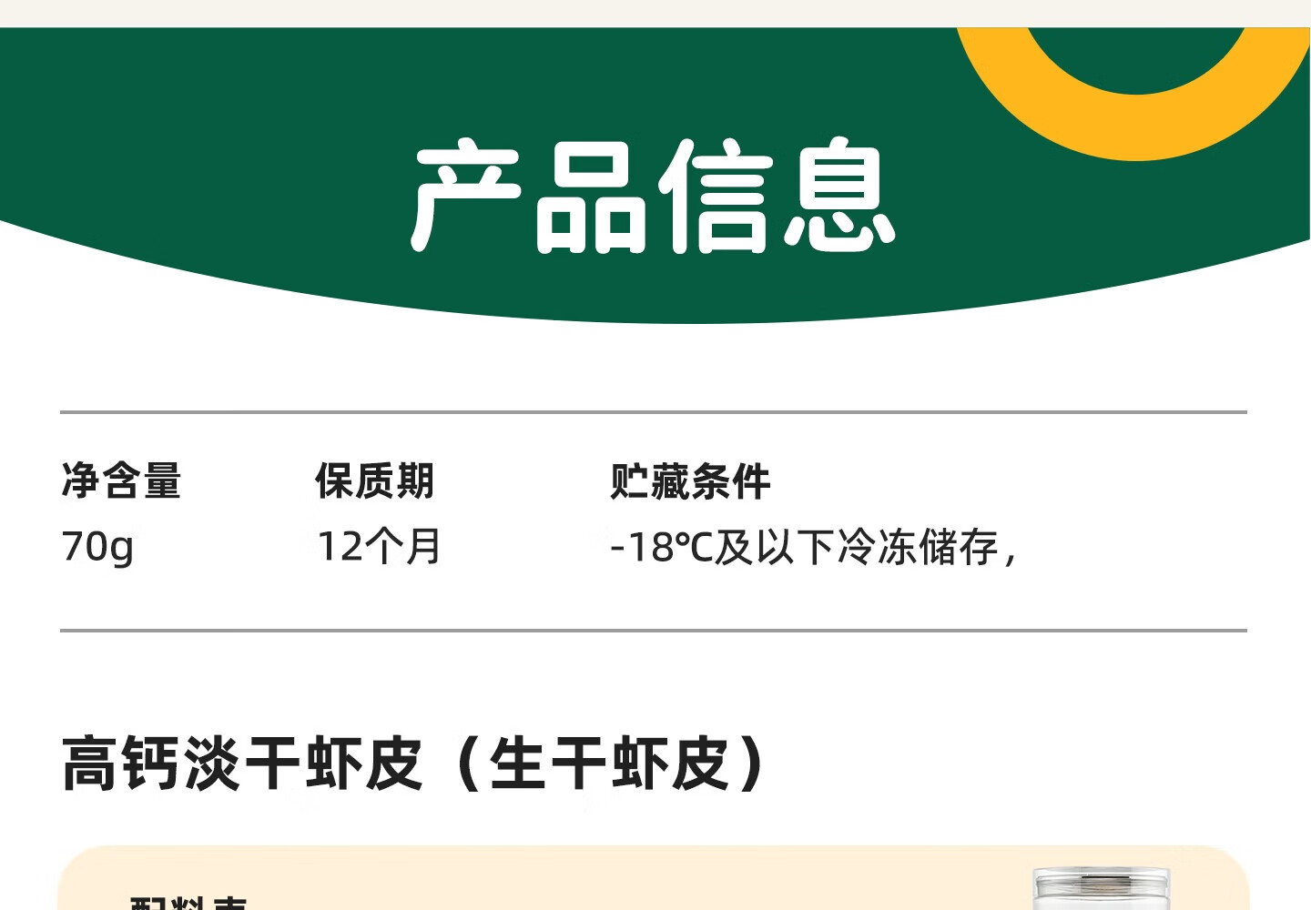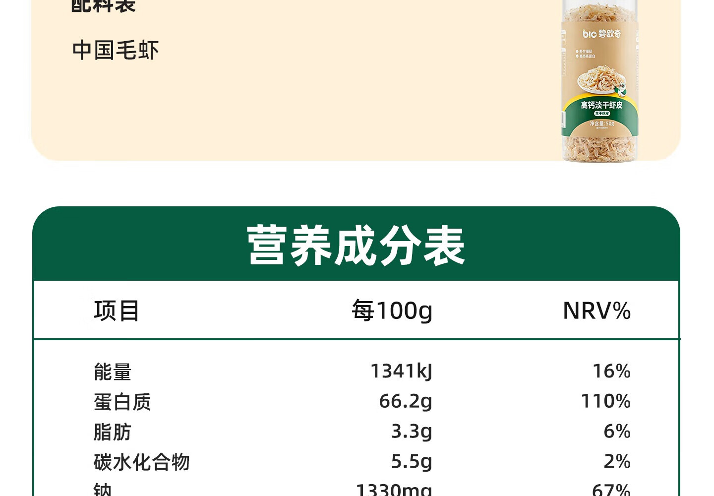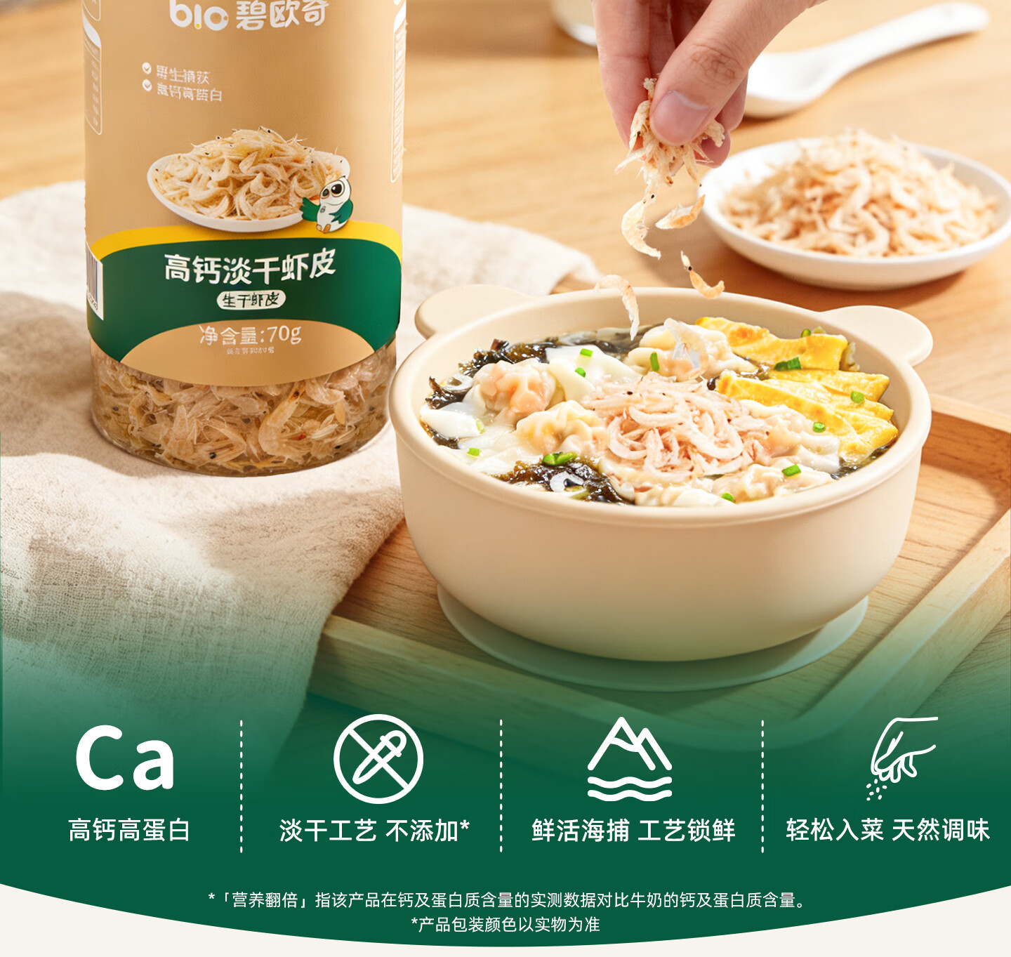 碧欧奇高钙淡干虾皮 营养调味品享宝宝婴幼儿辅食食谱 高钙淡干虾皮70g*2