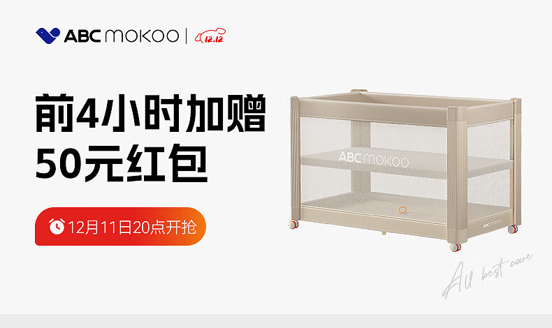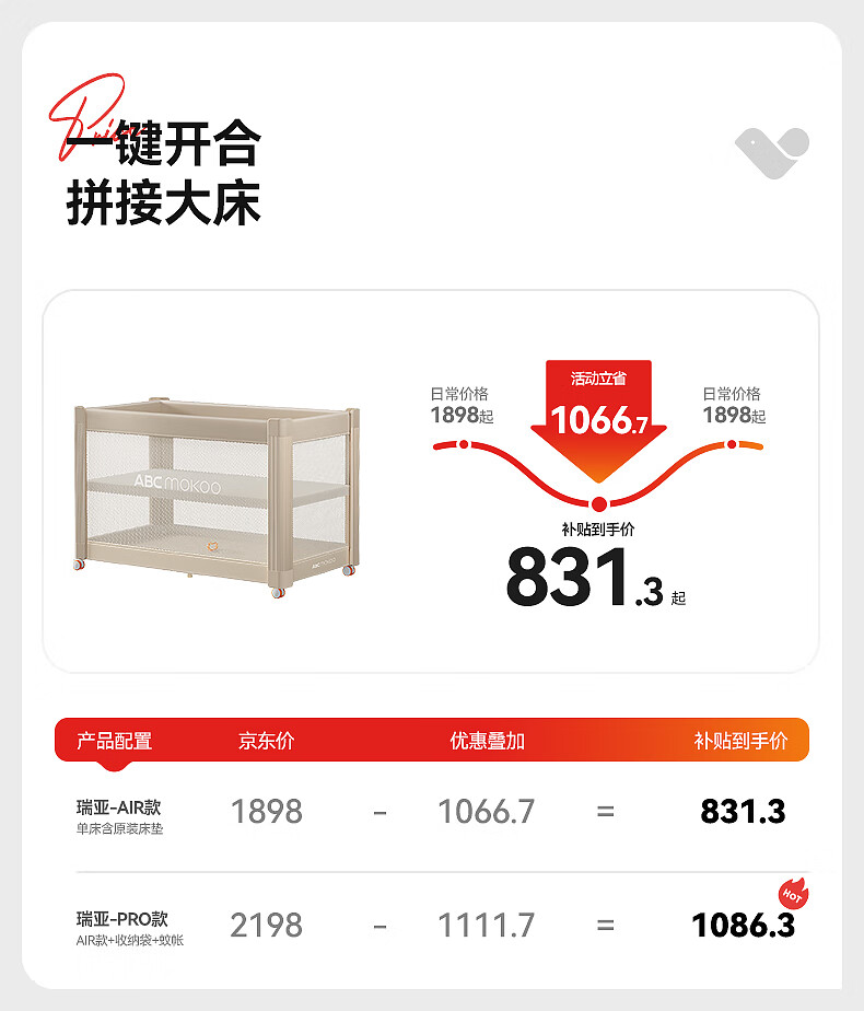 ABCMOKOO瑞亚婴儿床可移动拼接大床多功能折叠新生宝宝床-伯爵奢金/套餐款