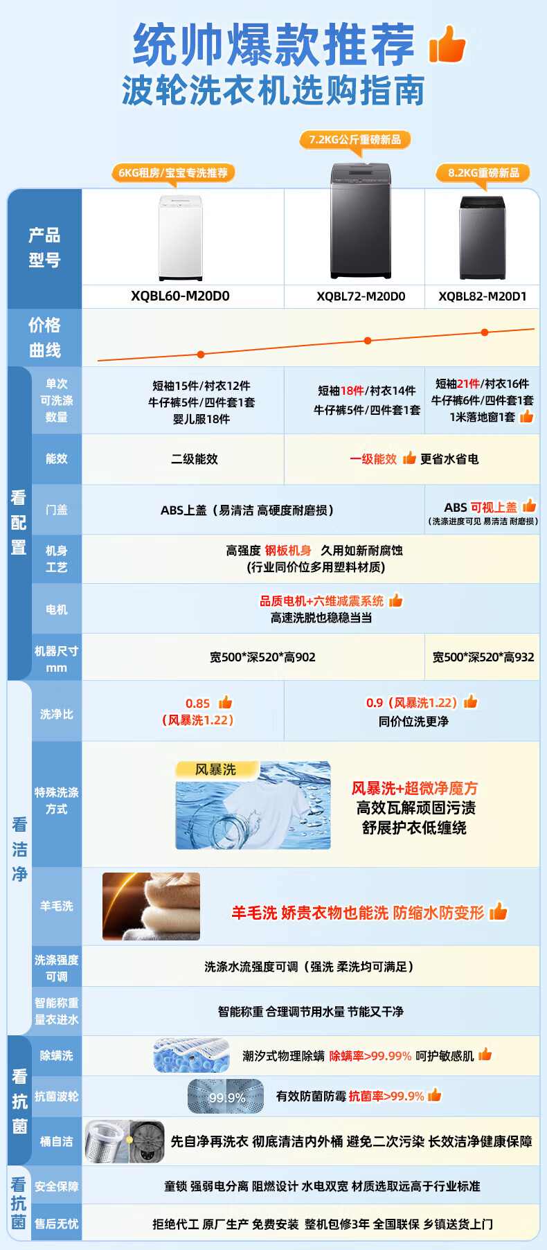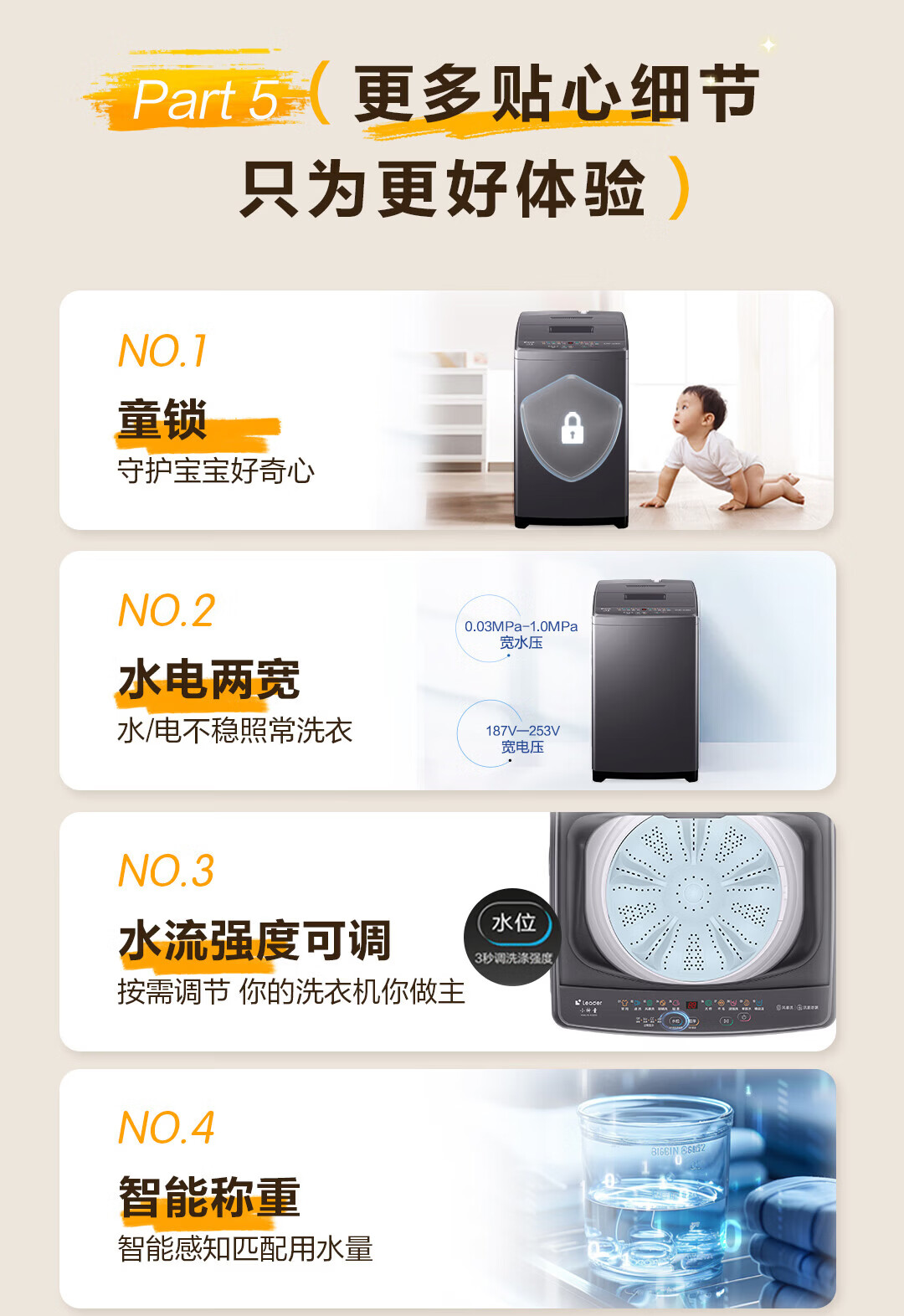 海尔(Haier)海尔波轮洗衣机8公斤大神童全自动洗脱一体漂甩二合一智能称重租房家用海尔统帅洗衣机以旧换新 波轮 8kg 统帅M296+桶自洁+一键速洗
