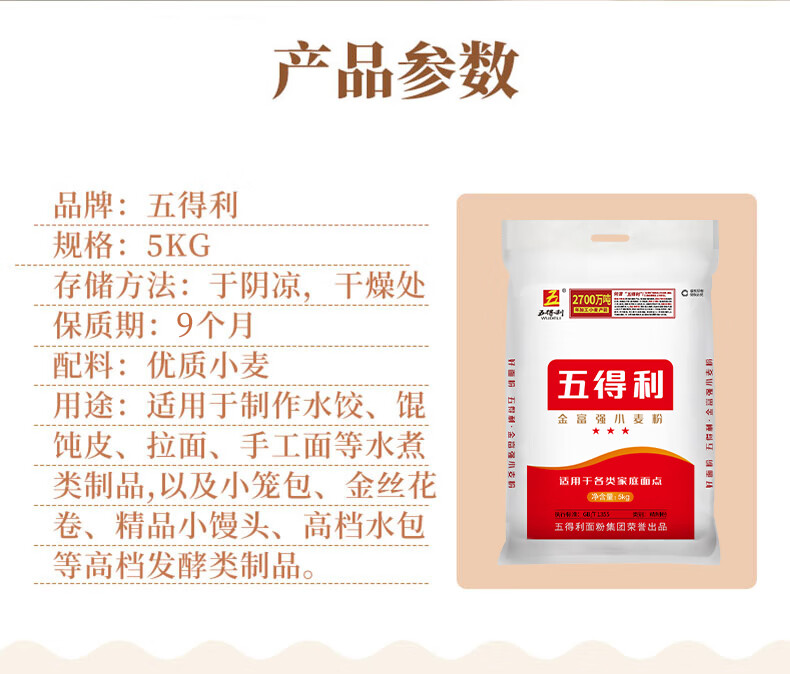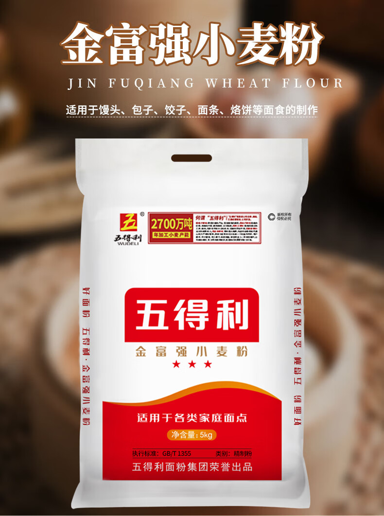 五得利 金系列三星富强小麦粉10斤 中筋粉 烘焙饺子粉 面粉多用途家庭粉