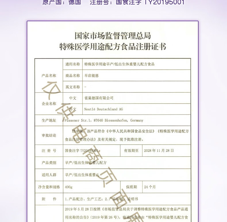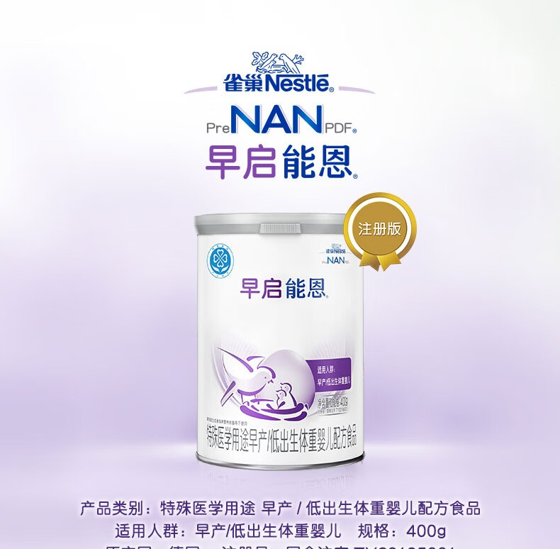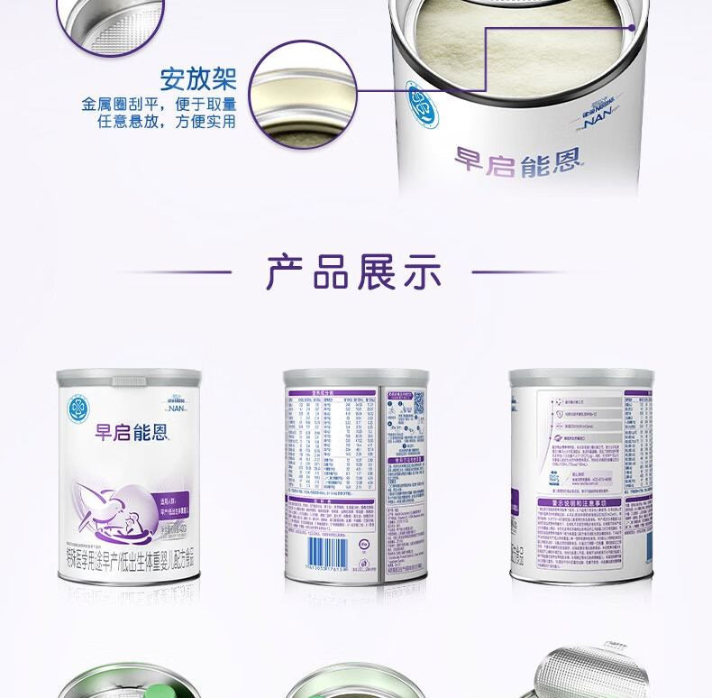 雀巢(Nestle)早启能恩 早产低体重婴儿配方食品 400g*4罐 礼盒装