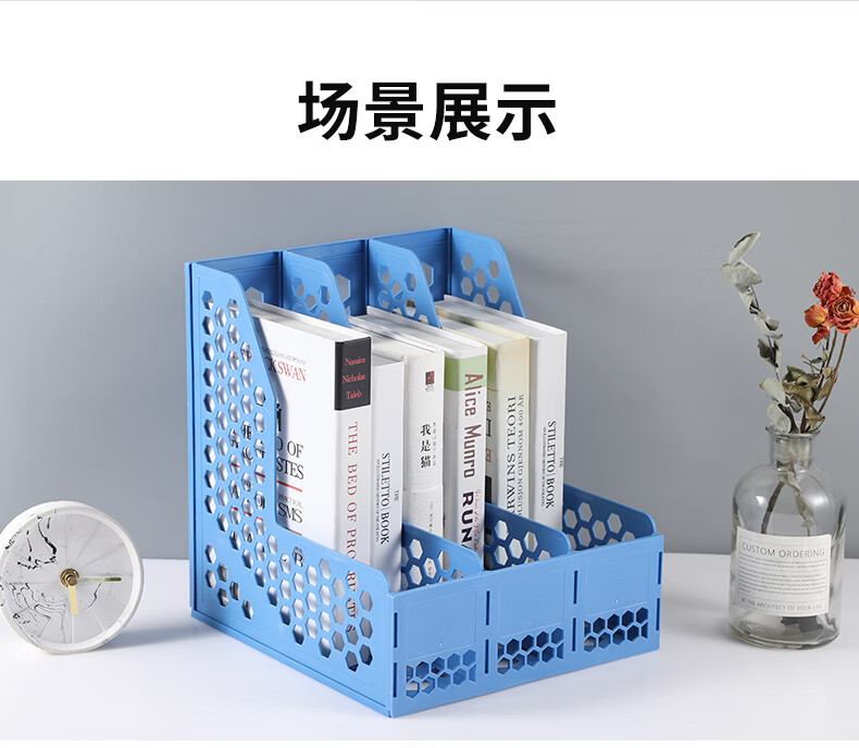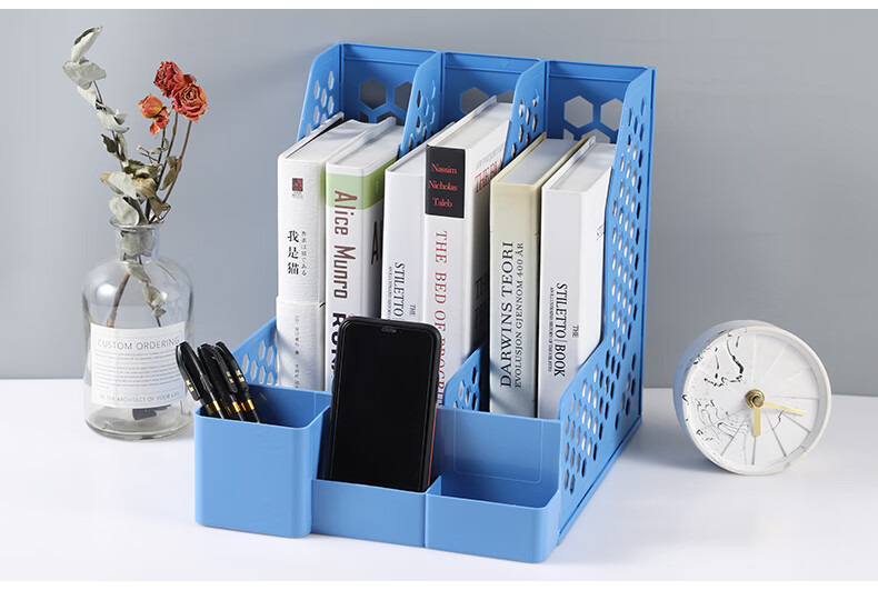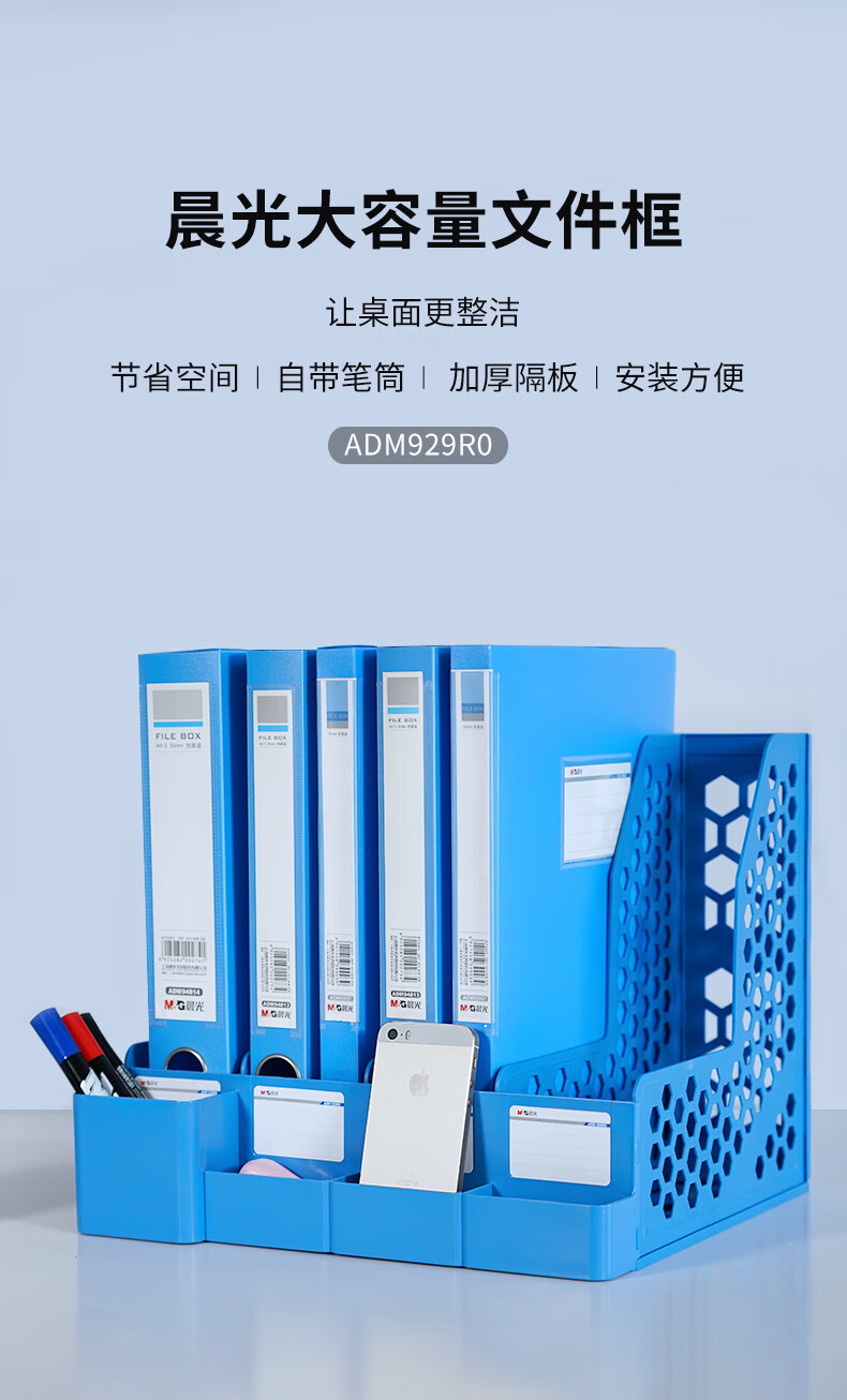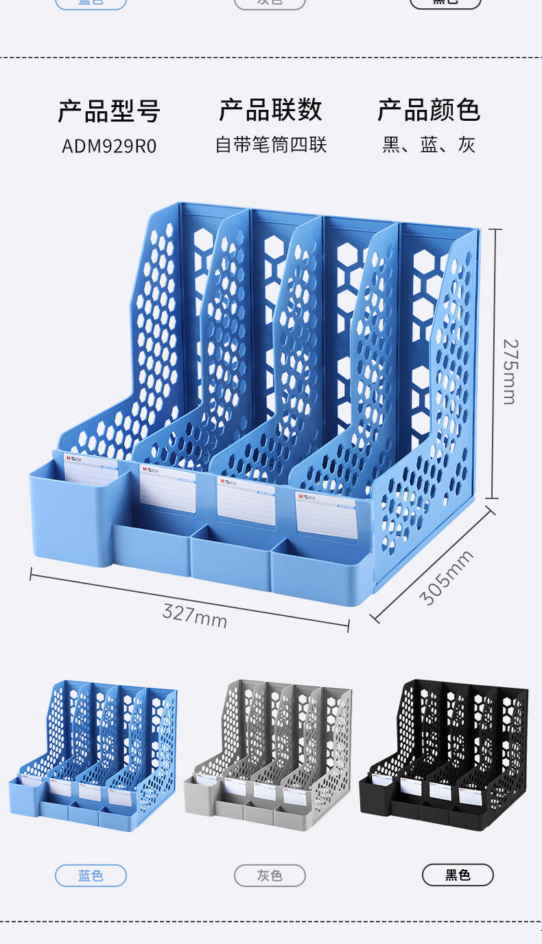 晨光(M&G)文件框大容量A4可拆卸立式书架 ADM929R0型PP文件资料架 办公 多功能四联 黑色(带可拆卸笔筒)