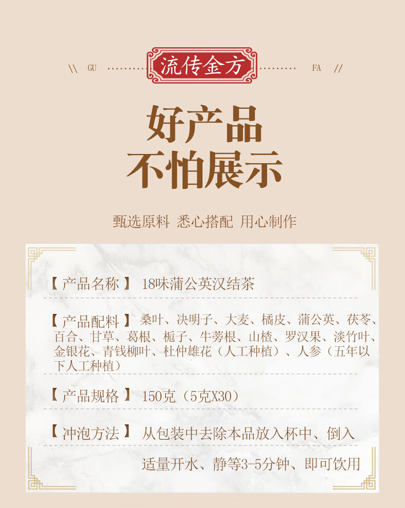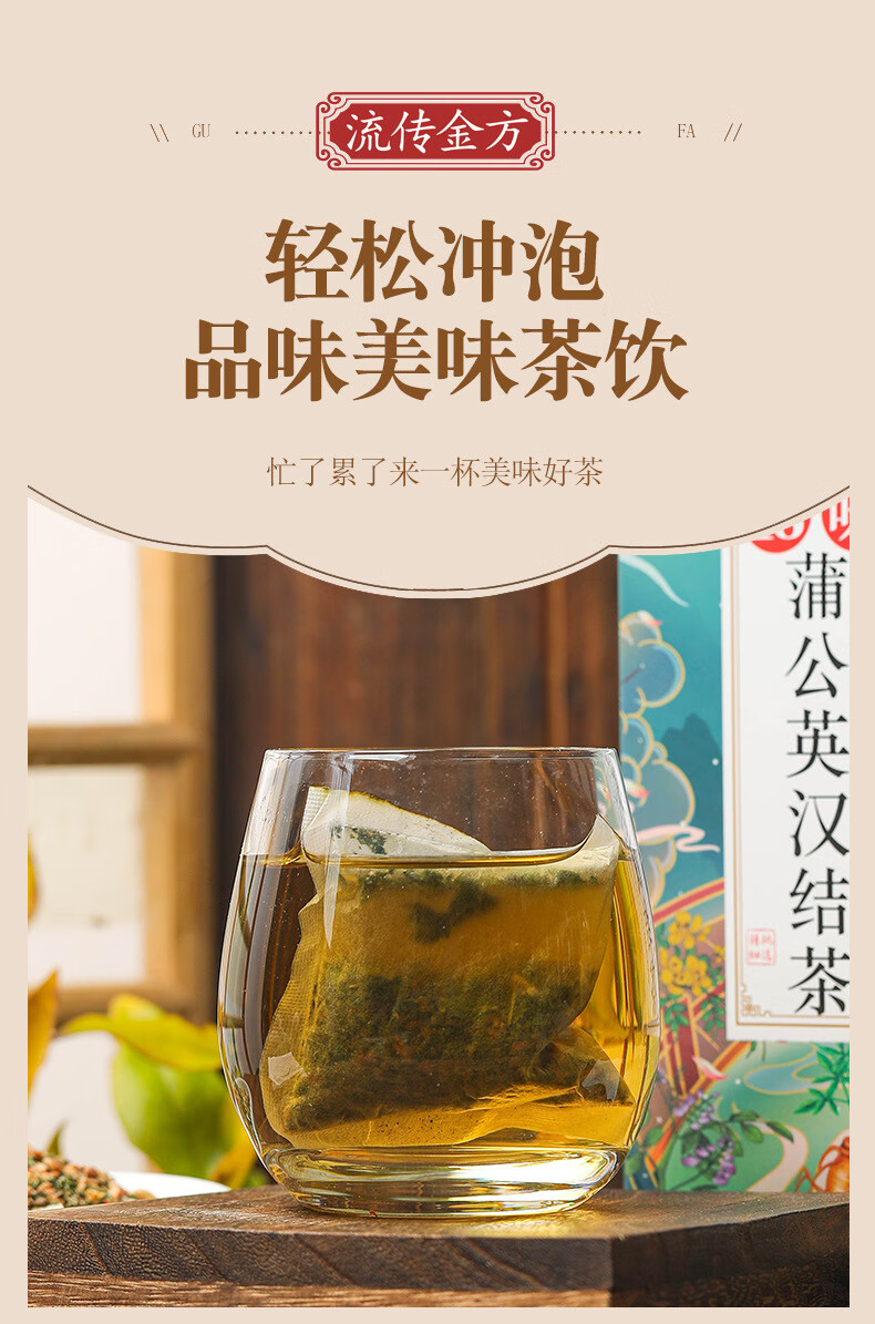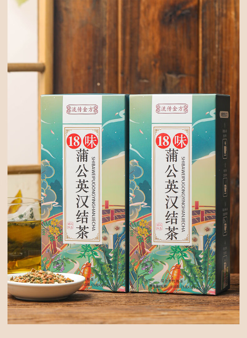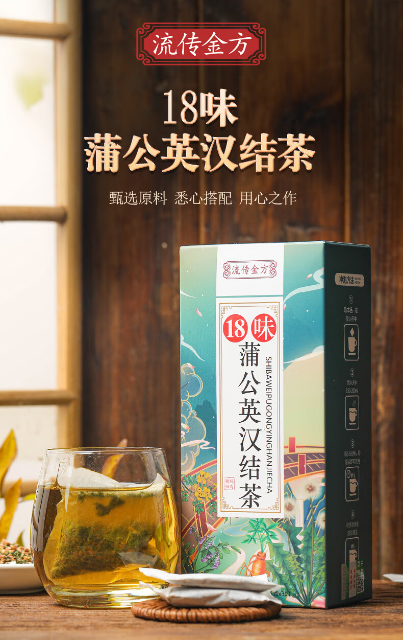 流传金方蒲公英汉节茶 非散结茶蒲公英结块茶消非炎 养生茶袋泡 流传金方18味蒲公英源古结结茶盒装(袋泡茶150克 三盒装