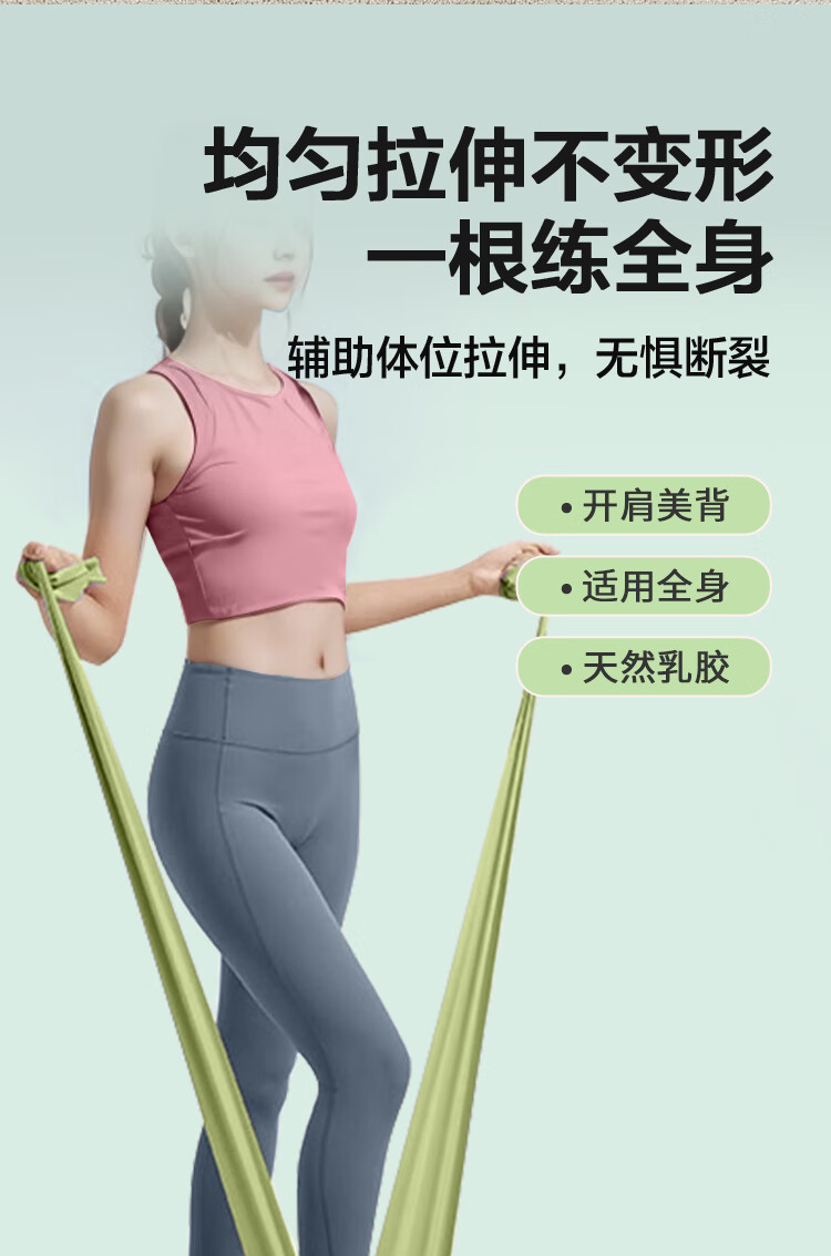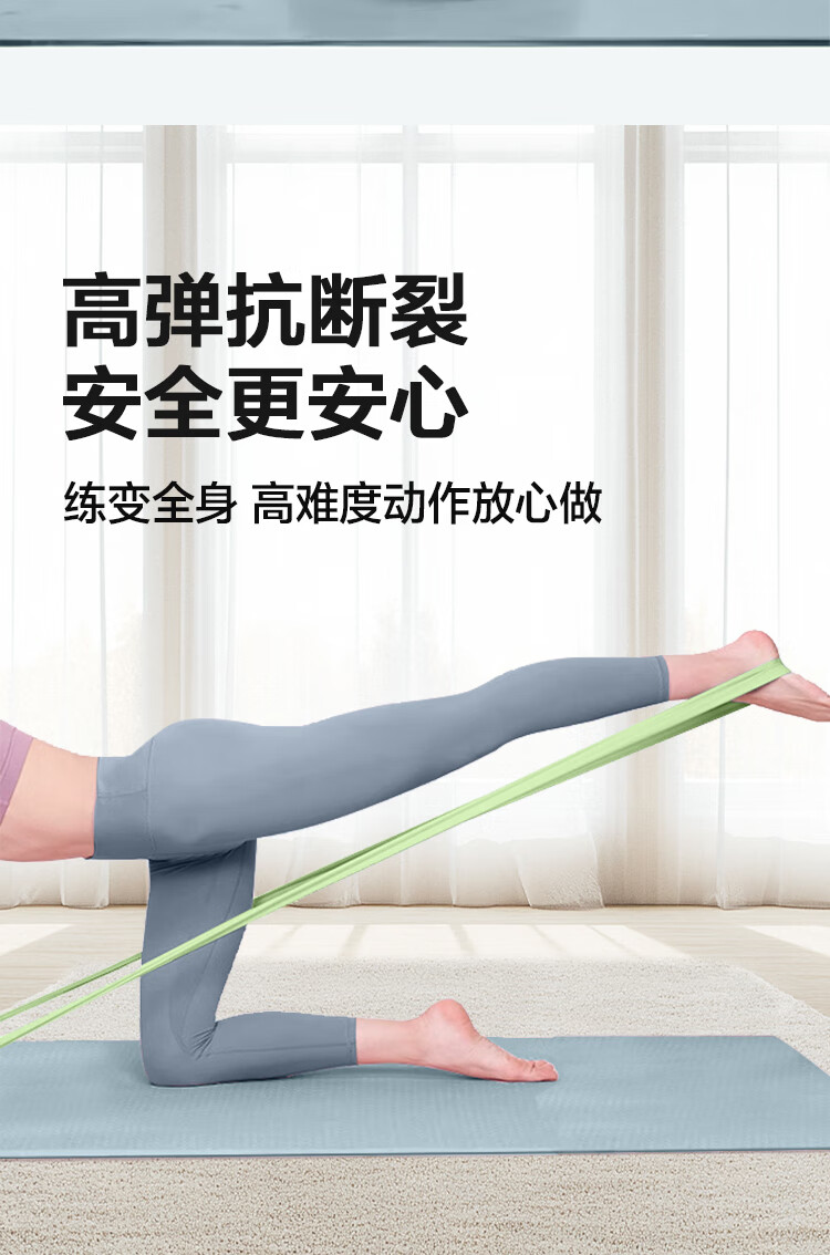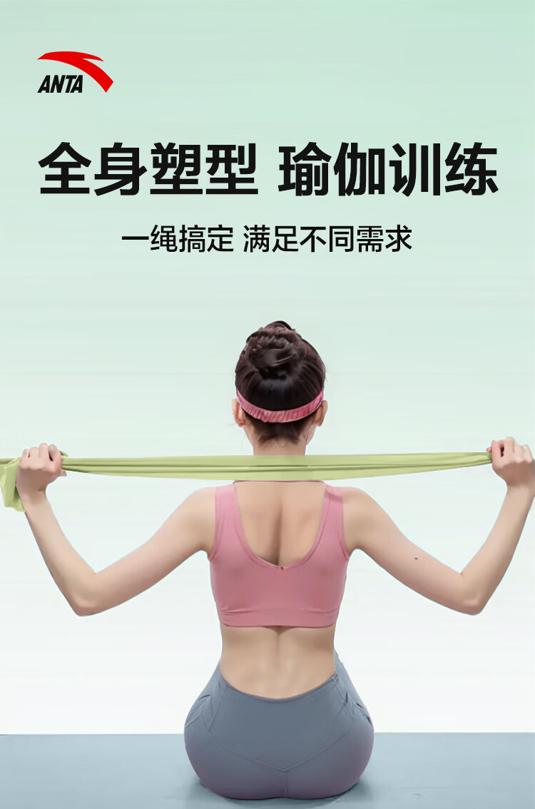 安踏弹力带健身阻力带拉力绳腿部弹力瑜伽器材带力量训练伸展塑形带 【入门版/约30磅】绿