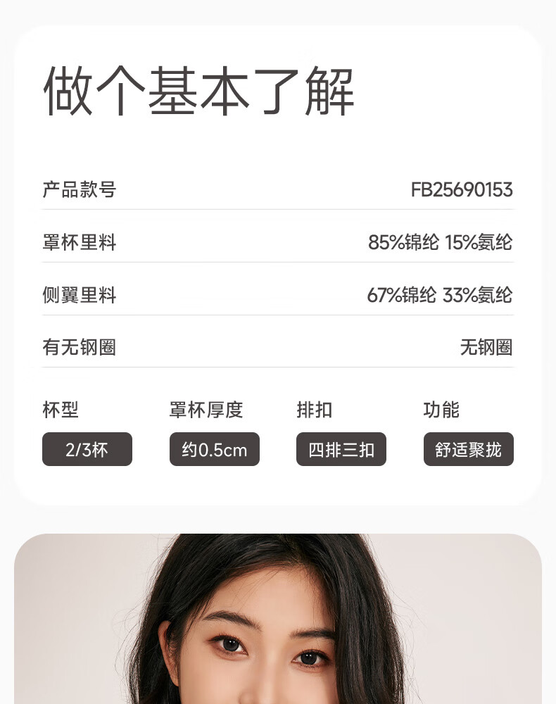 芬腾聚拢无钢圈女士内衣大胸显小收副乳文胸透气一体式舒适文胸罩 1173奶白 【小胸显大立体】 M 【推荐75ABC】