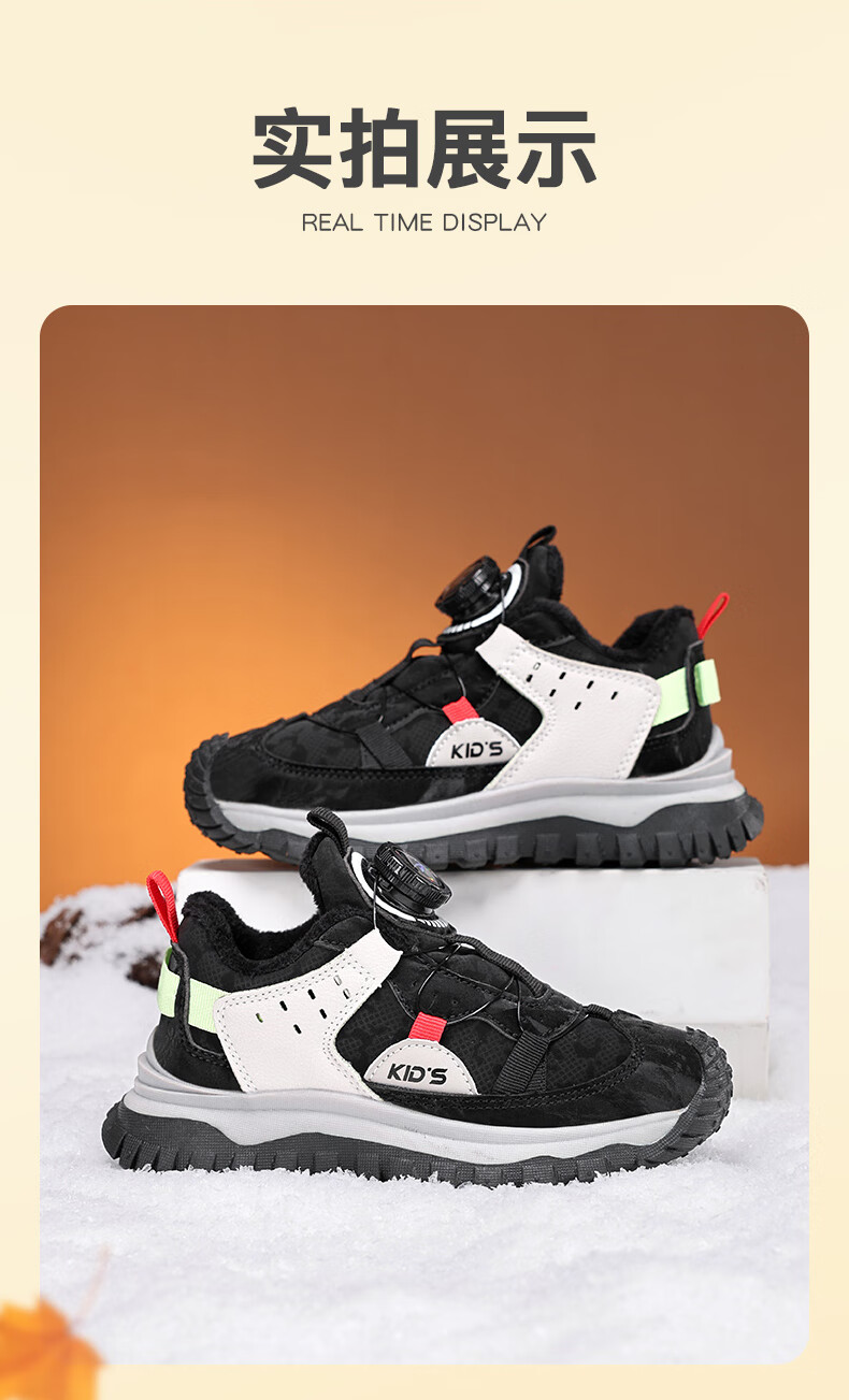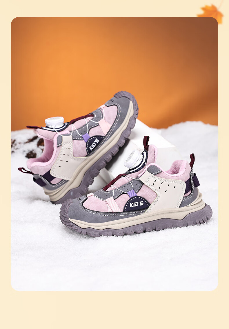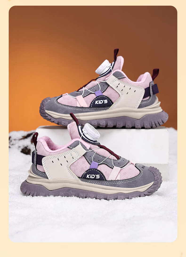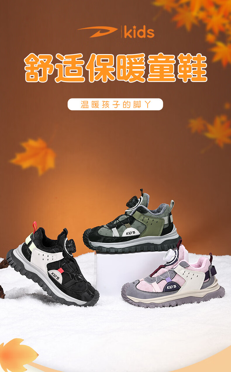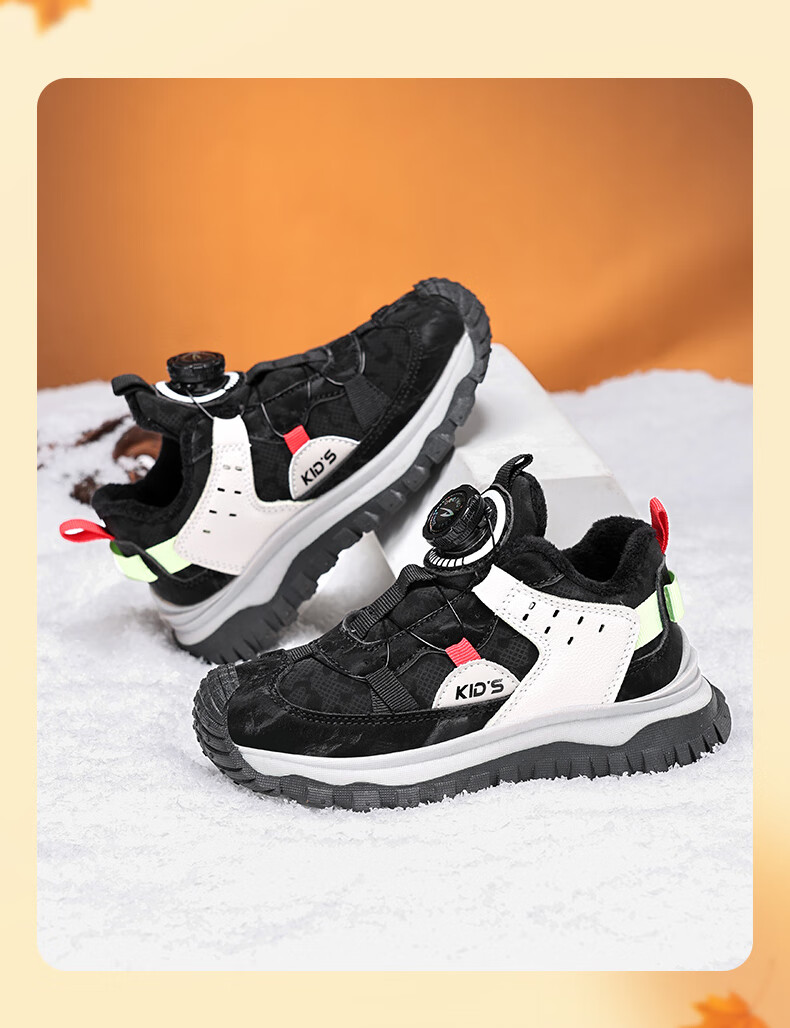 德尔惠儿童运动鞋秋冬男女童防滑缓震跑鞋中大童旋钮扣加绒跑步鞋二棉 D3860龙葵黑【二棉】 29 内长17.8/脚16.8
