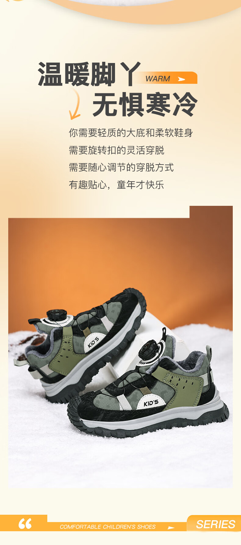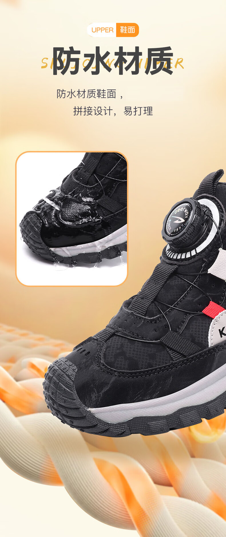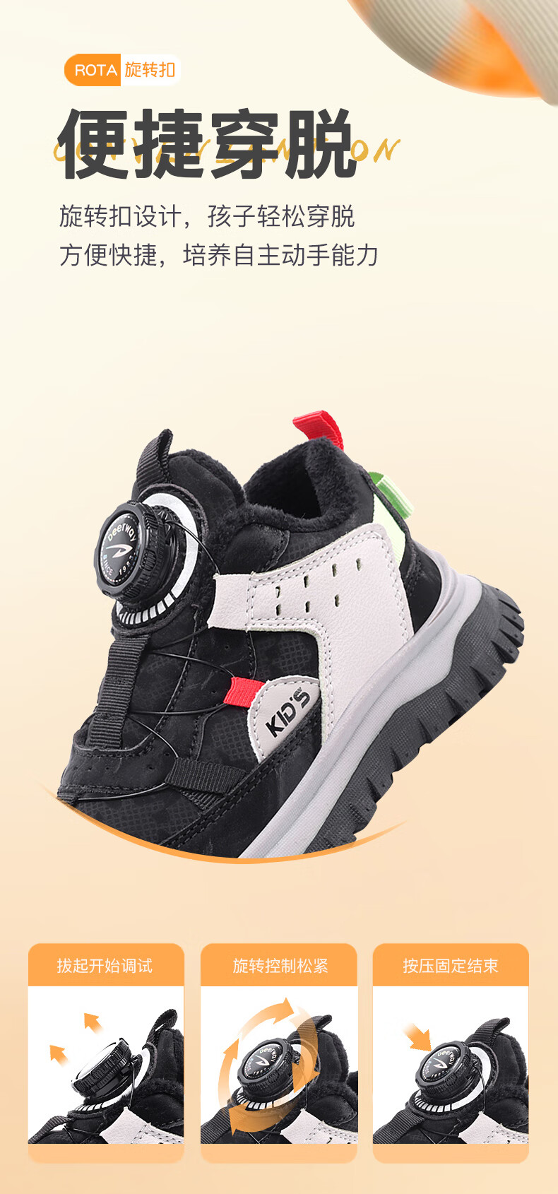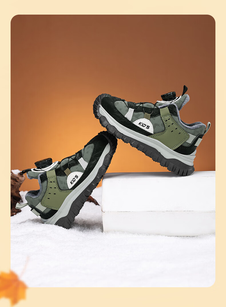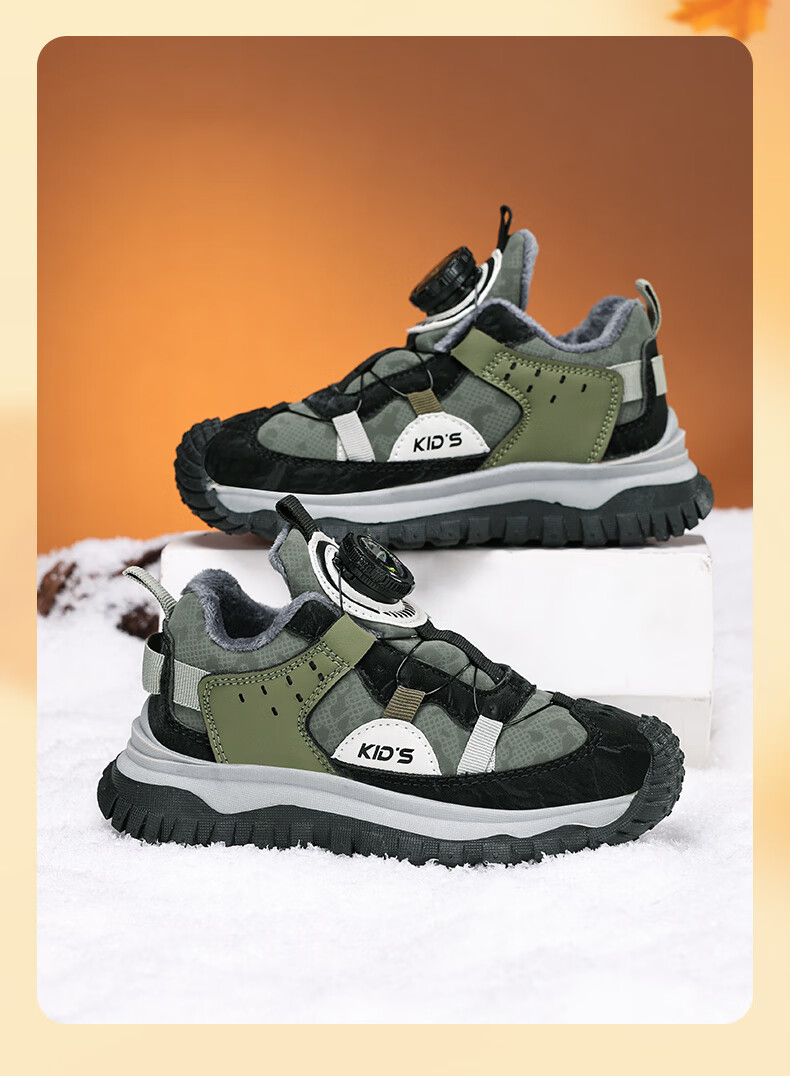德尔惠儿童运动鞋秋冬男女童防滑缓震跑鞋中大童旋钮扣加绒跑步鞋二棉 D3860龙葵黑【二棉】 29 内长17.8/脚16.8