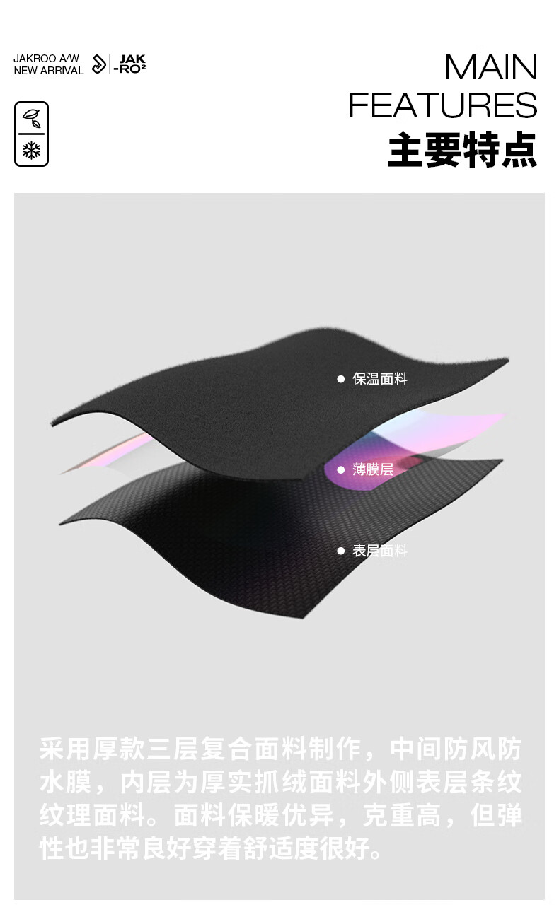 捷酷秋冬MECHA男士防风保暖双拉链夹克户外骑行运动-5℃上衣外套 黑色 XL