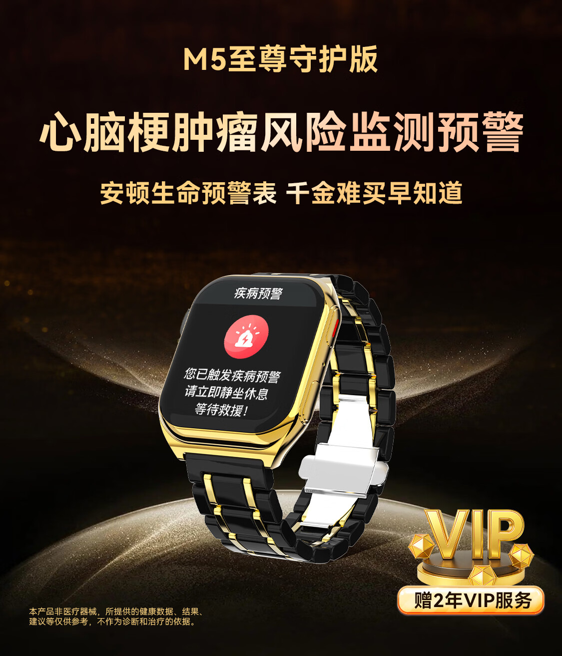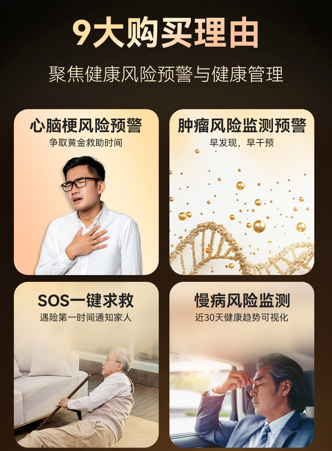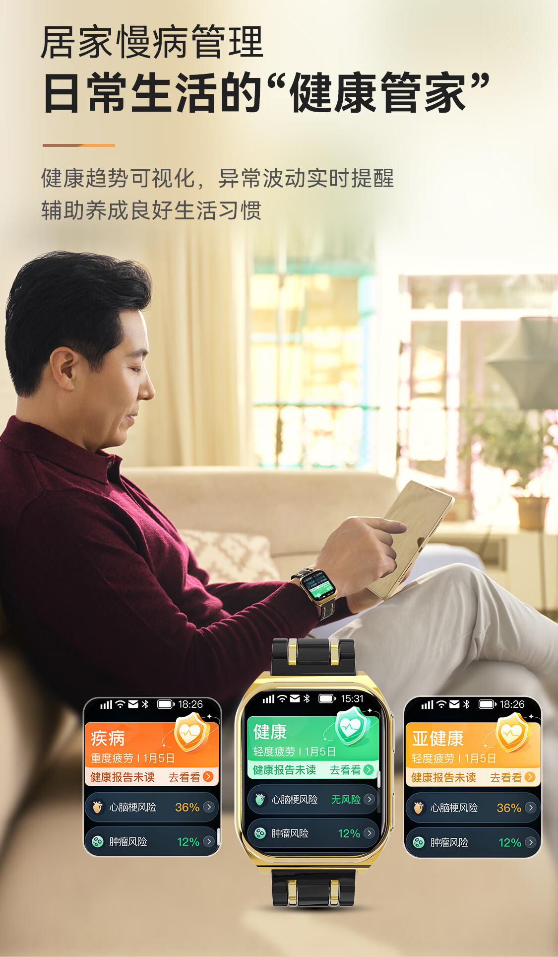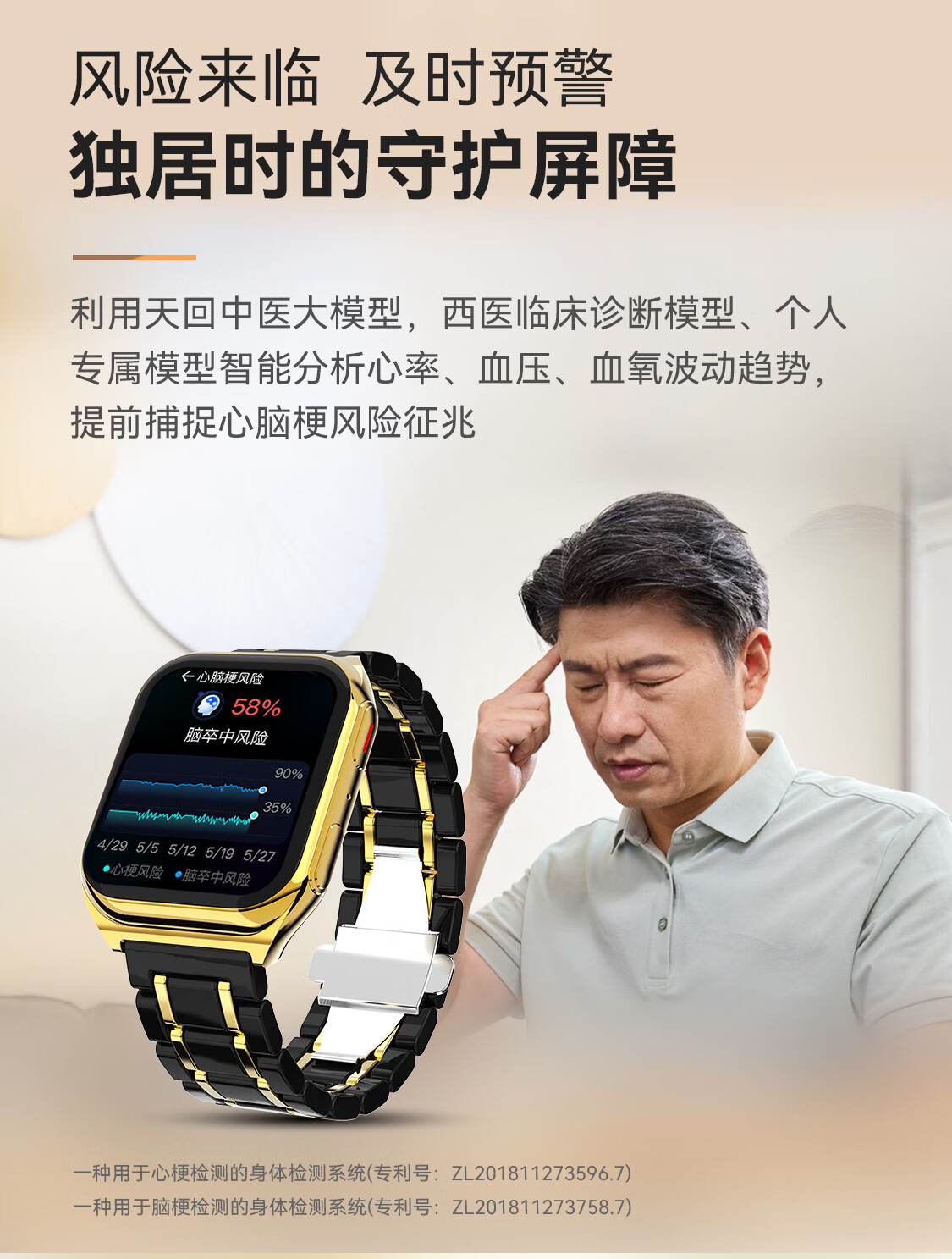 安顿【京配】心梗脑卒中智能手表健康监测风险预警手表手环睡眠血糖趋势心率血氧血脂送老人送礼男女表 慢病无忧版-曜石黑 京仓发