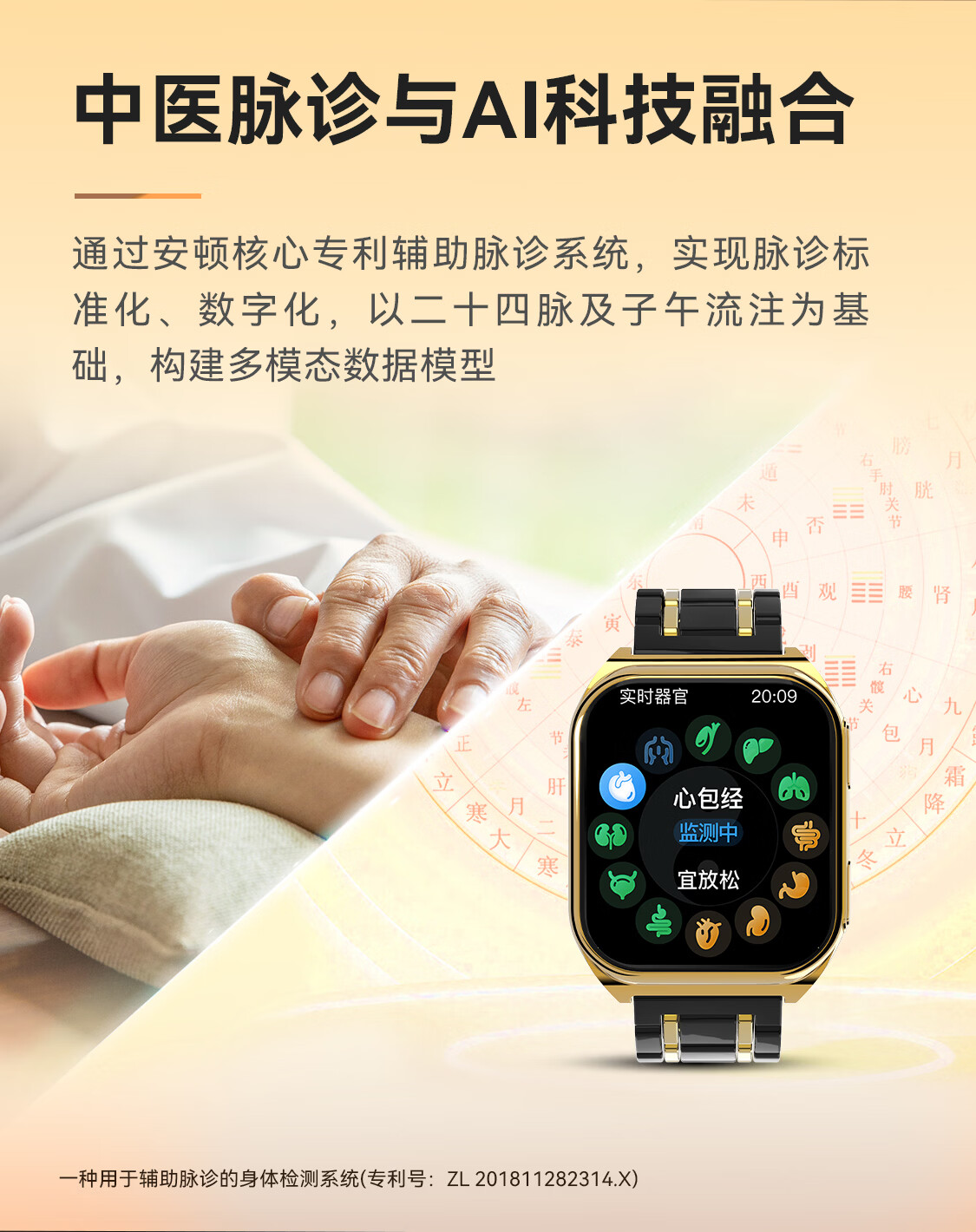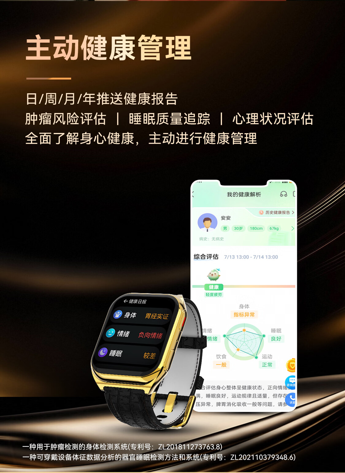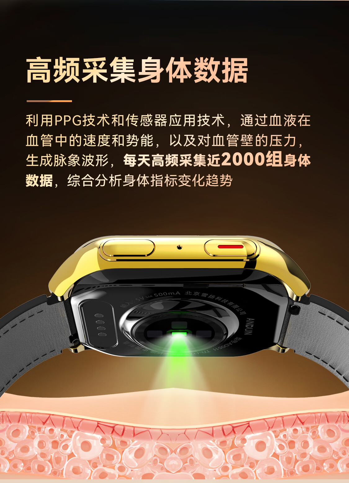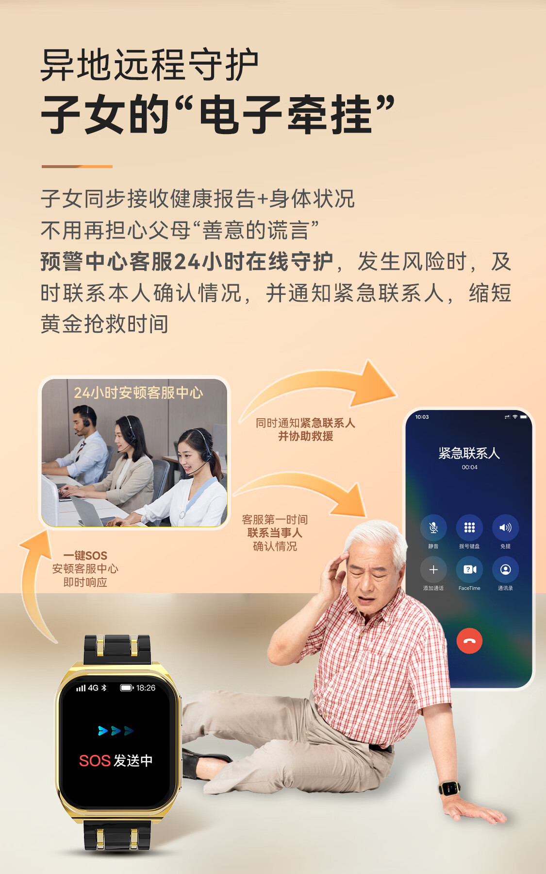 安顿【京配】心梗脑卒中智能手表健康监测风险预警手表手环睡眠血糖趋势心率血氧血脂送老人送礼男女表 慢病无忧版-曜石黑 京仓发